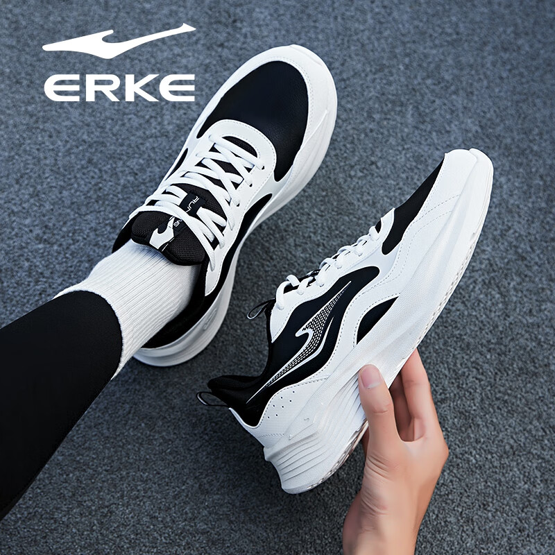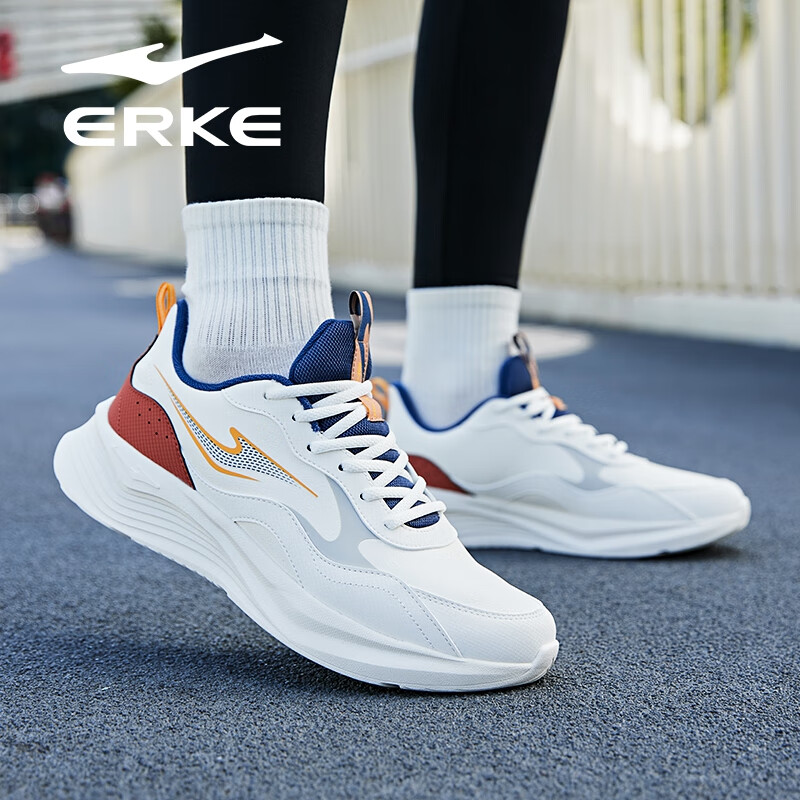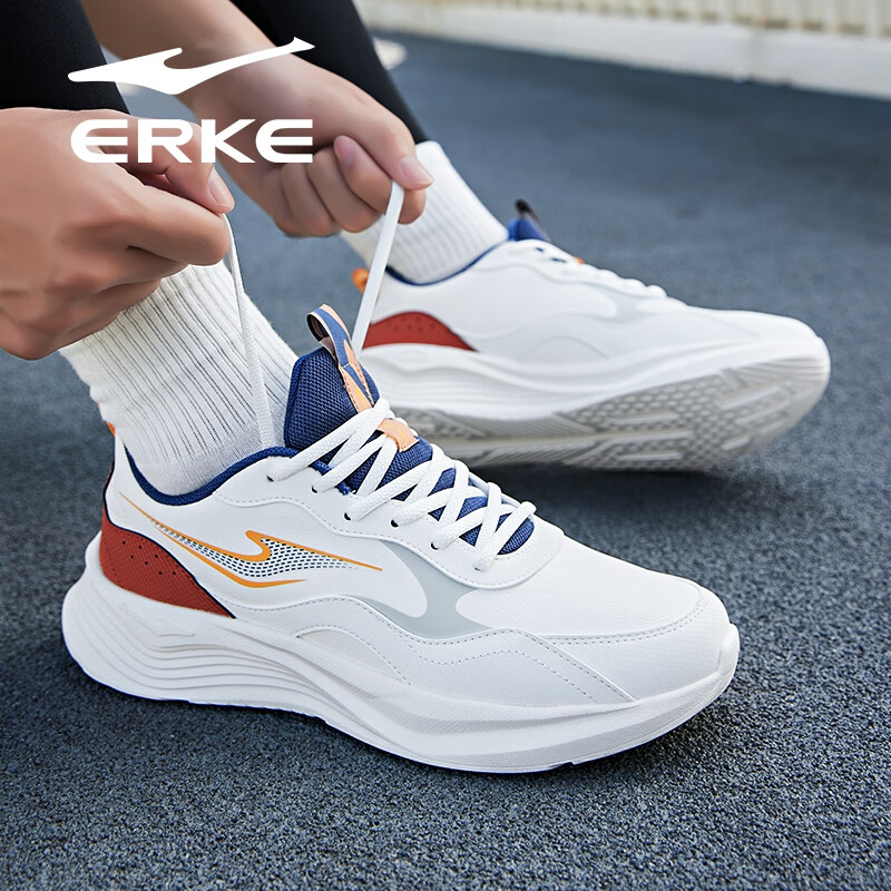 鸿星尔克男鞋加绒运动鞋男2025新款冬季棉鞋轻便软底跑步鞋缓震休闲鞋子男 4126正白/浅灰(飞织网面-四季款) 42 现货速发