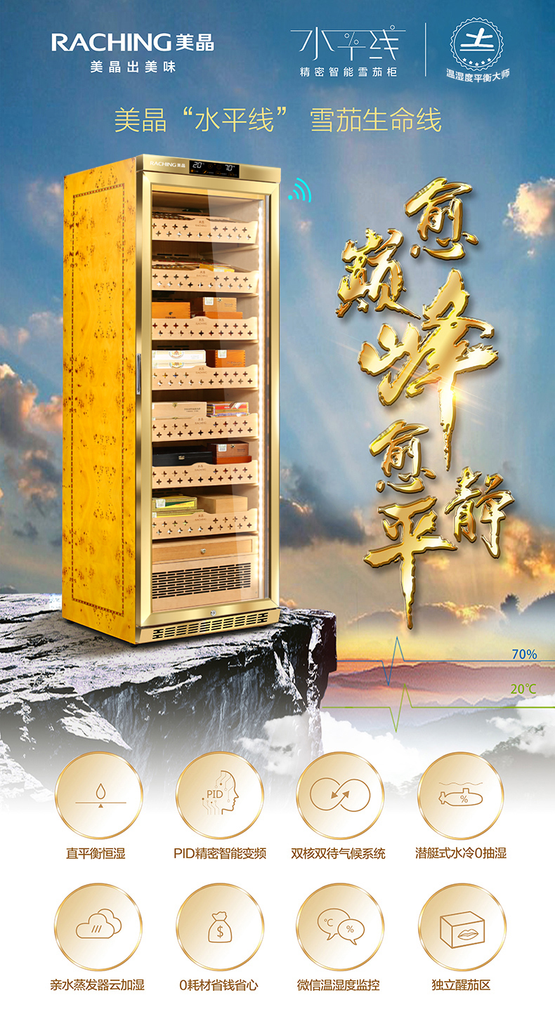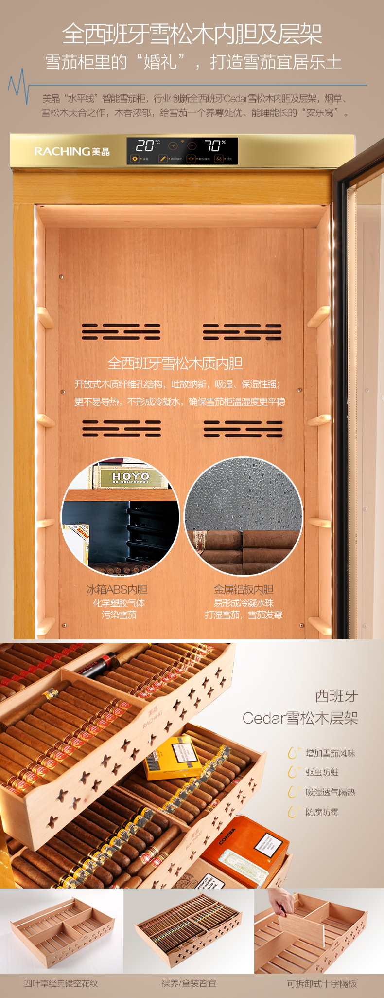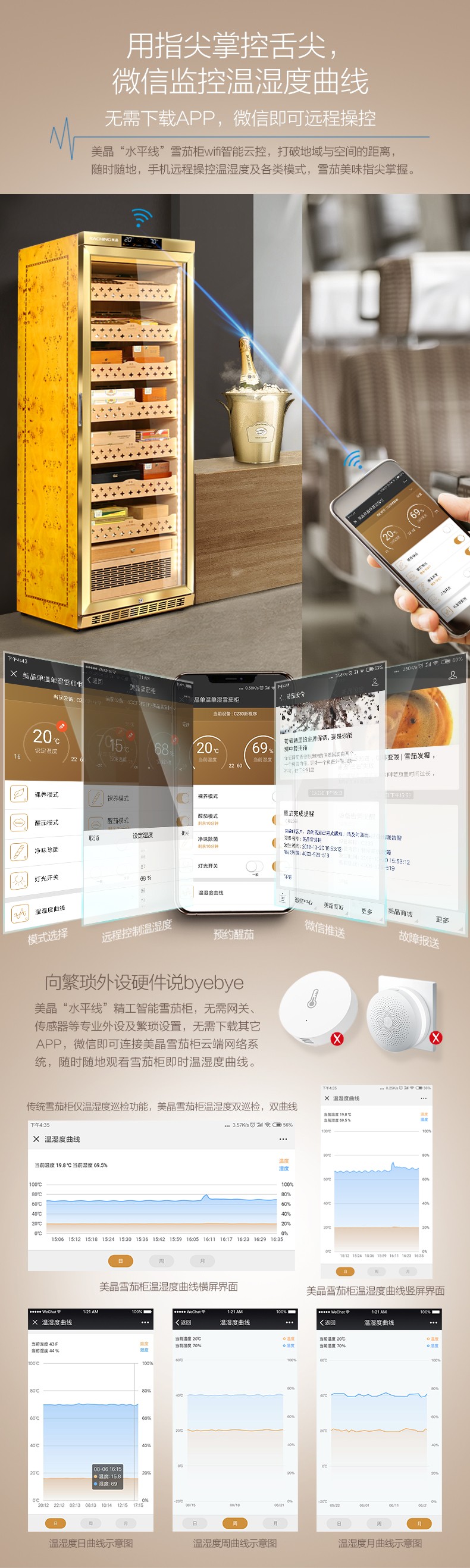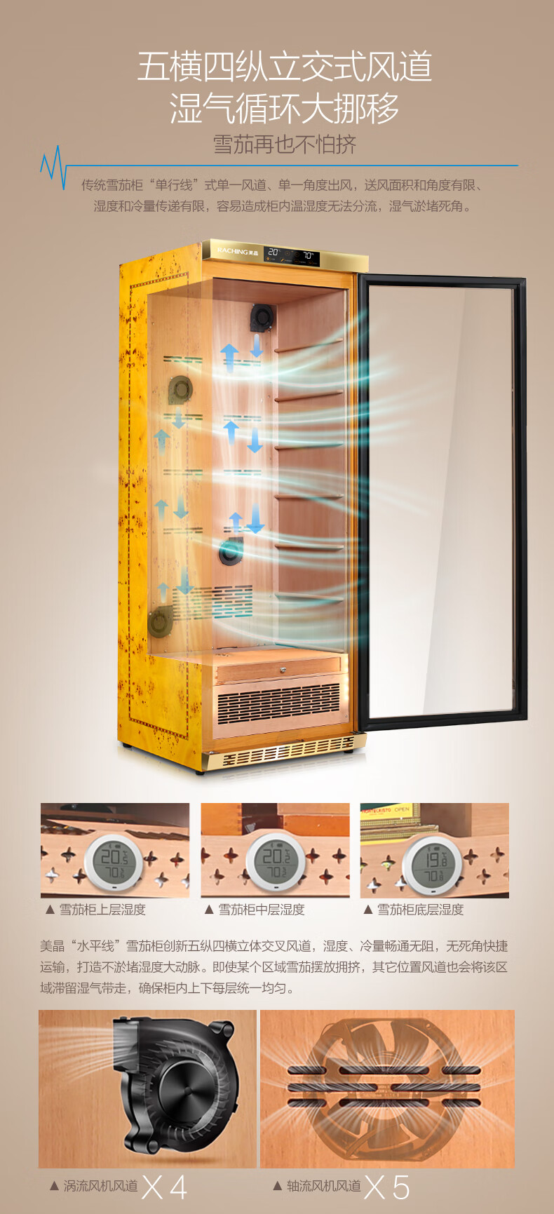 Meijing (raching) MON3800A WIFI smart solid wood horizontal line constant temperature constant temperature cigar cabinet temperature control humidity cigar humidifier home starry black (Spanish cedar wood shelf) + ammonia purifier