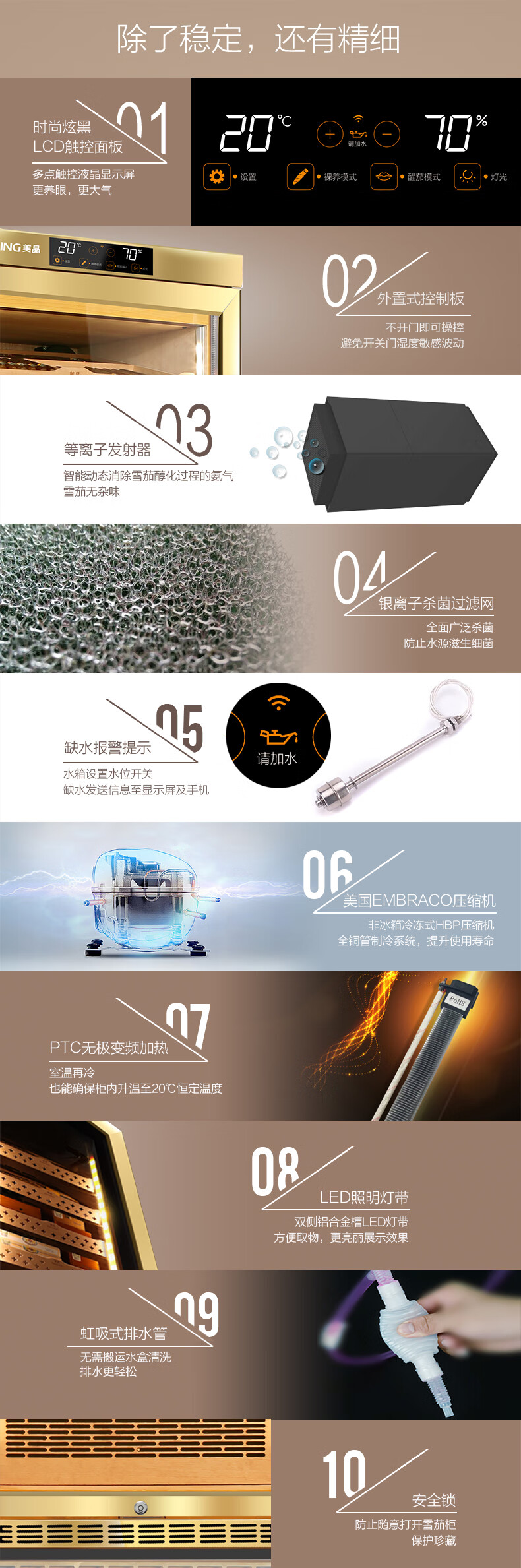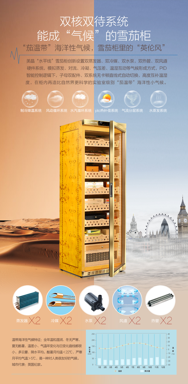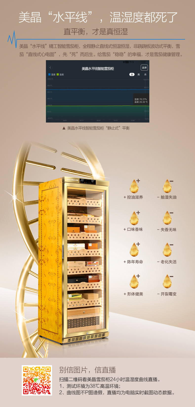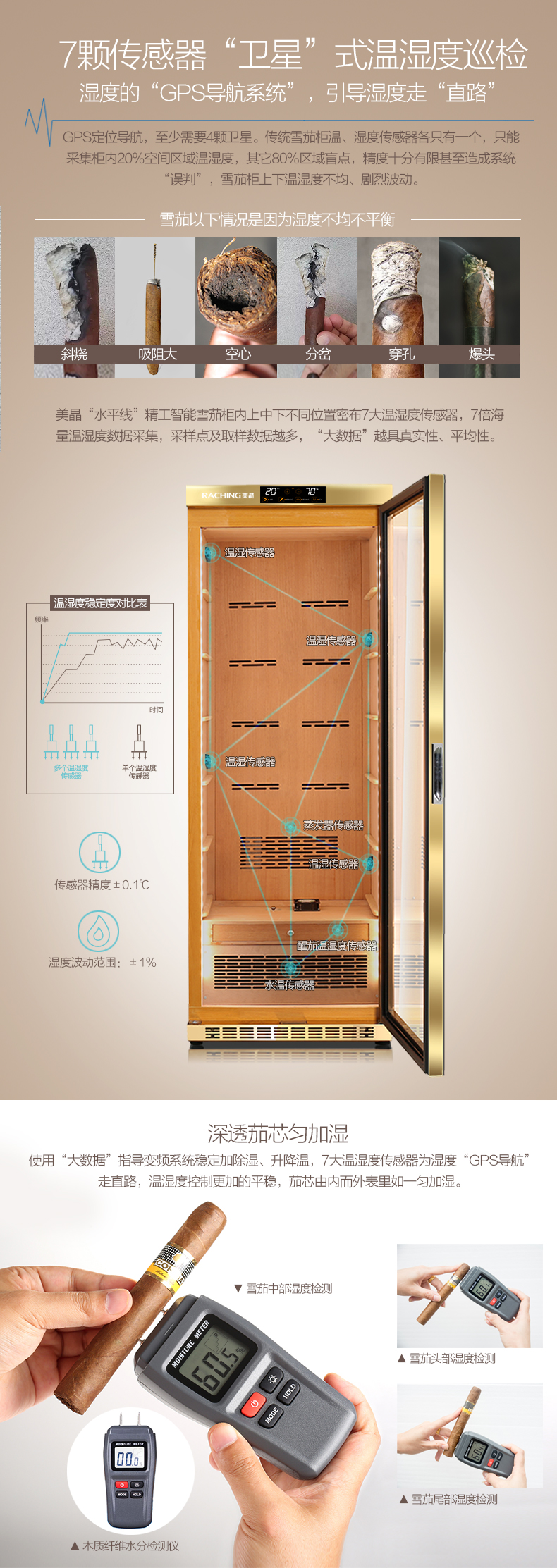 Meijing (raching) MON3800A WIFI smart solid wood horizontal line constant temperature constant temperature cigar cabinet temperature control humidity cigar humidifier home starry black (Spanish cedar wood shelf) + ammonia purifier