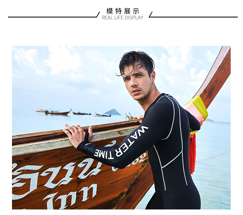WATERTIME/水川 wetsuit surfing suit men's jellyfish clothing winter swimming warm men's swimsuit one-piece long-sleeved swimming equipment men's black L