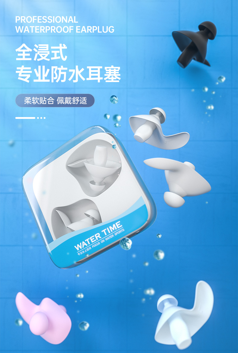 WATERTIME/Shuichuan Swimming Earplugs Waterproof Earplugs Children Adult Diving Ears Anti-water Ingress Anti-Slip Not Easy to Fall Blue