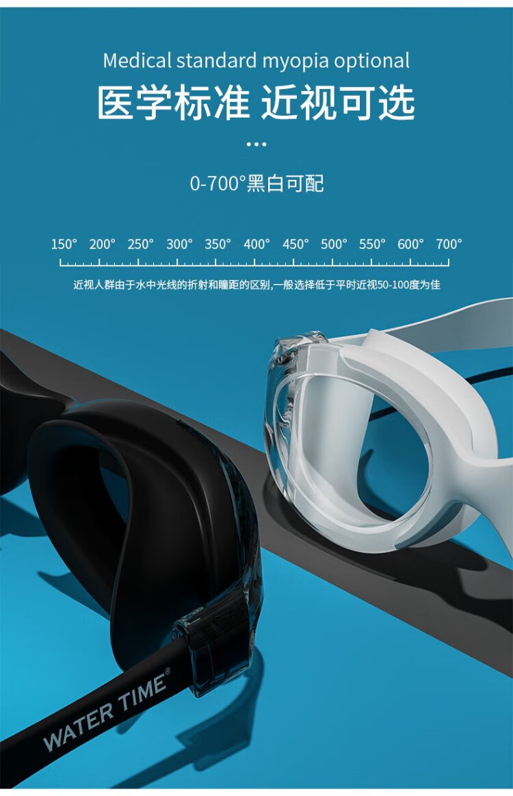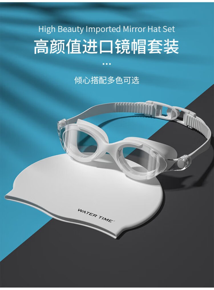 WATERTIME/Shuichuan swimming goggles myopia high definition anti-fog professional swimming goggles for men and women adult swimming goggles swimming cap set equipment white swimming goggles myopia 600 degrees