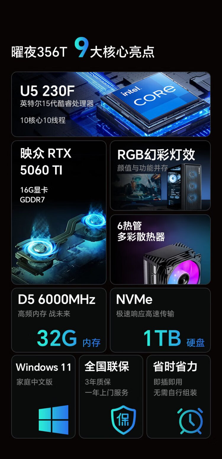 Inno3D Yaoye 356T U5 230F/RTX5060TI 16G/32G/1TB solid-state desktop computer game desktop computer host complete set