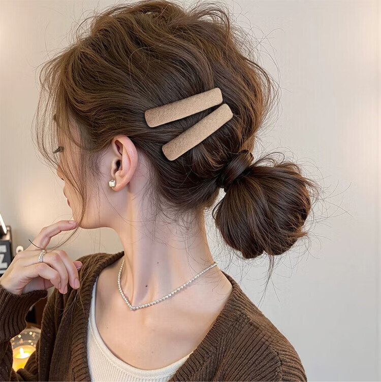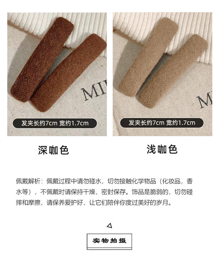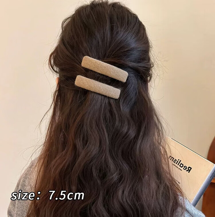 Li Qing solid color fabric rectangular hairpin, coffee color 2 pieces, bangs clip, side clip, BB clip, one-word clip hairpin hair accessories