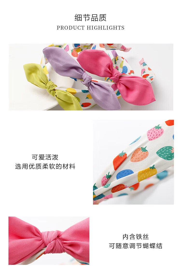 Xiangwan headband 2 pieces sweet bow strawberry wide-brimmed headband children's hairpin female anti-slip pressure headband hair accessories