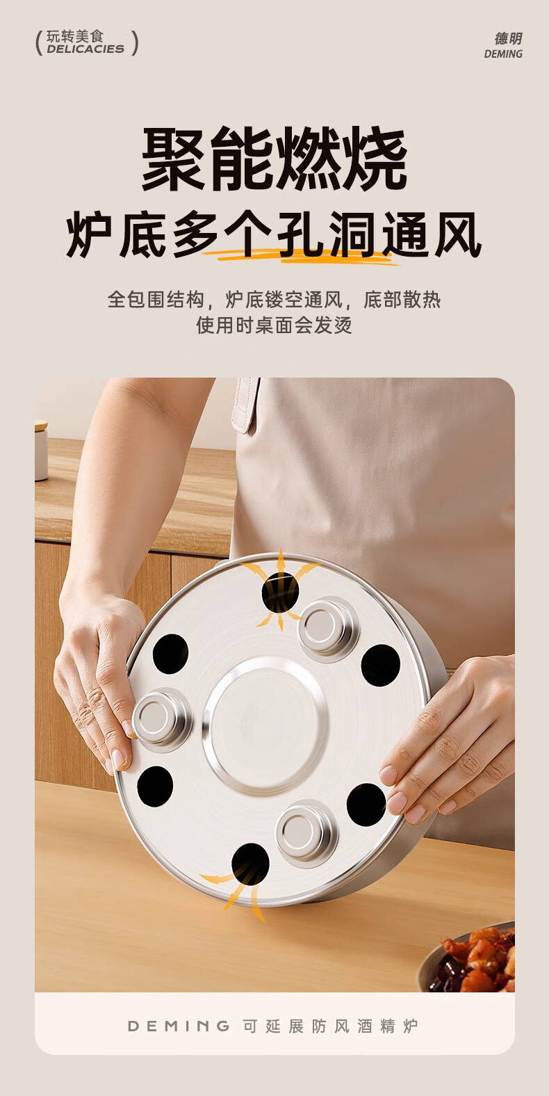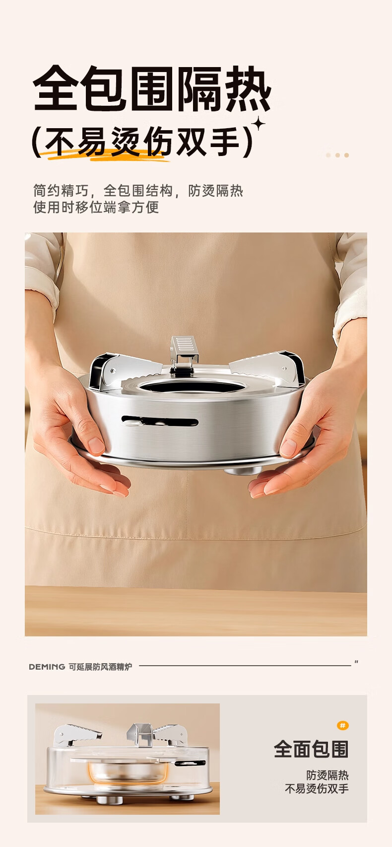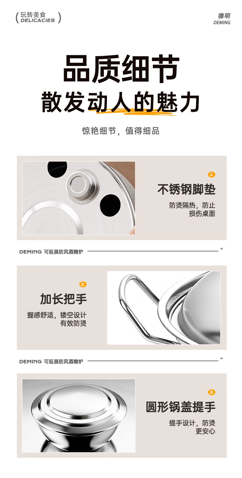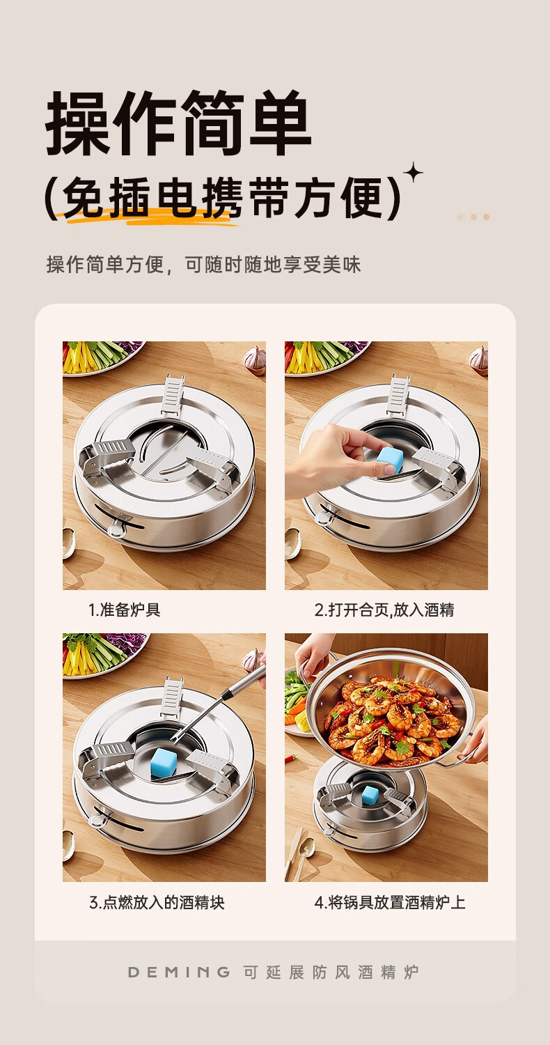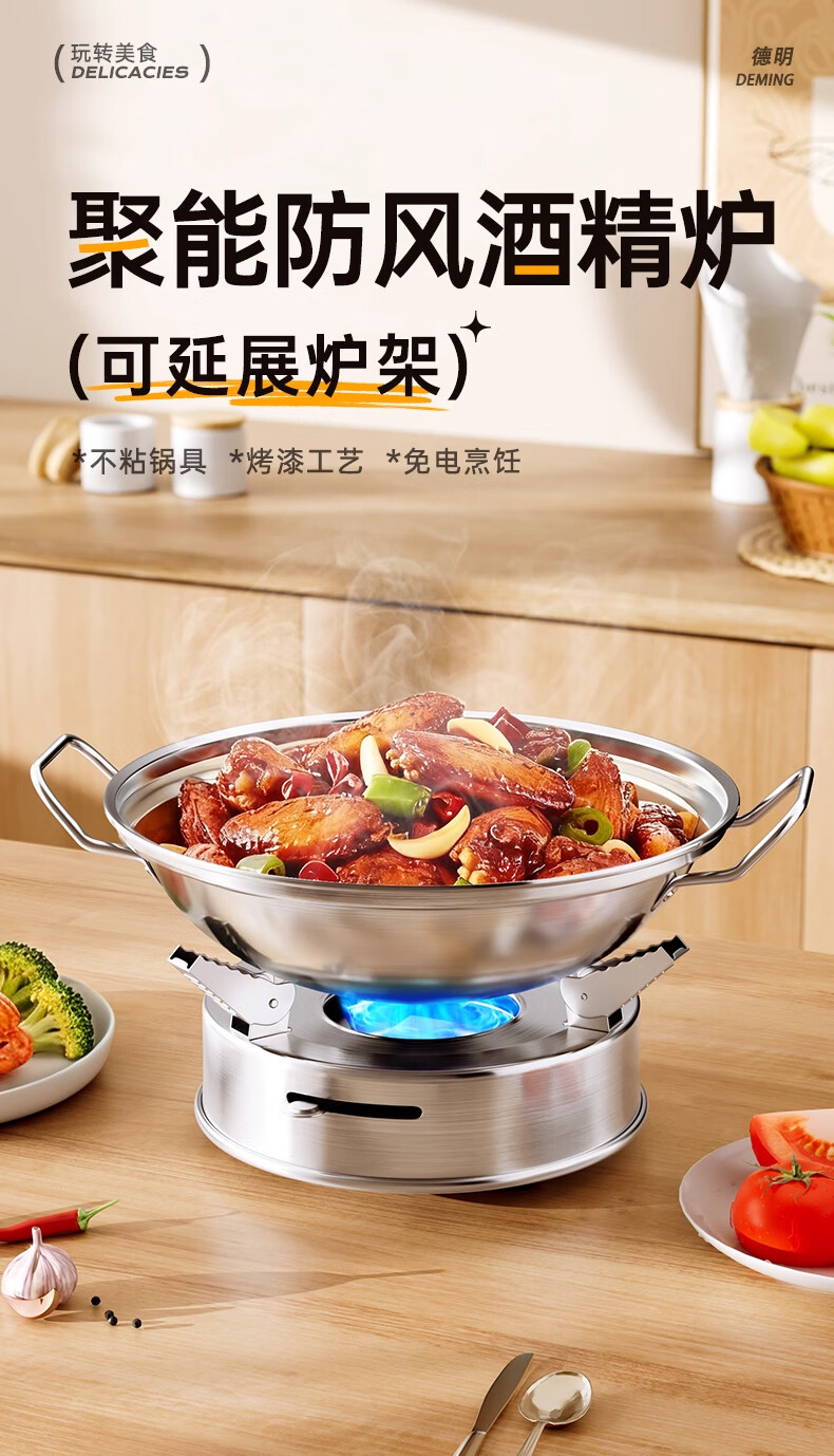 Deming dry pot alcohol stove small hot pot household windproof special stove solid alcohol pot pot Ming stove stainless steel pot