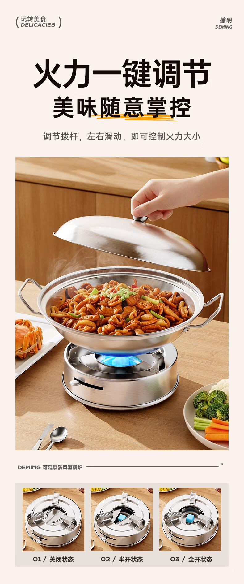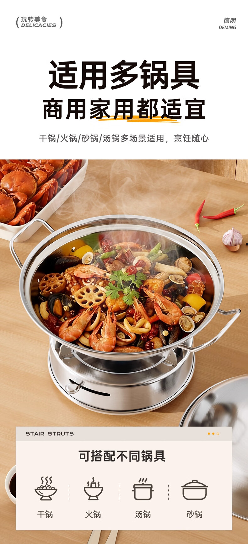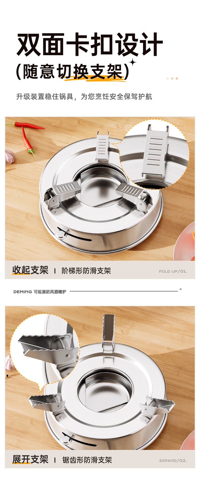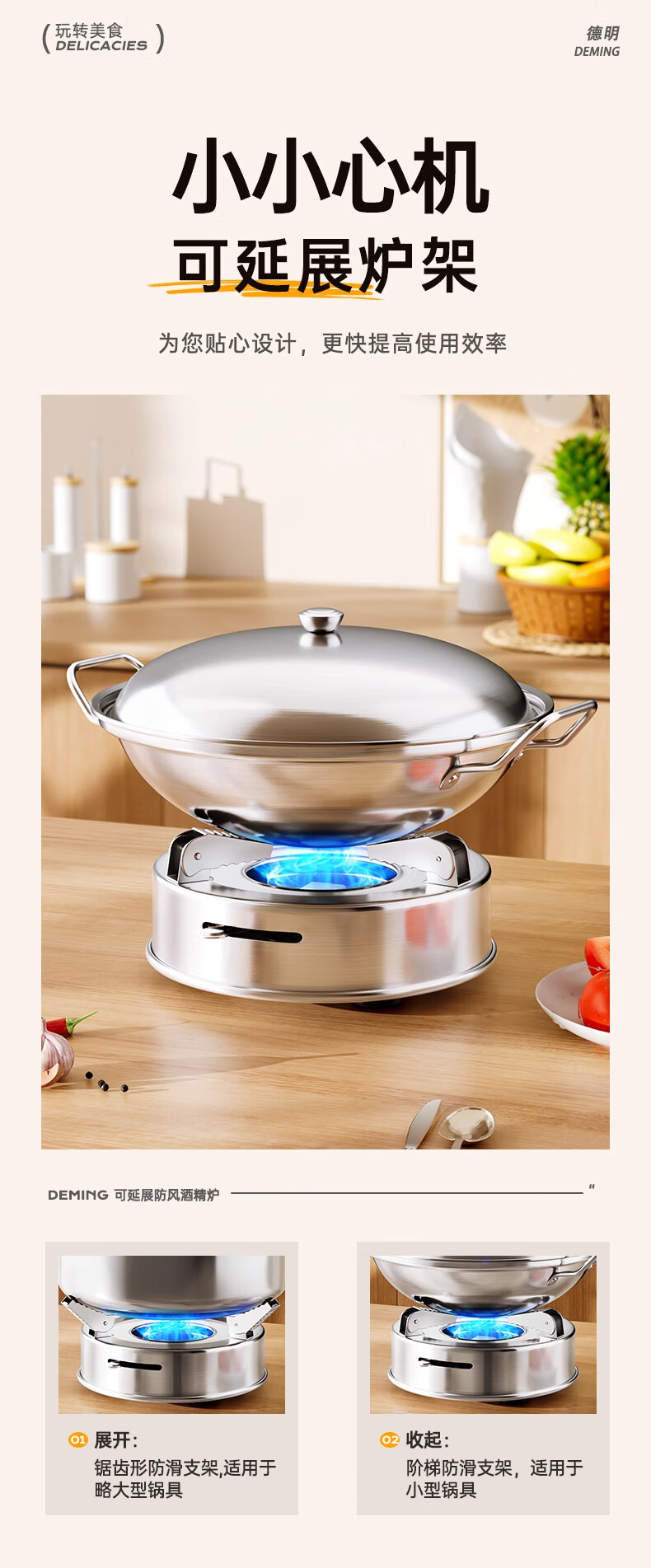 Deming dry pot alcohol stove small hot pot household windproof special stove solid alcohol pot pot Ming stove stainless steel pot