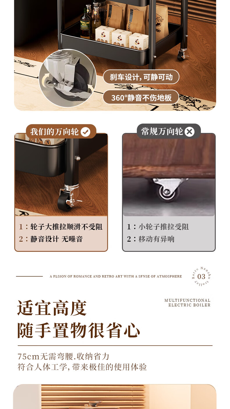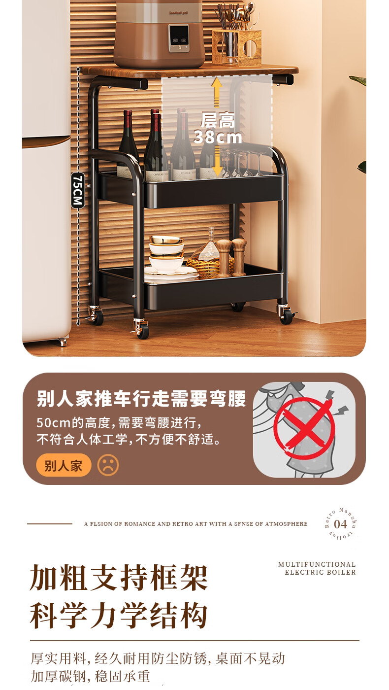 Centennial Zhenghe kitchen rack floor-standing trolley bedside table living room removable snack multi-layer storage rack