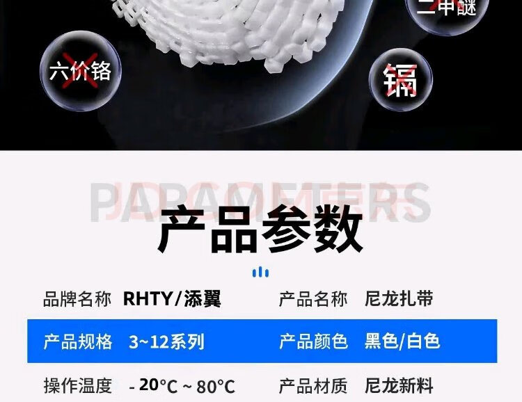 Tianyi self-locking nylon cable ties, cable management belts, host installation, gardening, cable desktop cable management, wire binding straps, white 2.5*200mm, 500 pieces