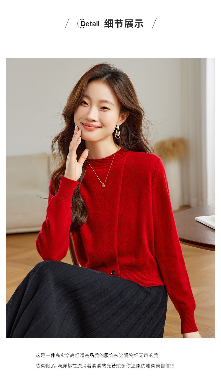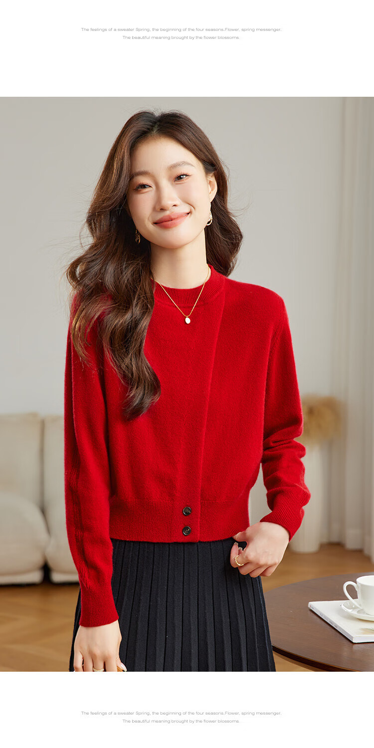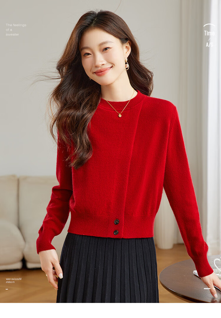 Shexi (Srcr) 100% cashmere design soft and waxy pure cashmere sweater for women spring and autumn animal year red knitted bottoming sweater