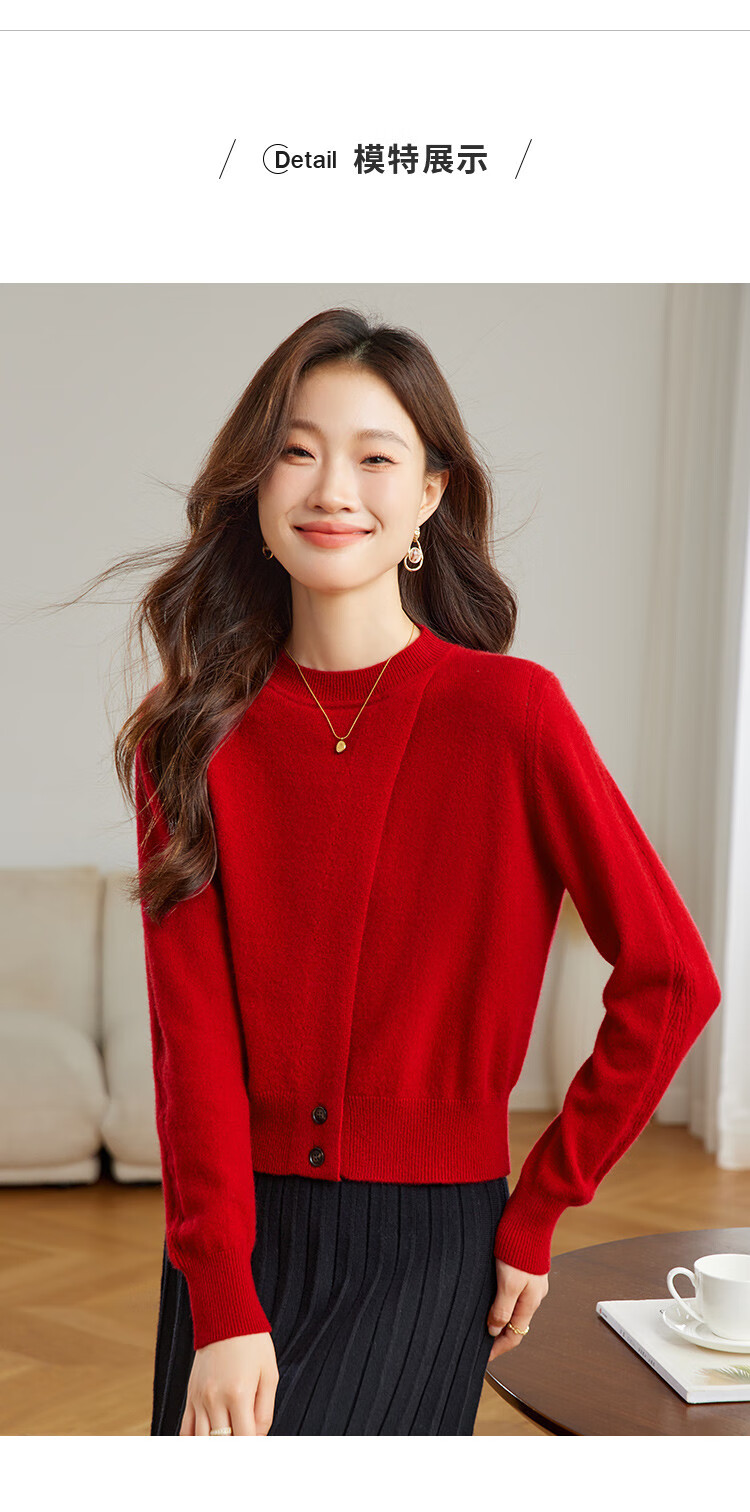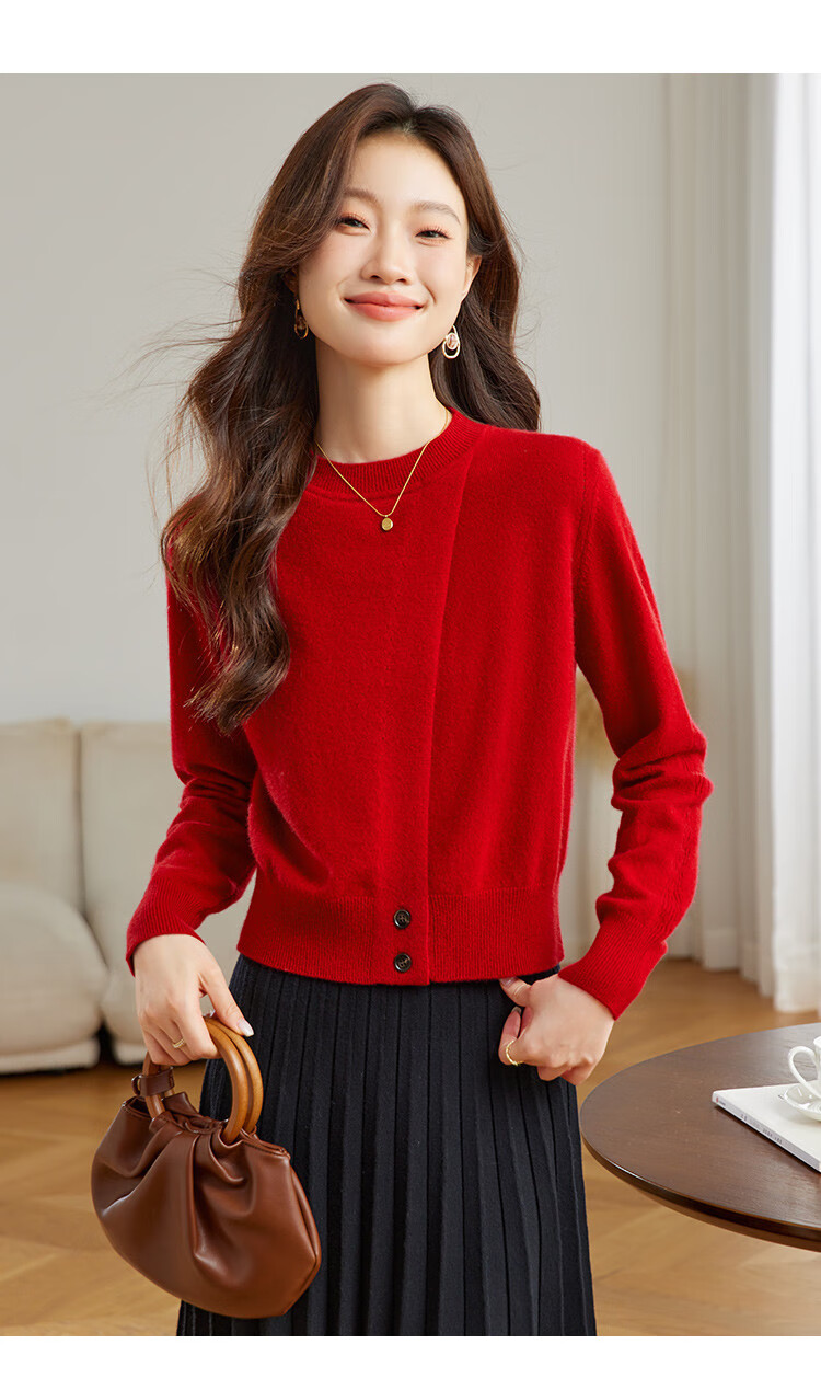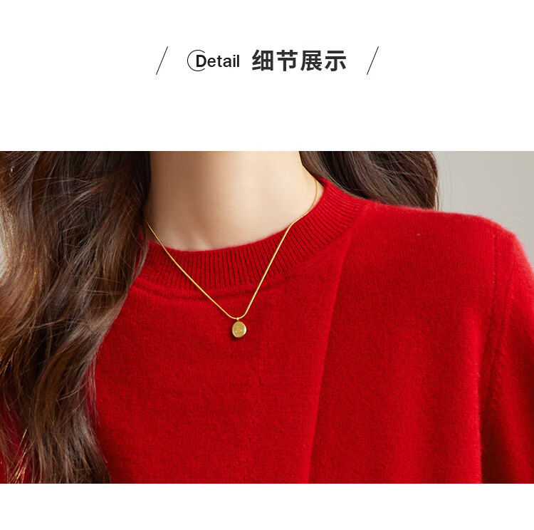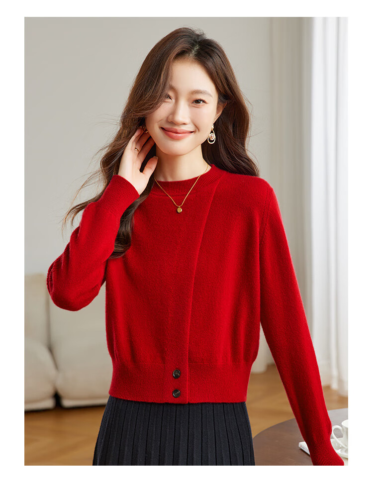 Shexi (Srcr) 100% cashmere design soft and waxy pure cashmere sweater for women spring and autumn animal year red knitted bottoming sweater