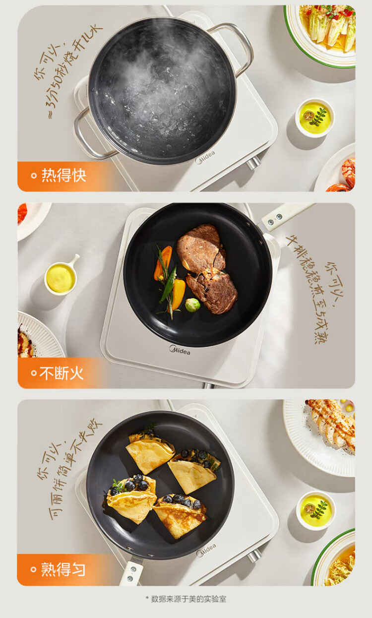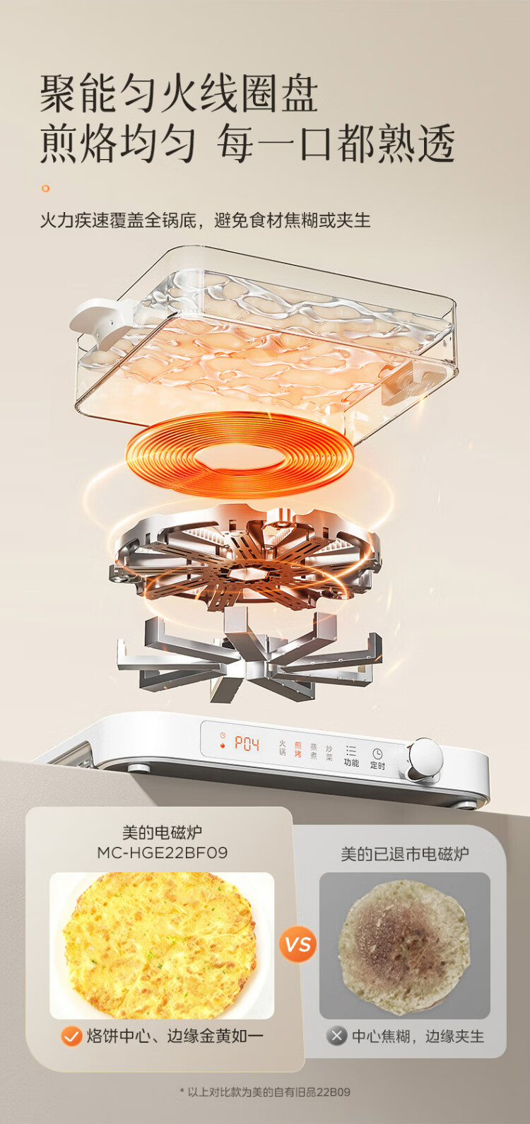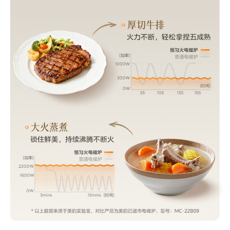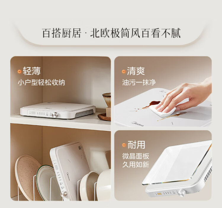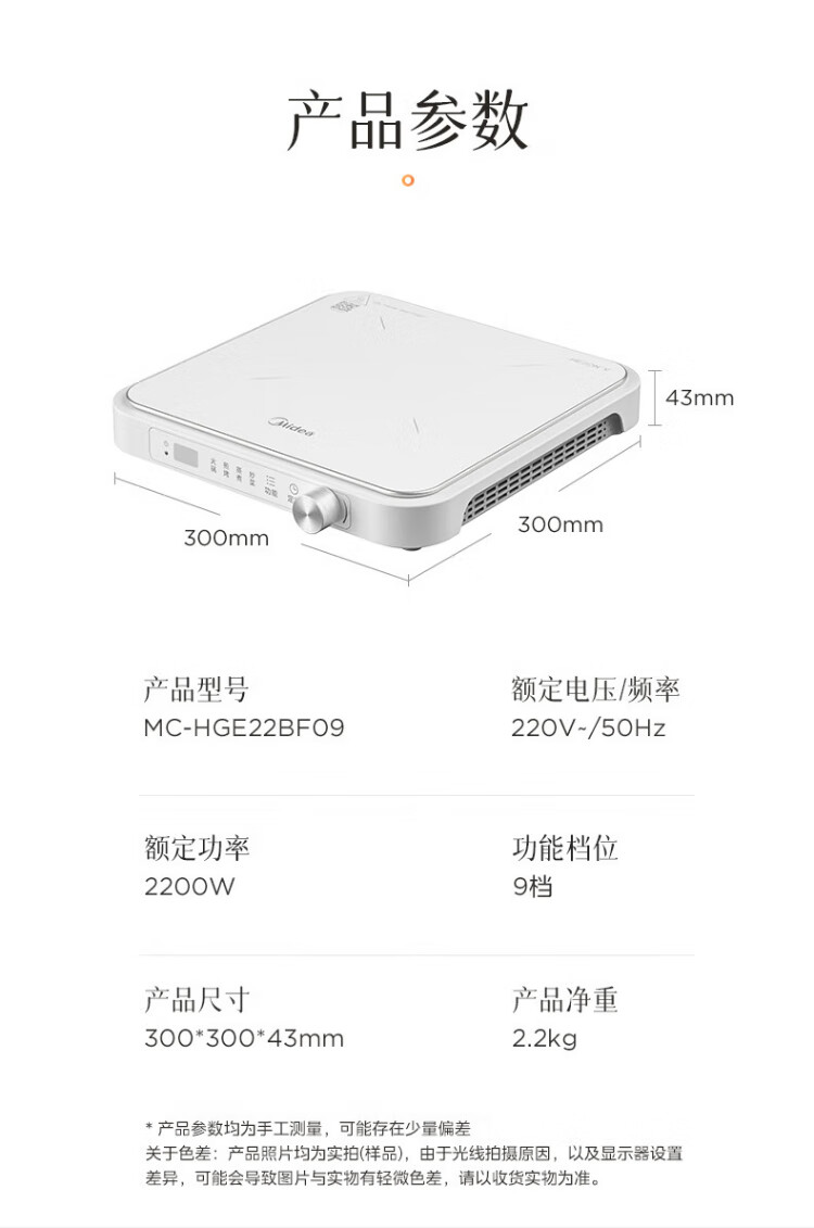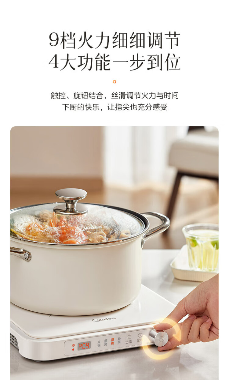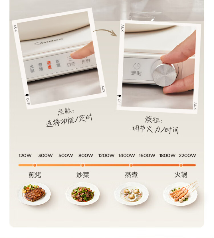 Midea household induction cooker electric ceramic stove battery stove 2200W high power fierce new induction cooker integrated microcrystalline panel stir-fry cooking timer fire boiler MC-HGE22BF09