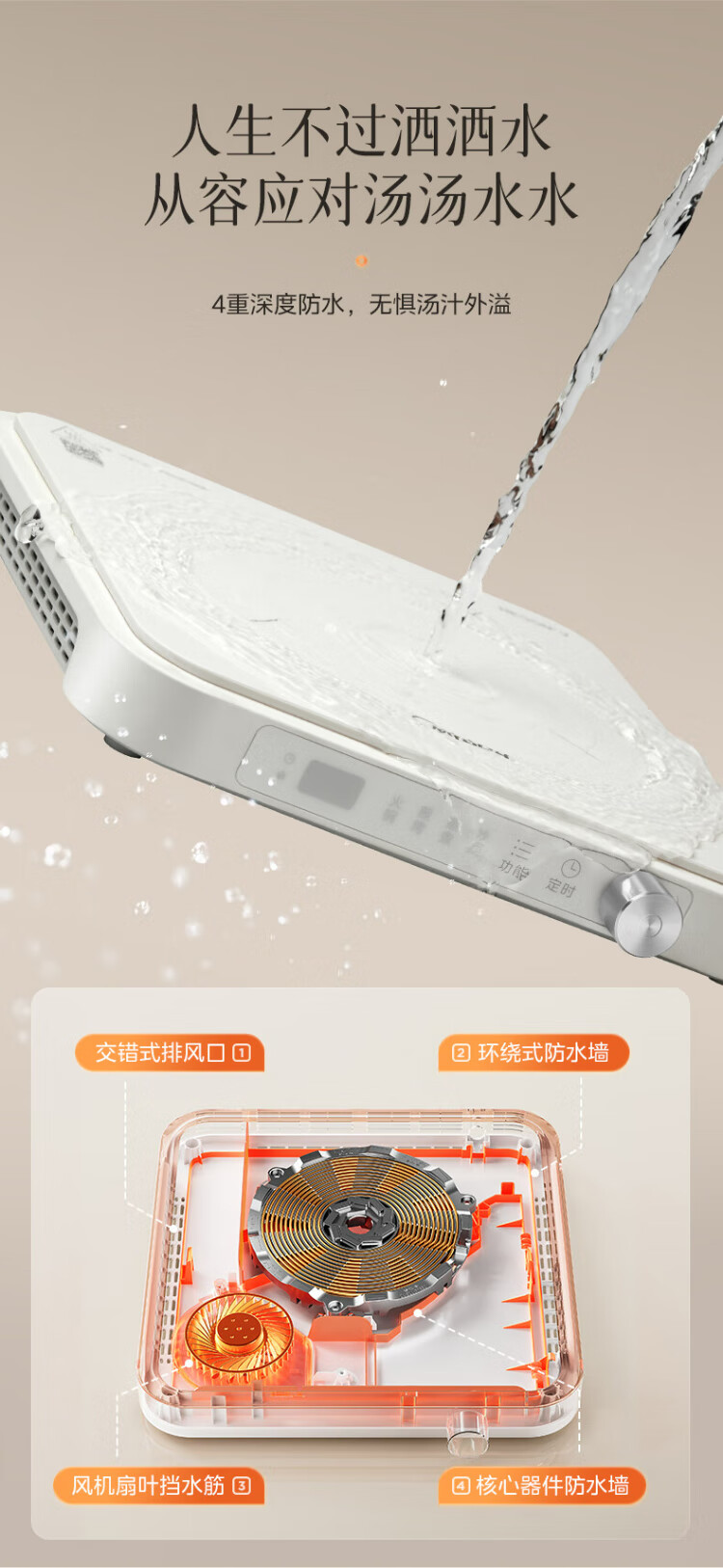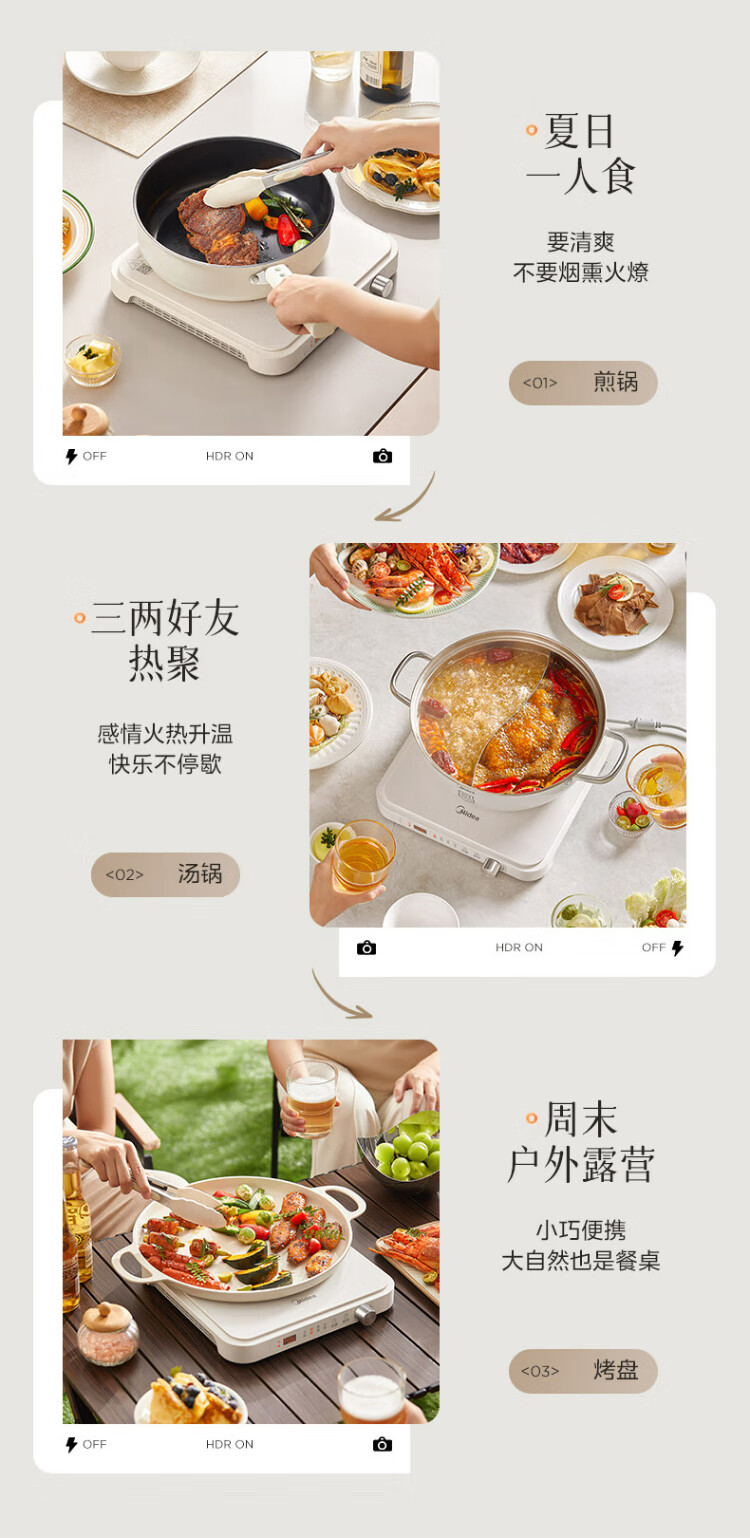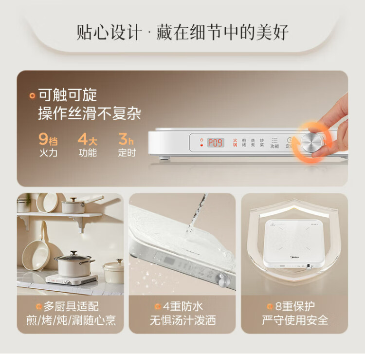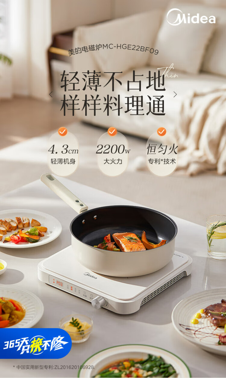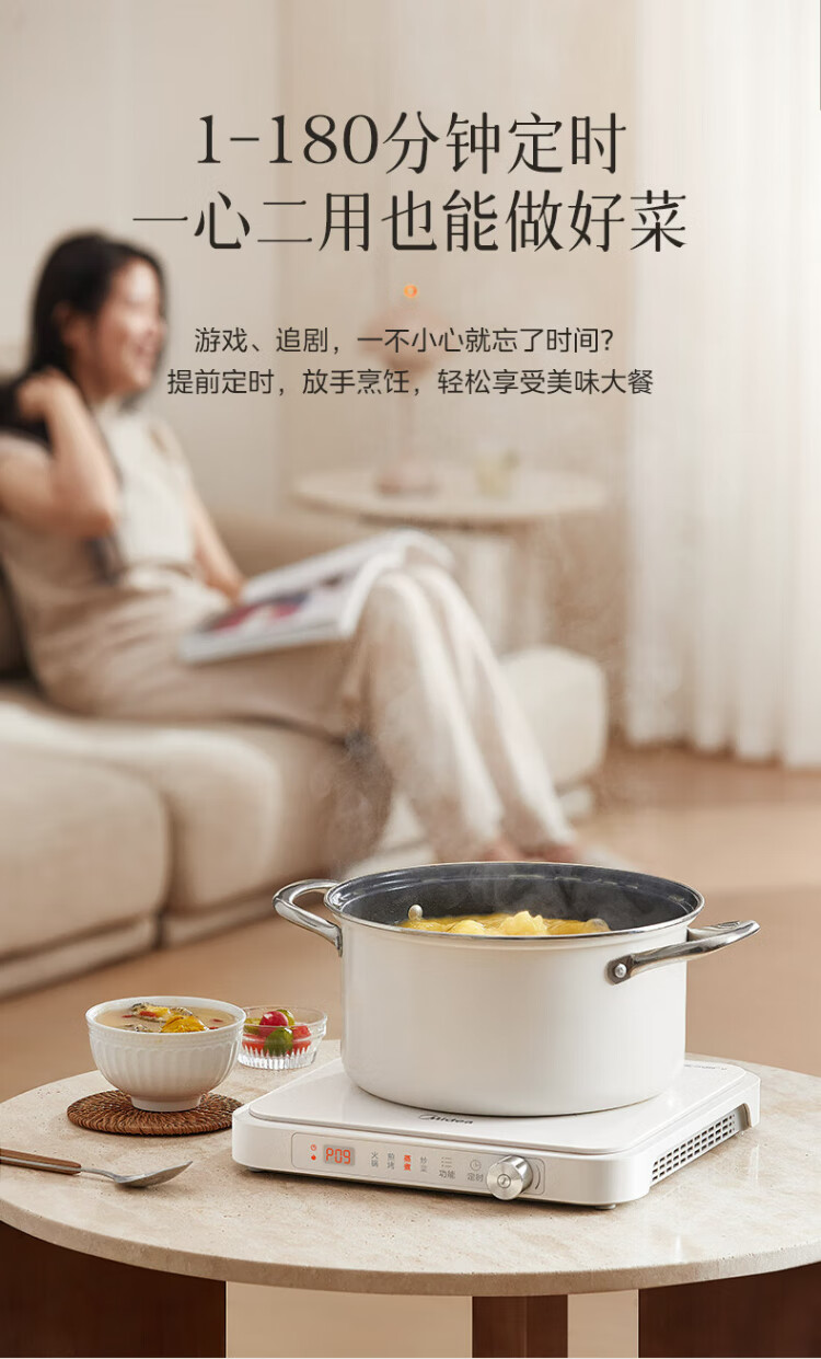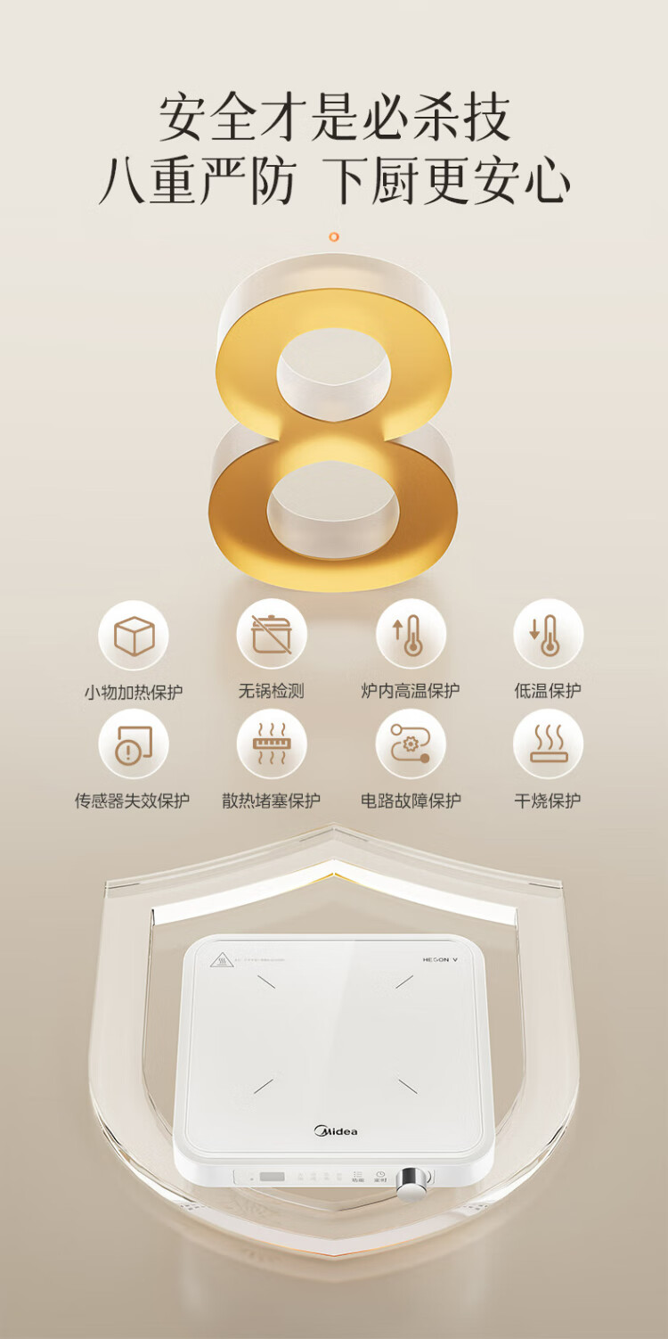Midea household induction cooker electric ceramic stove battery stove 2200W high power fierce new induction cooker integrated microcrystalline panel stir-fry cooking timer fire boiler MC-HGE22BF09