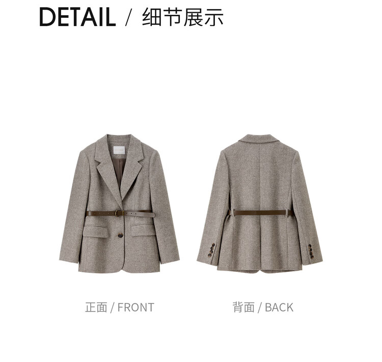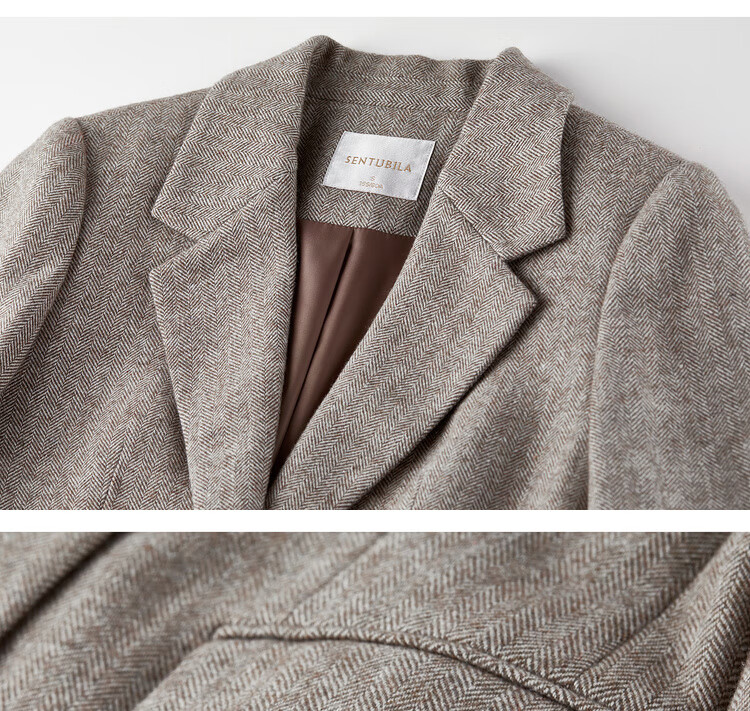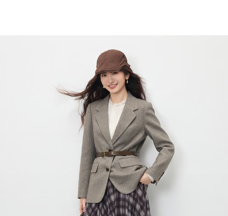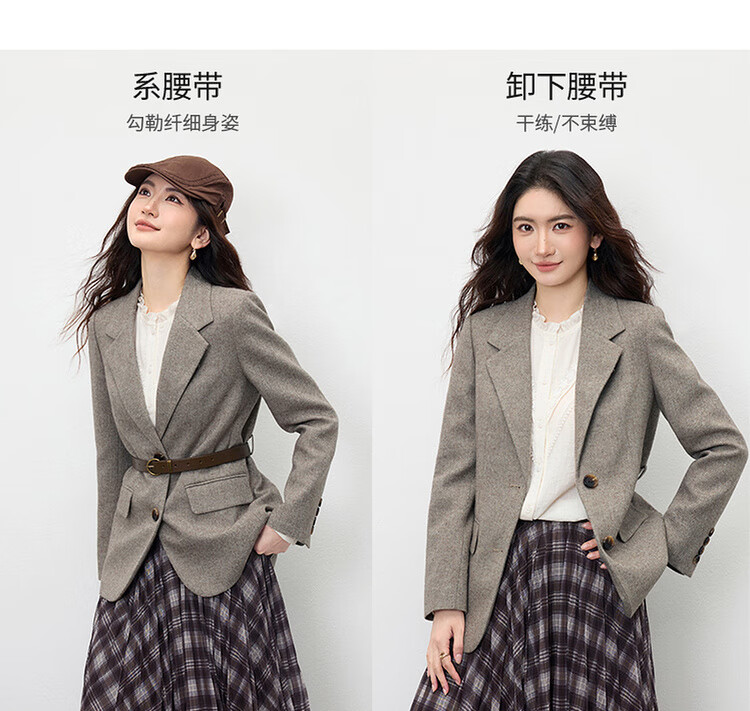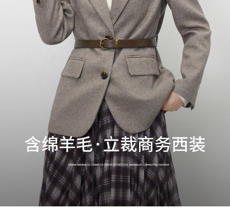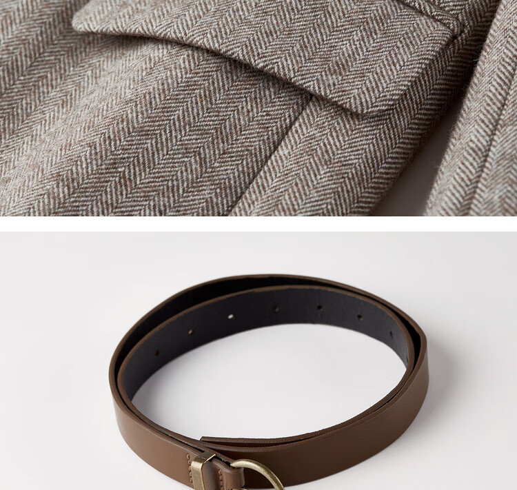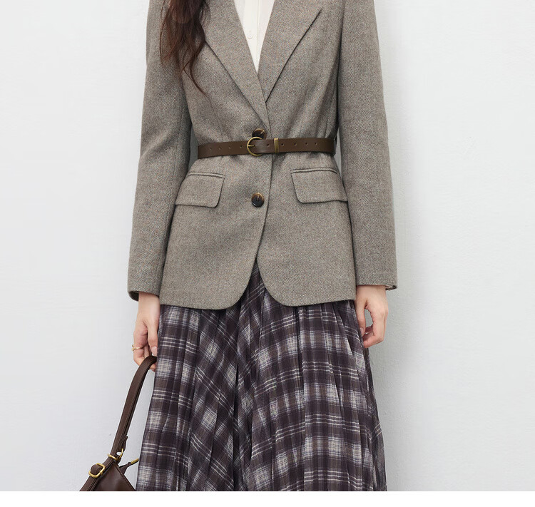 Shandubila sheep wool tailored suit for women winter flat lapel shoulder pad small suit belt slim herringbone business jacket