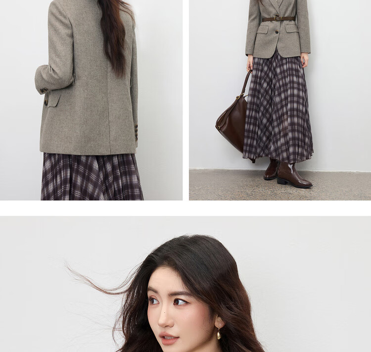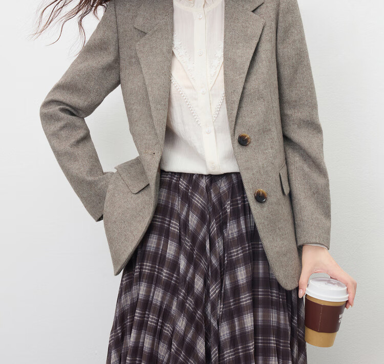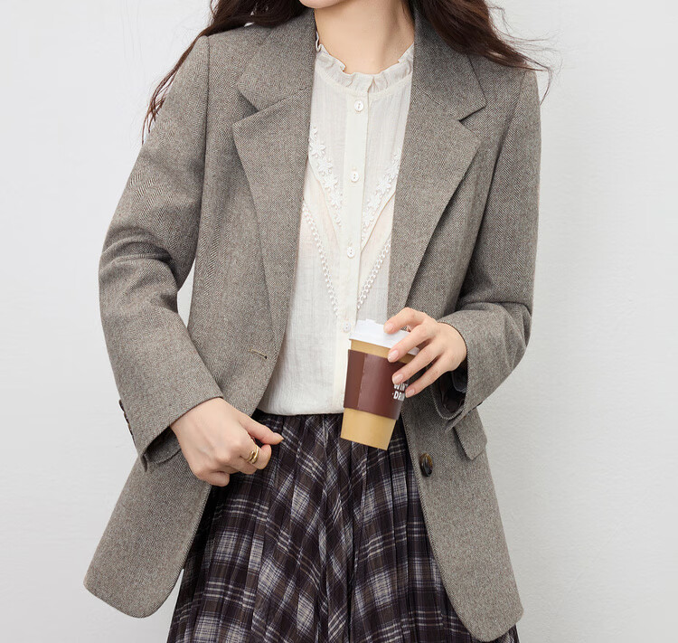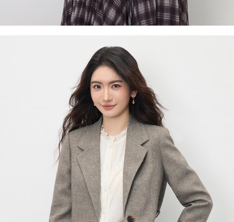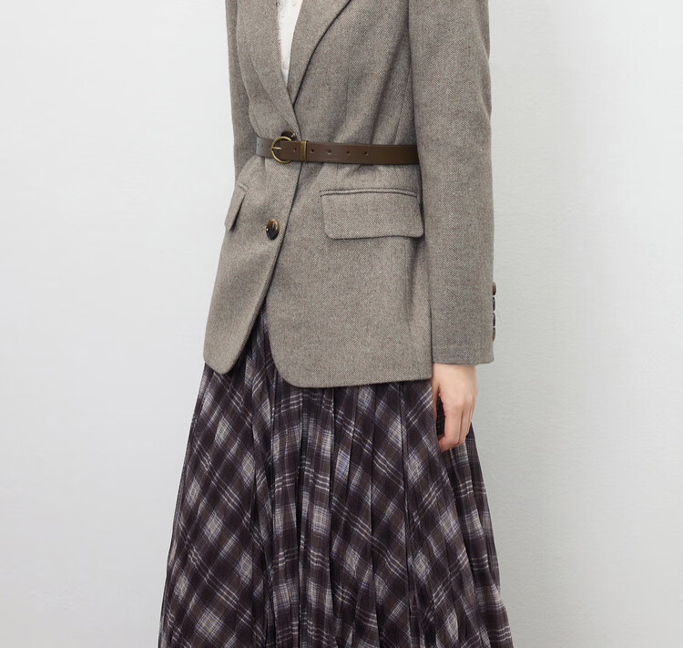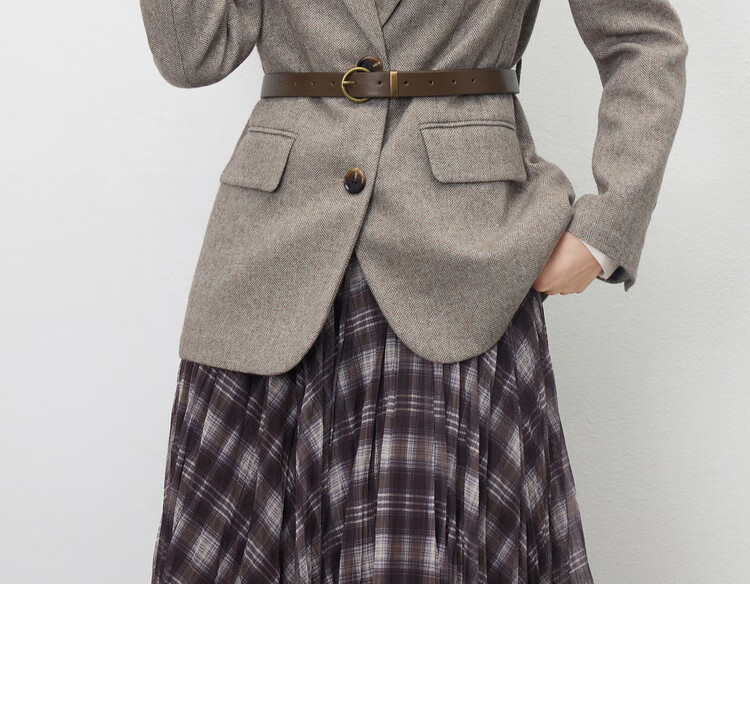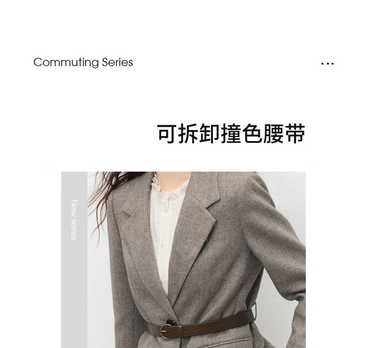 Shandubila sheep wool tailored suit for women winter flat lapel shoulder pad small suit belt slim herringbone business jacket