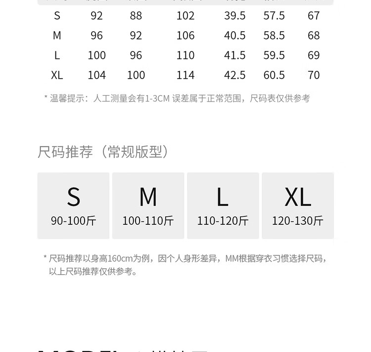 China (cm) 160-165/84-86 165-170 / 88-90 167-172 / 92-96 168-173 / 98-102 170-176 / 106-110
