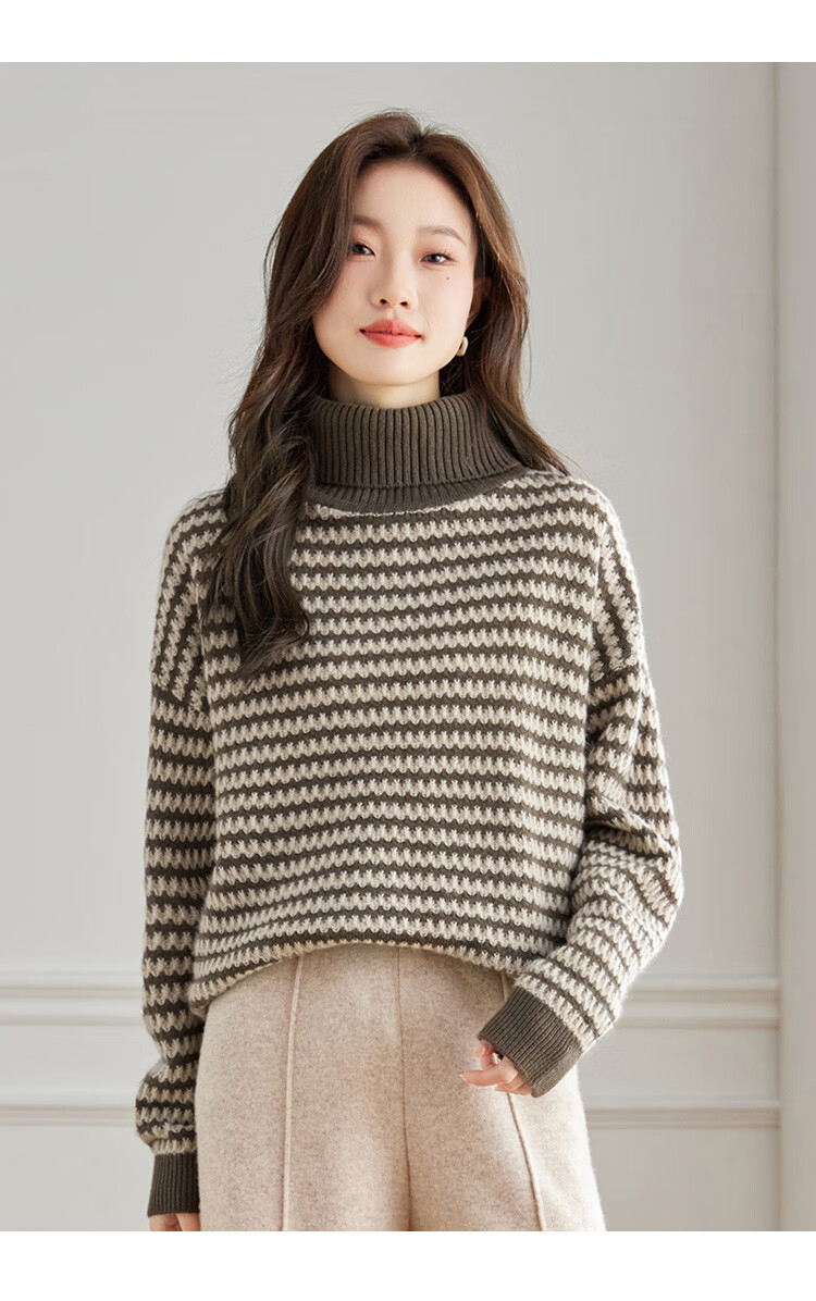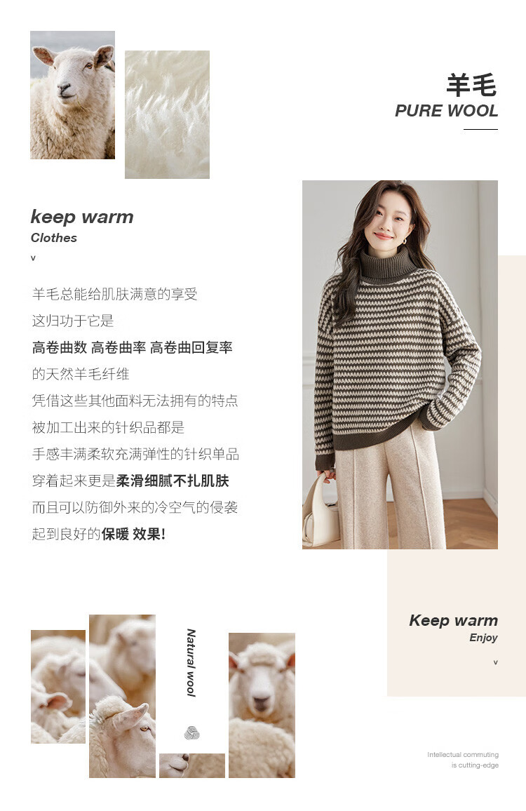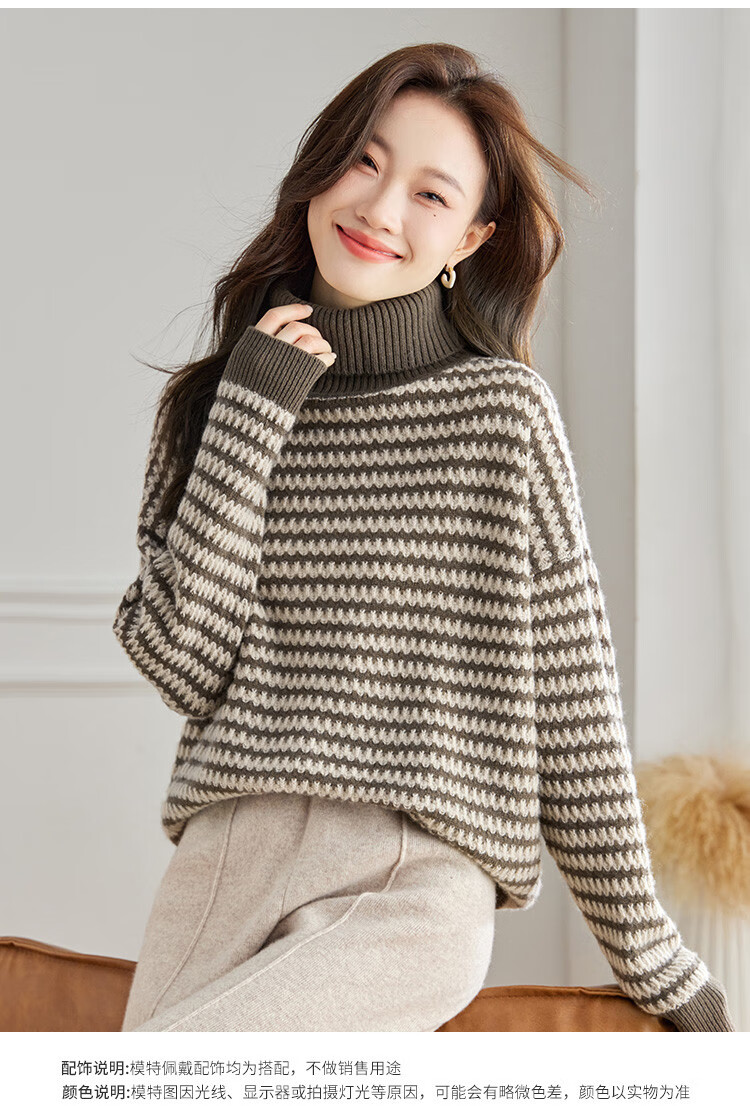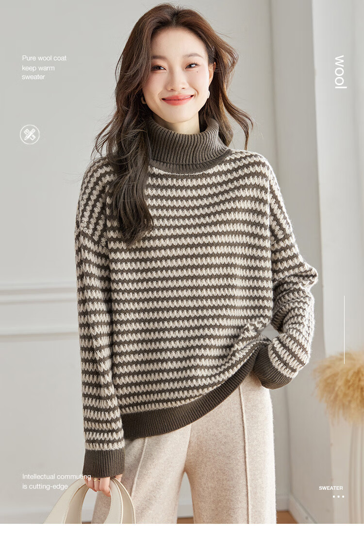 Shexi (Srcr) turtleneck pure wool sweater women's retro sweater outer wear autumn and winter lazy loose knitted thick base