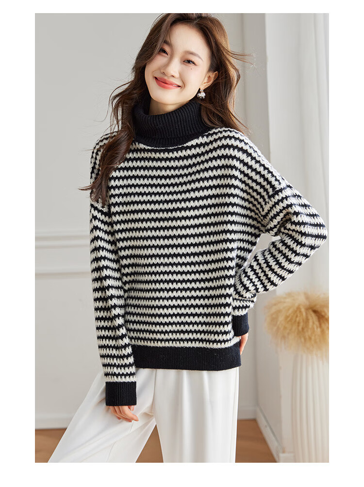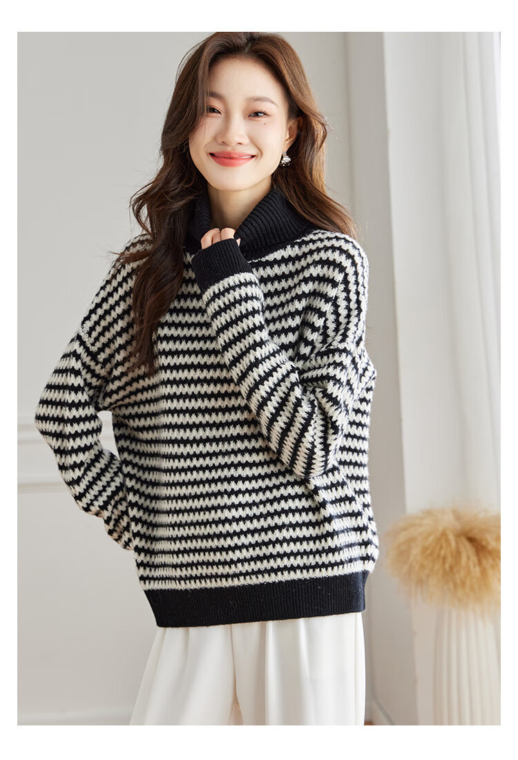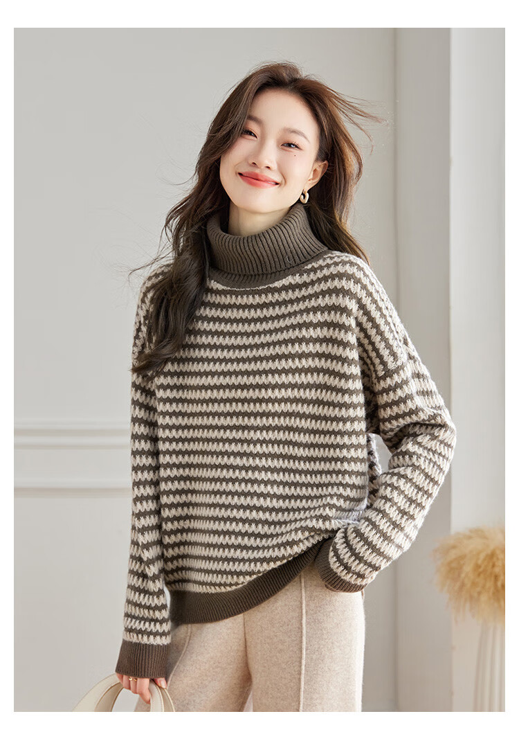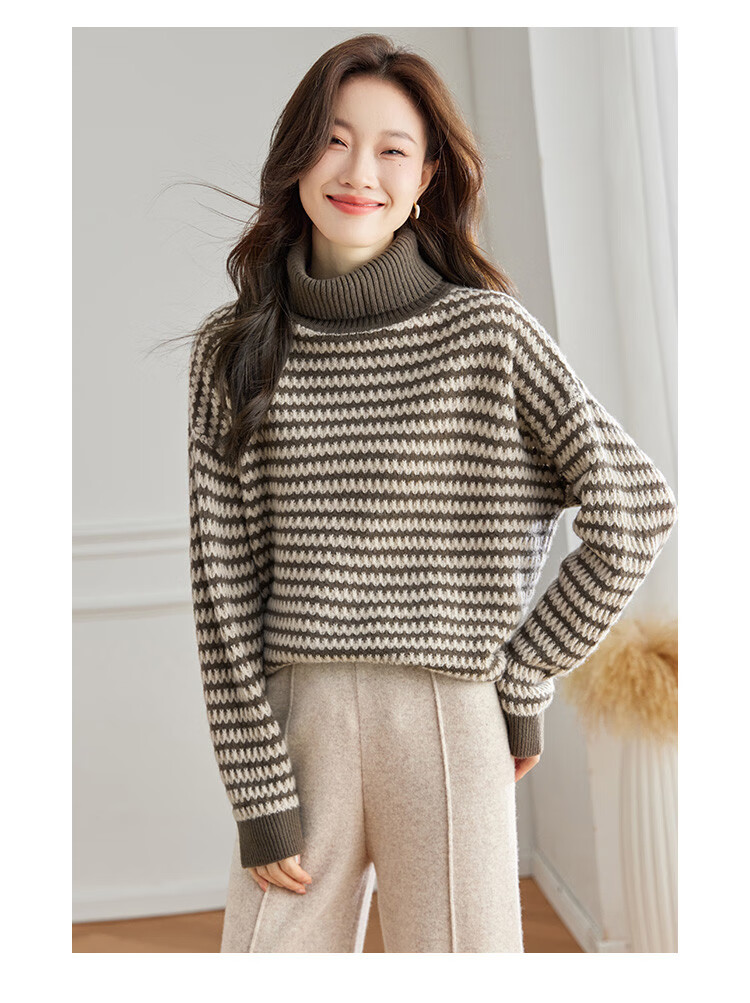 Shexi (Srcr) turtleneck pure wool sweater women's retro sweater outer wear autumn and winter lazy loose knitted thick base