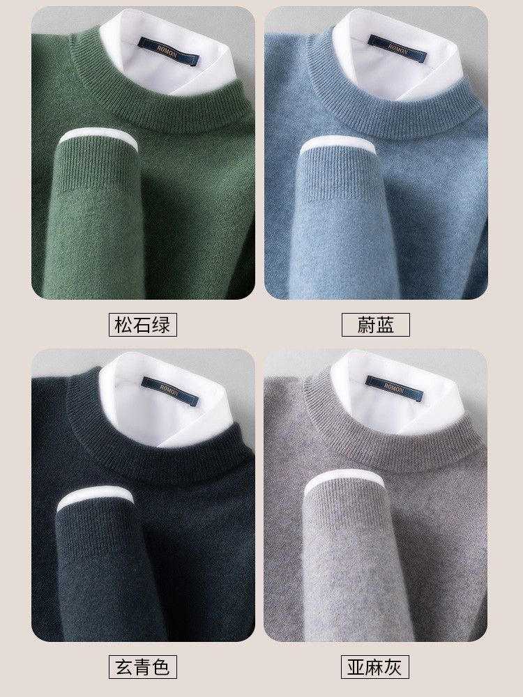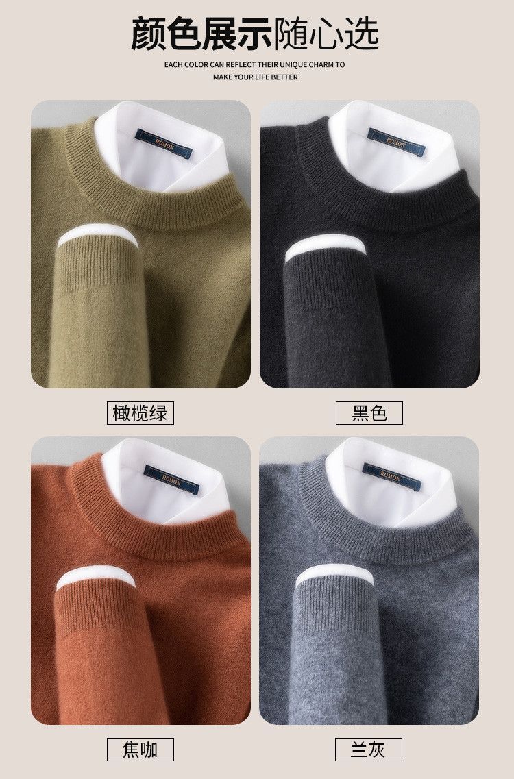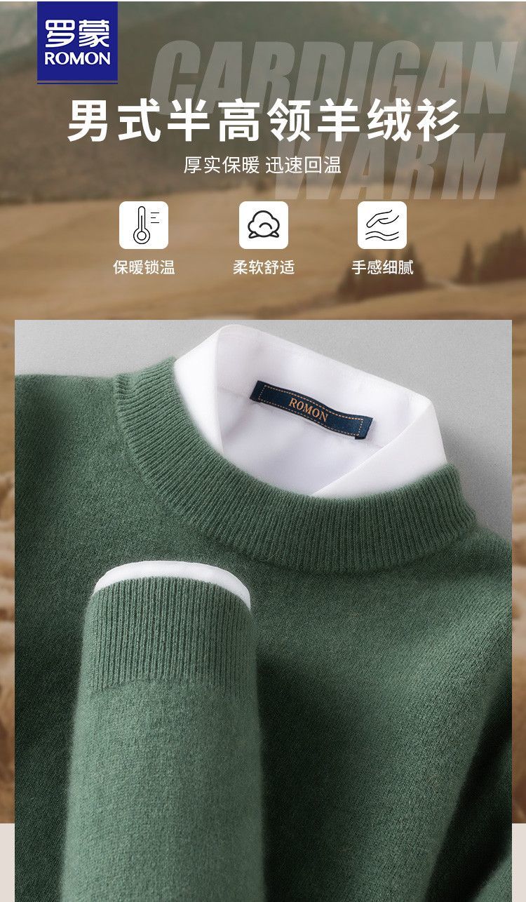 Romon Cashmere Sweater Men's Warm Half-Turtleneck Sweater Men's 2025 New Autumn and Winter Wool Sweater Men