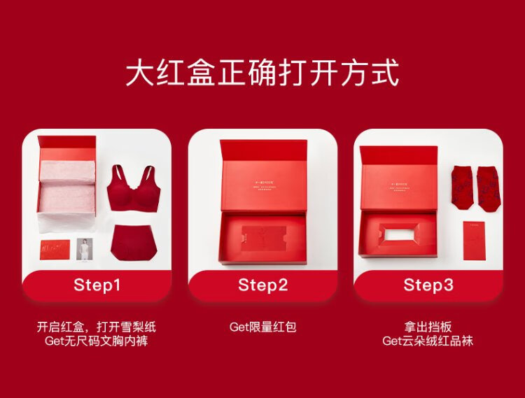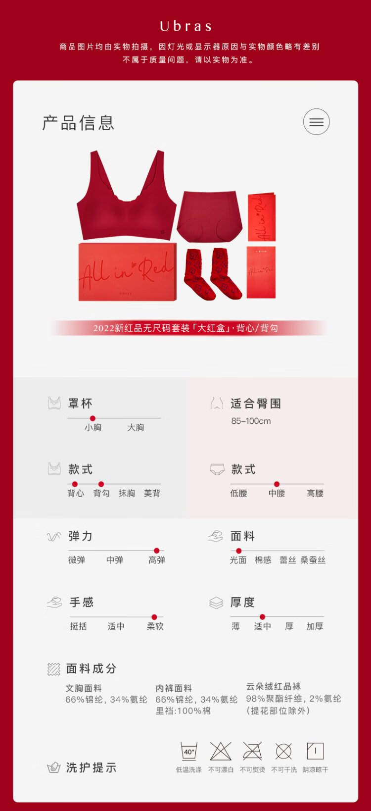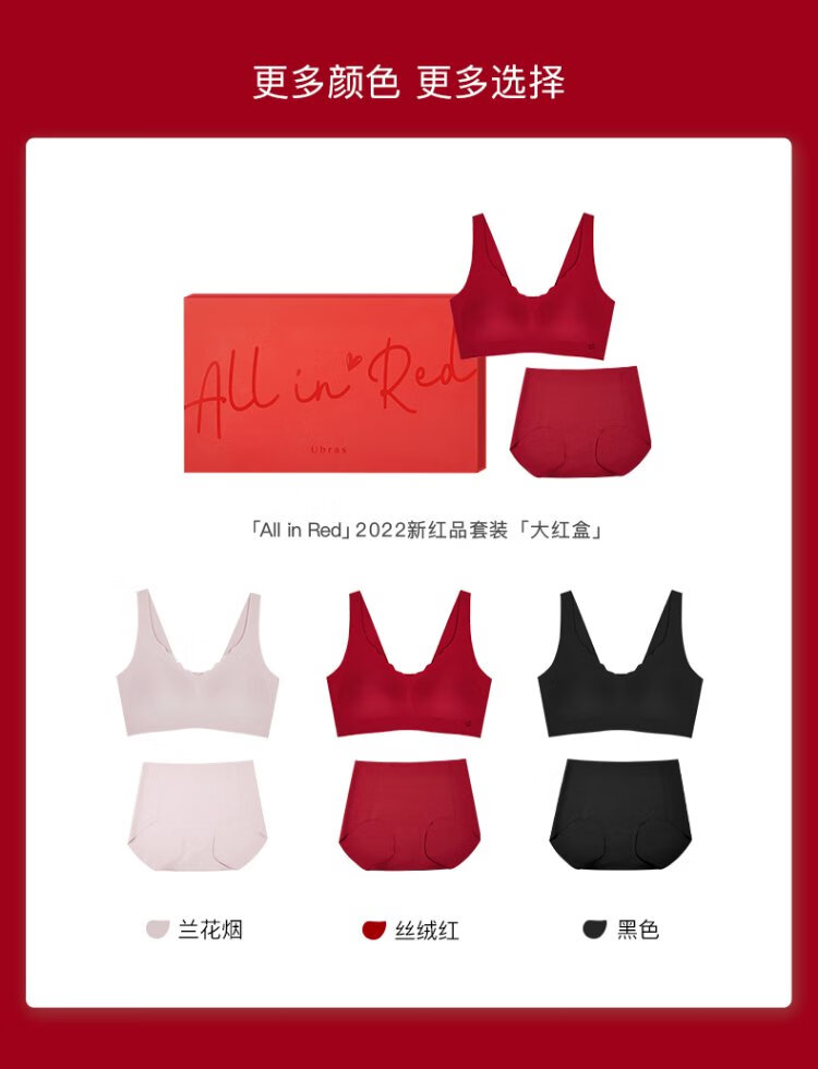 Ubras new big red box no size birth year underwear women's seamless spray gift box bra lucky red standard vest style