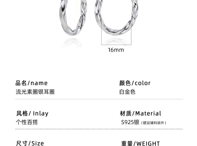 Yalundi Silver Earrings Women's Earrings Plain Rings Unique and Beautiful Earrings Women's 2025 New High-Quality Light Luxurious Earrings Earrings Buckle Jewelry