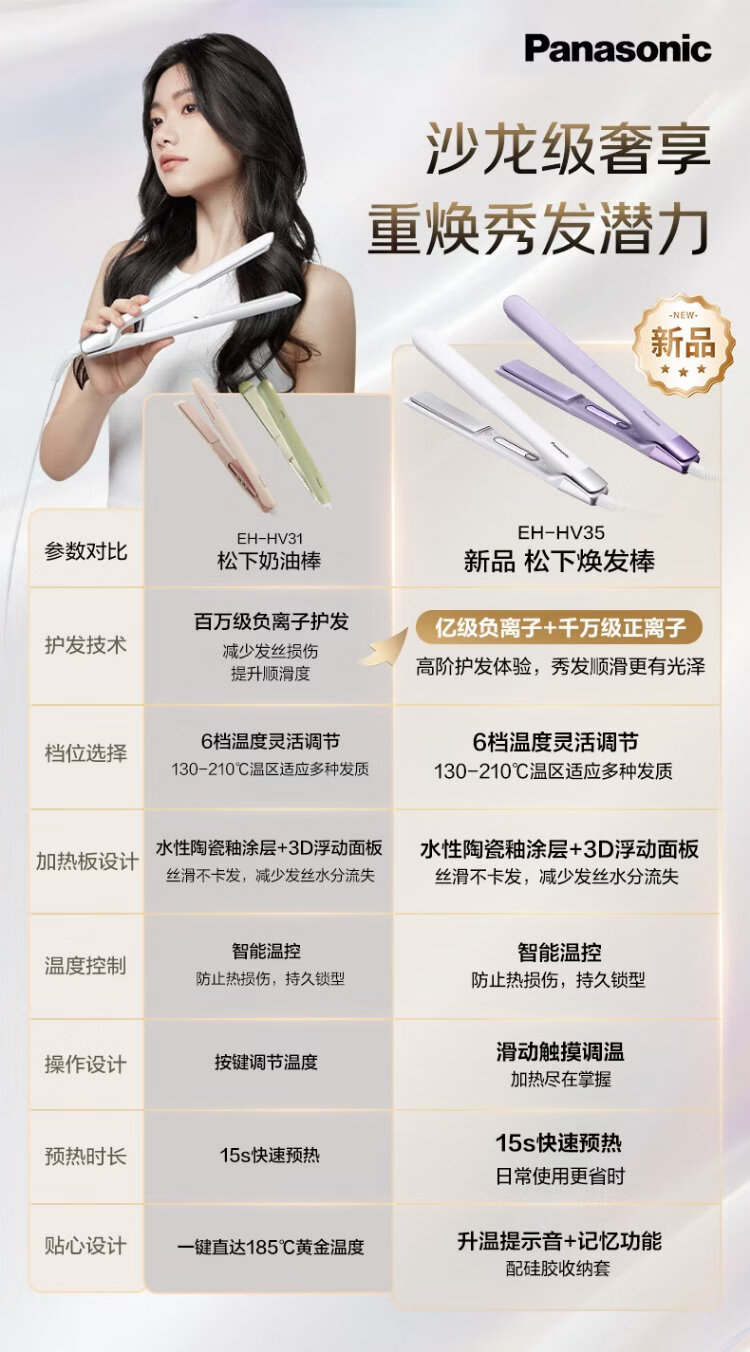Panasonic glow stick straight clip bipolar ion multifunctional curling perm stick for men with short hair and bangs as a New Year gift for girls-EH-HV35