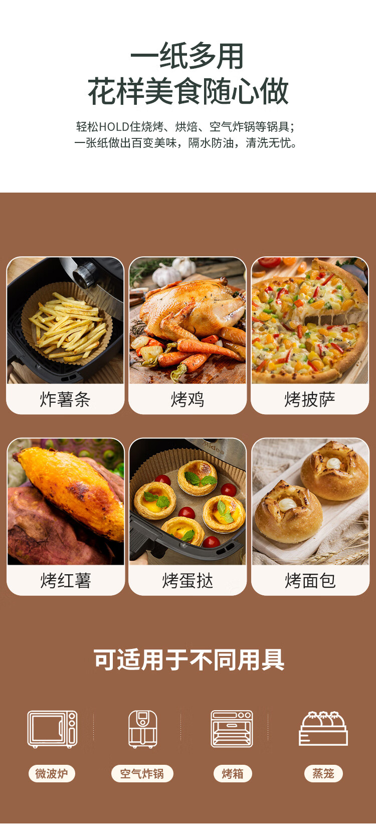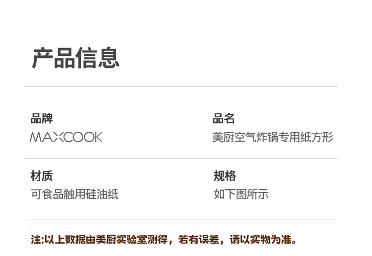 MAXCOOK special paper for air fryer, silicone oil paper, oven baking pan, oil-absorbing pad paper, baking paper 20cm*50 pieces MCPJ4011
