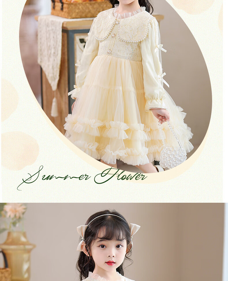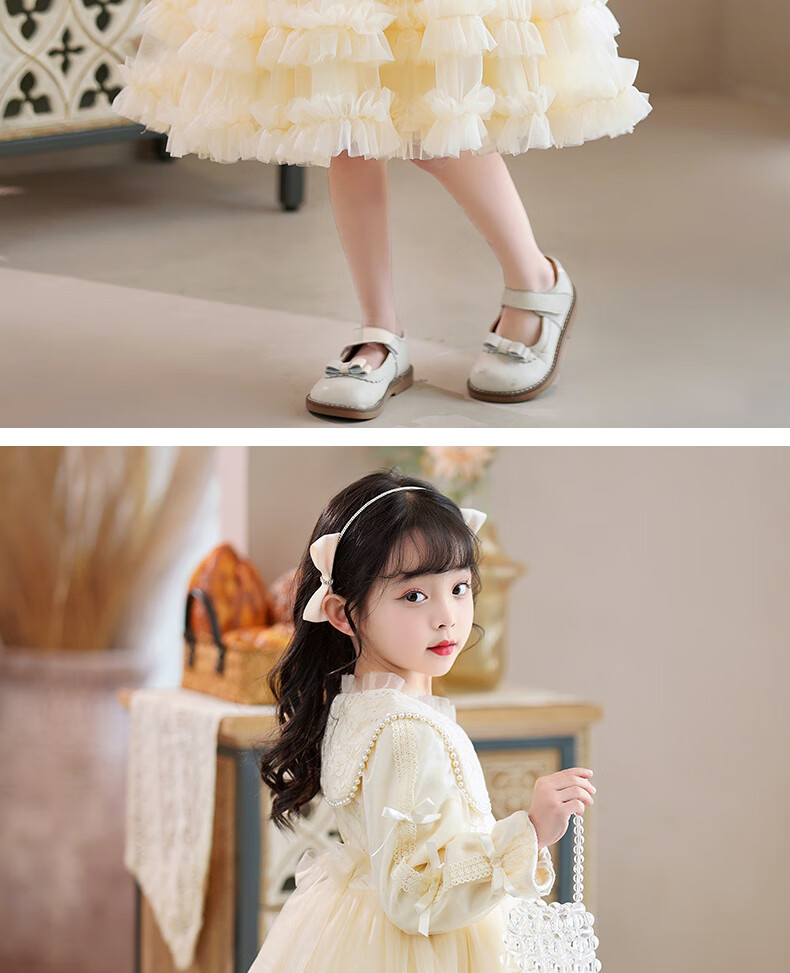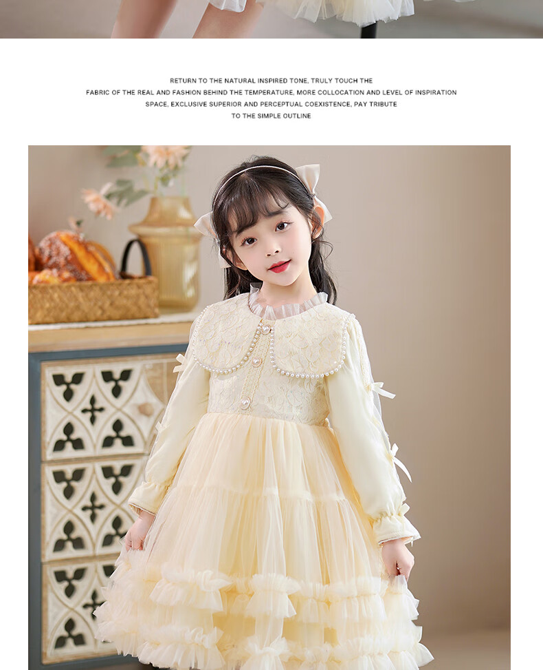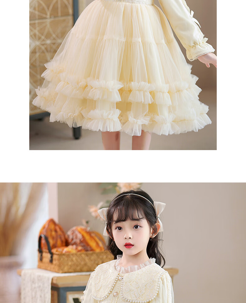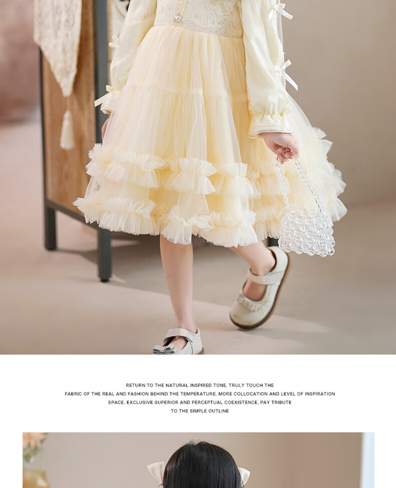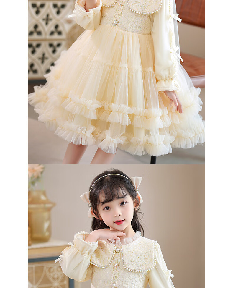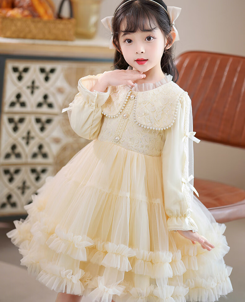 Piggy Banner (PEPCO) girls dress winter fluffy gauze children's winter skirt little girl fashionable princess dress winter dress Champagne 120