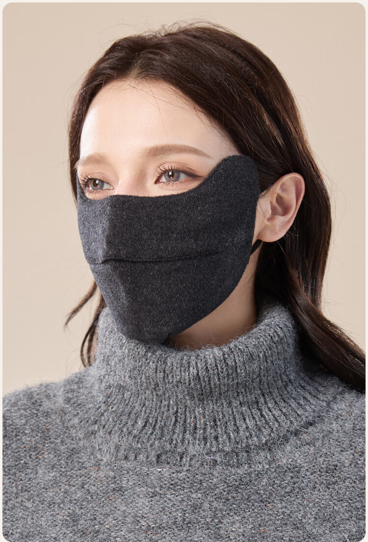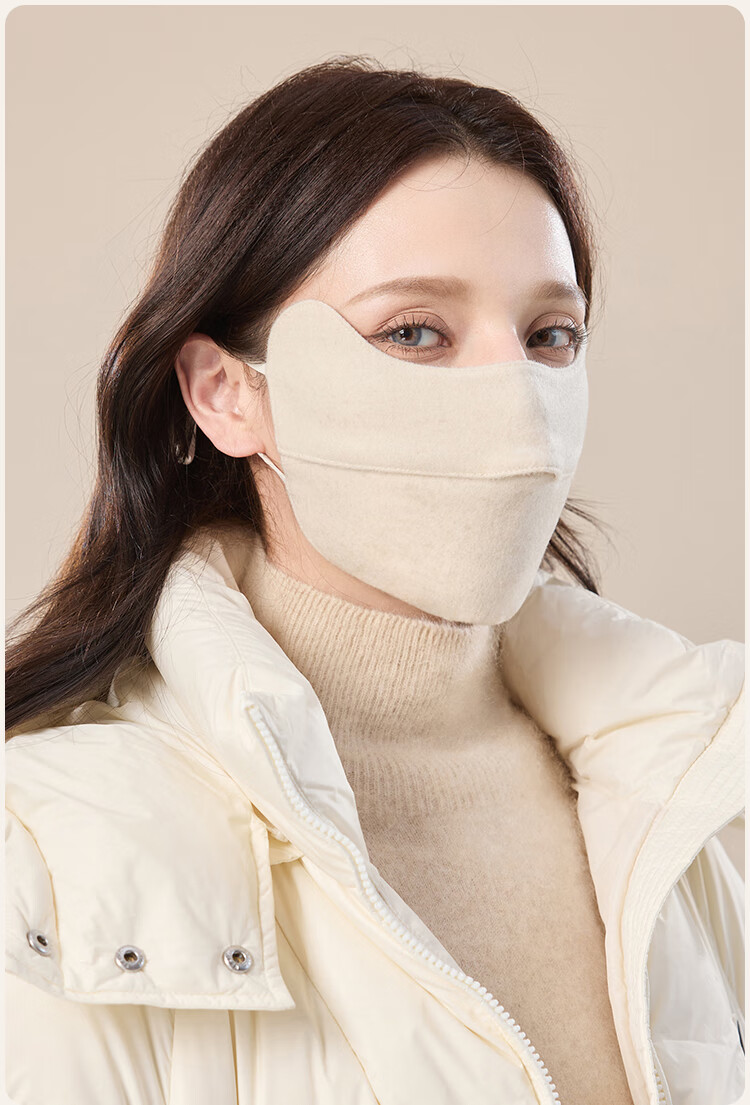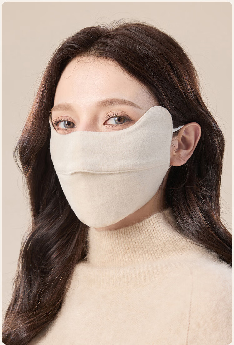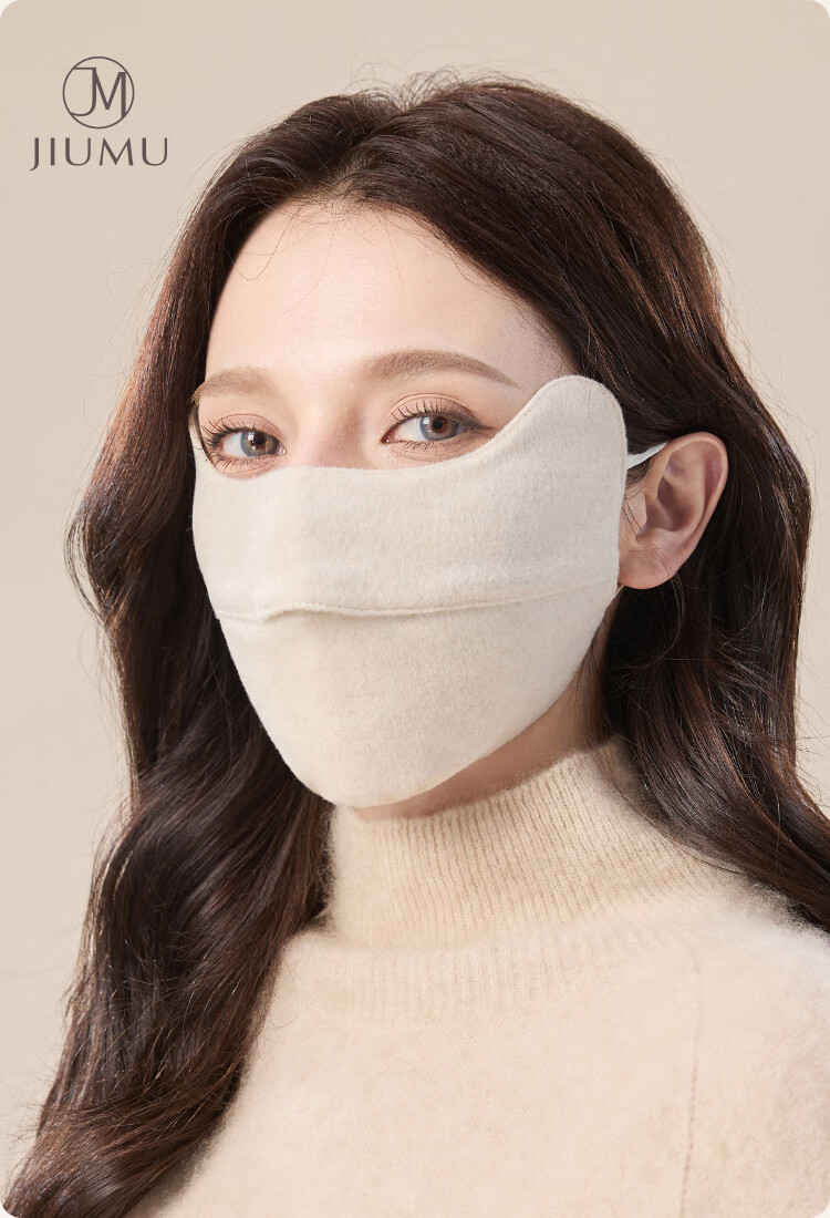 JIUMU Sheep Wool Warm Mask Women's Winter Sun Protection, Windproof and Cold Protection Winter Outdoor Breathable Face Protective Silk Mask