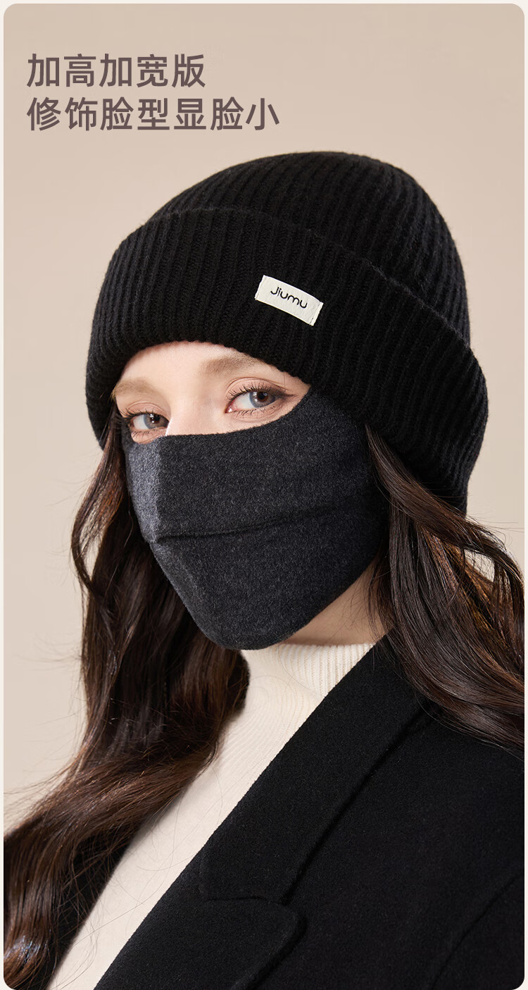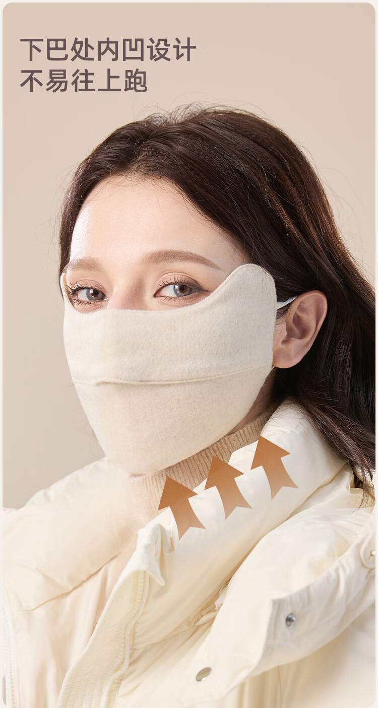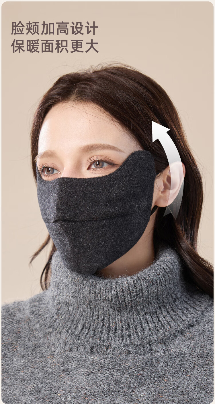 JIUMU Sheep Wool Warm Mask Women's Winter Sun Protection, Windproof and Cold Protection Winter Outdoor Breathable Face Protective Silk Mask
