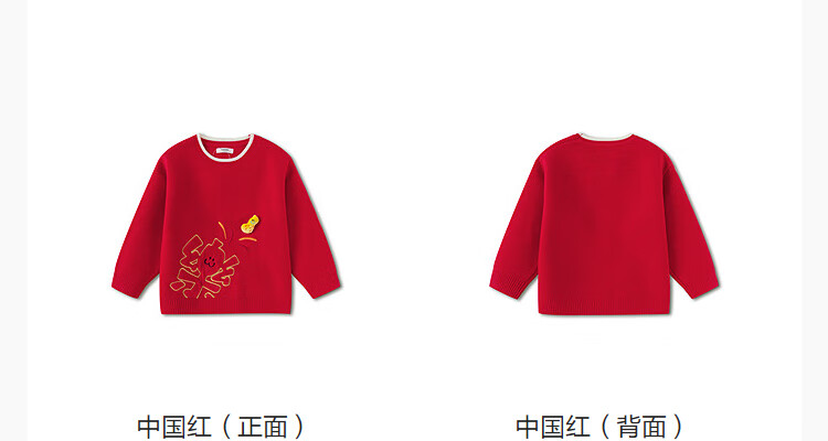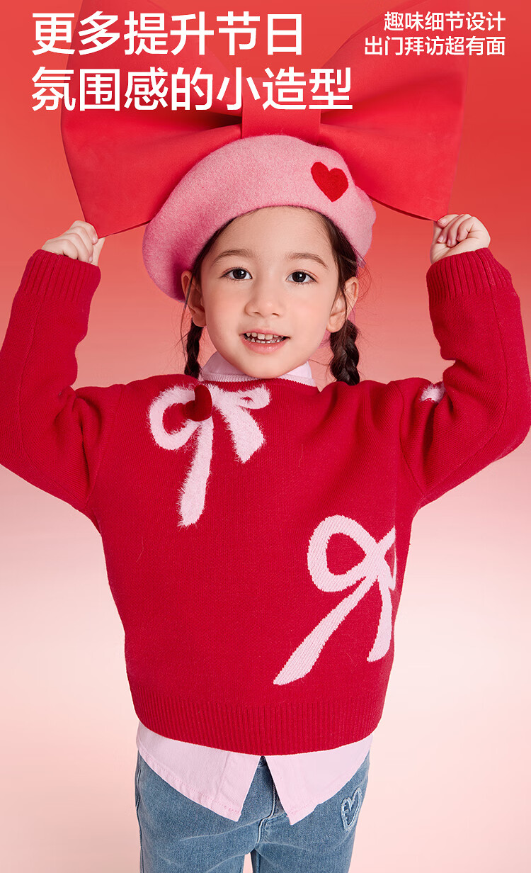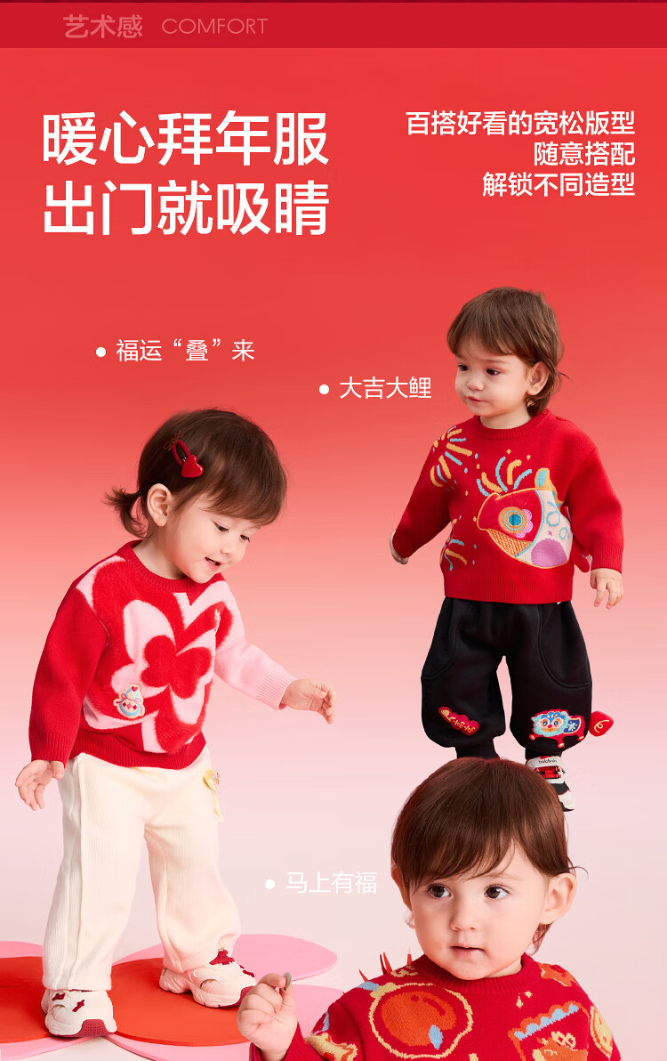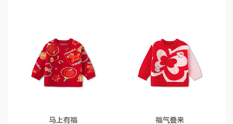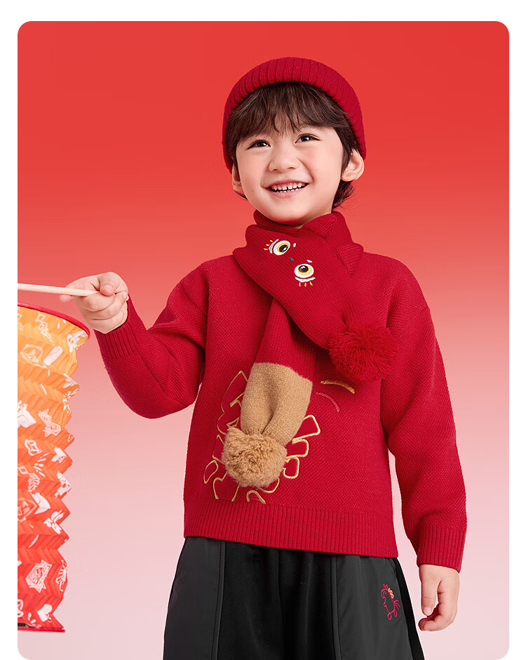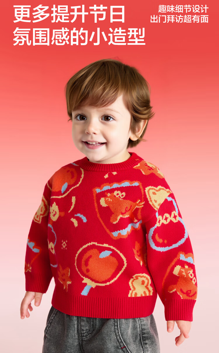 Balabala children's clothing children's sweaters boys and girls sweaters baby baby 2025 new winter round neck pullover sweater New Year's clothing