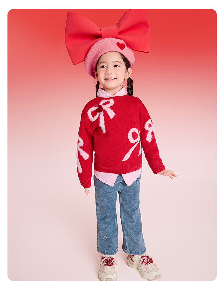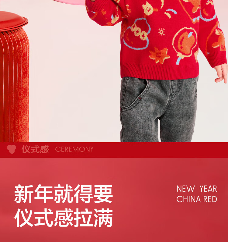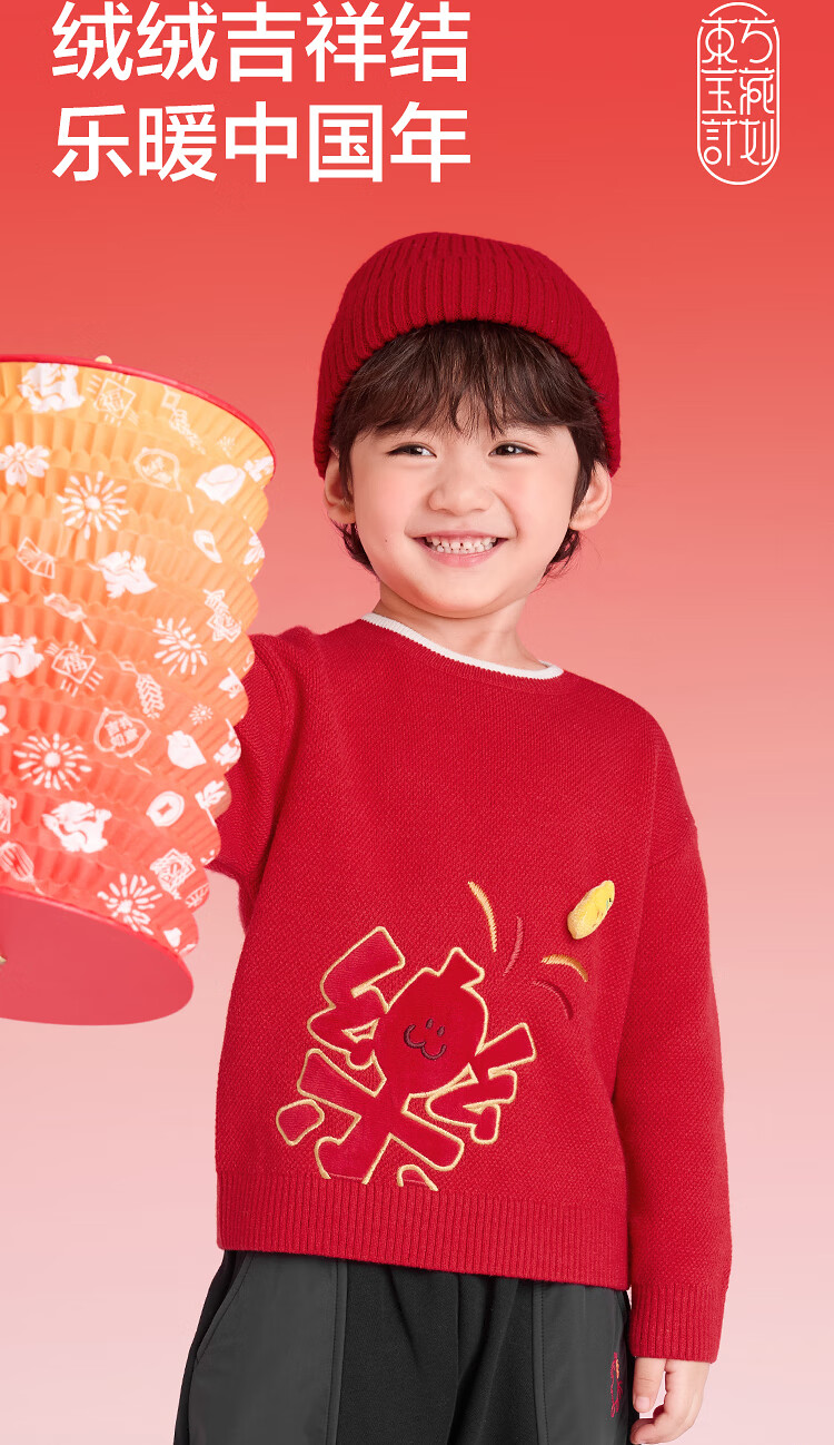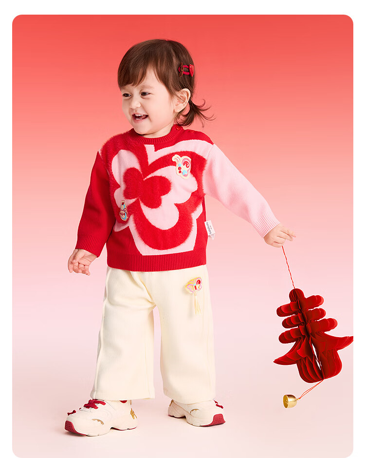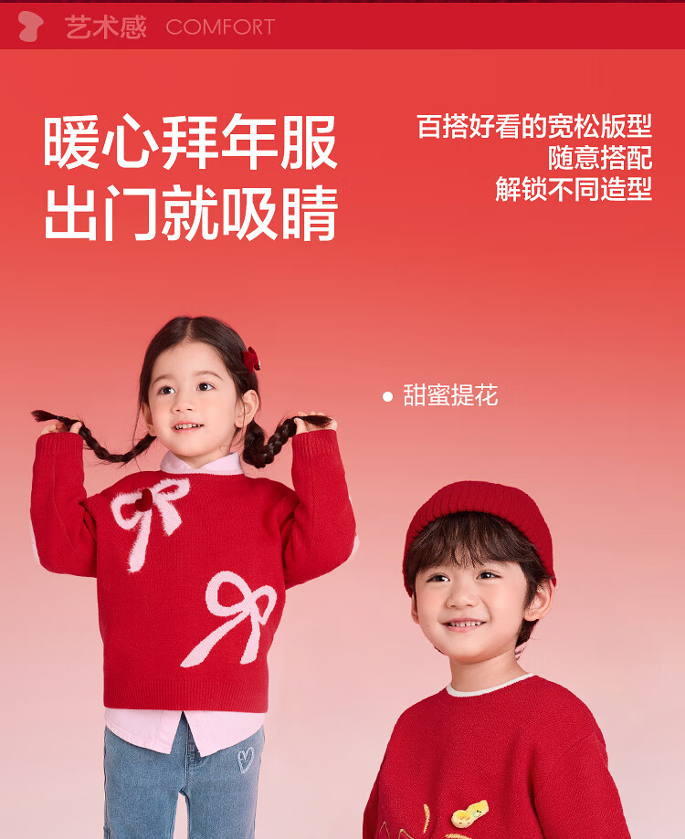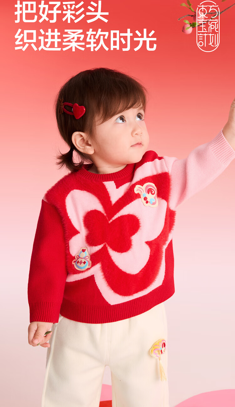 Balabala children's clothing children's sweaters boys and girls sweaters baby baby 2025 new winter round neck pullover sweater New Year's clothing