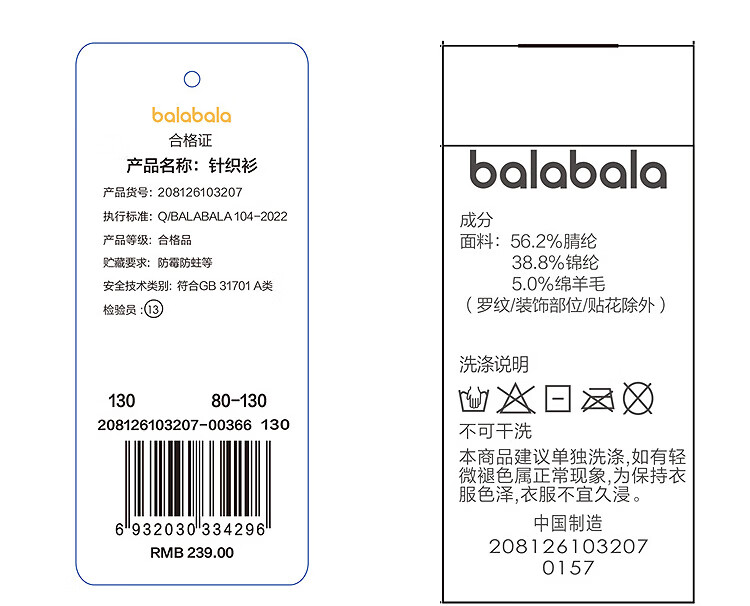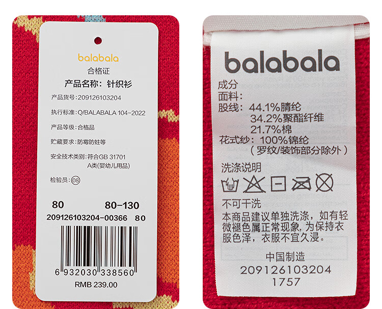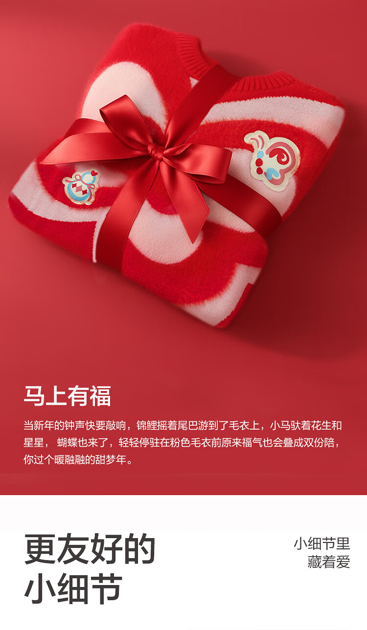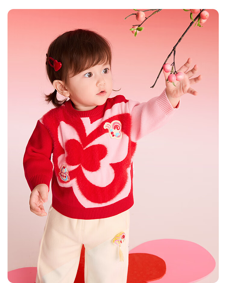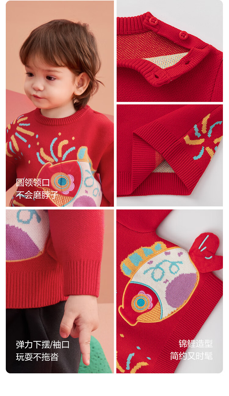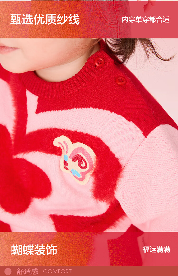 Balabala children's clothing children's sweaters boys and girls sweaters baby baby 2025 new winter round neck pullover sweater New Year's clothing