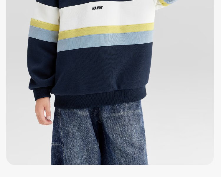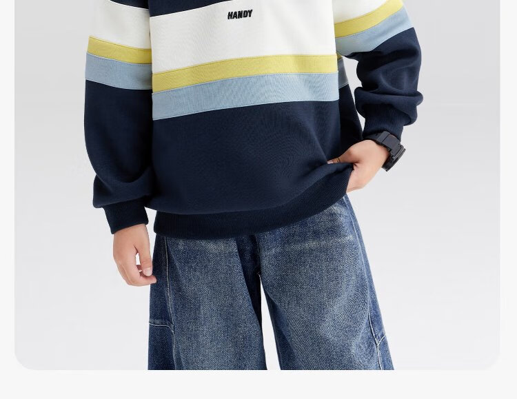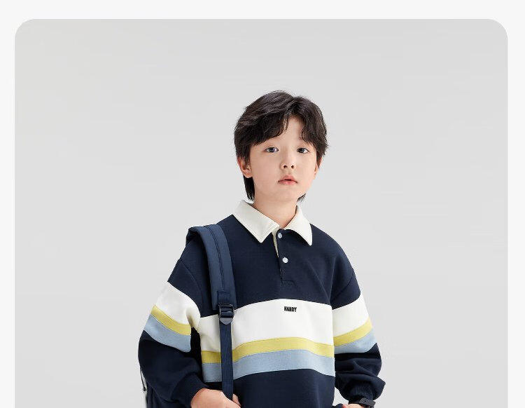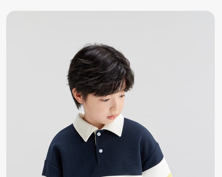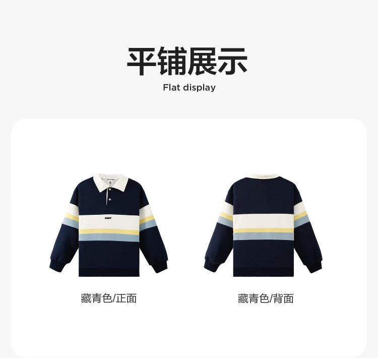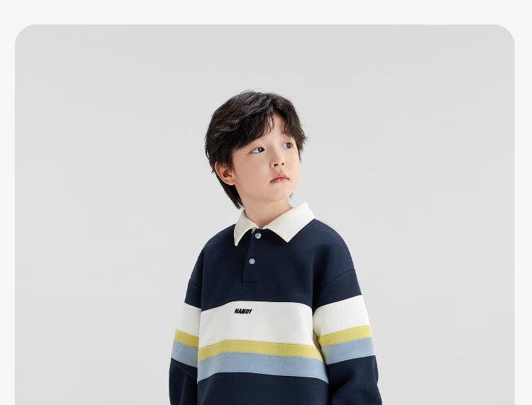 Zuoxi Children's Clothing Boys Polo Shirt Sweater 2025 New Trendy Children's Striped Velvet Pullover Trendy Navy 160