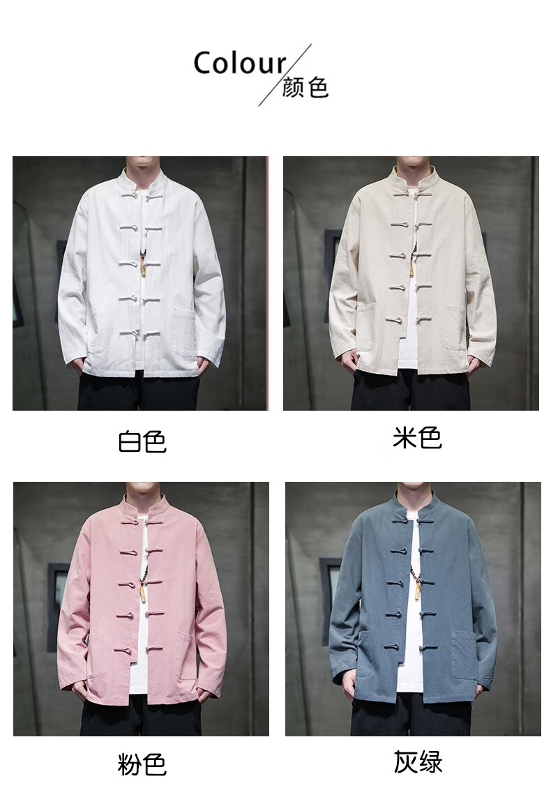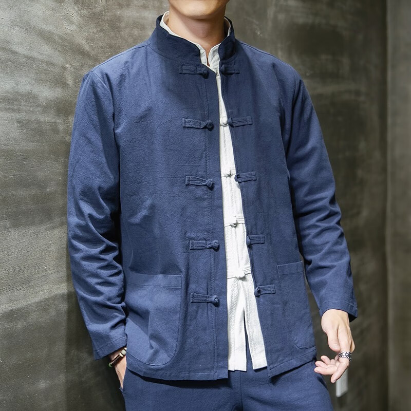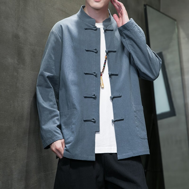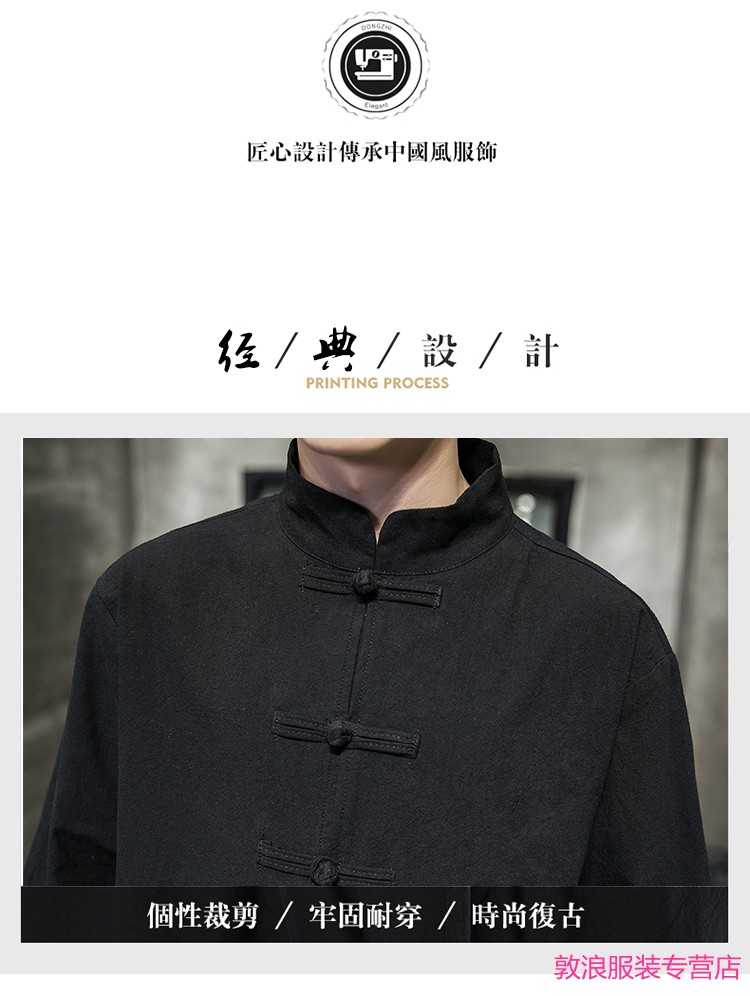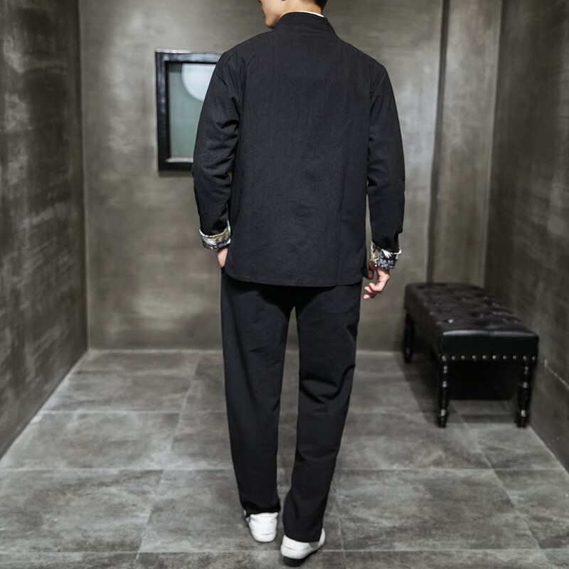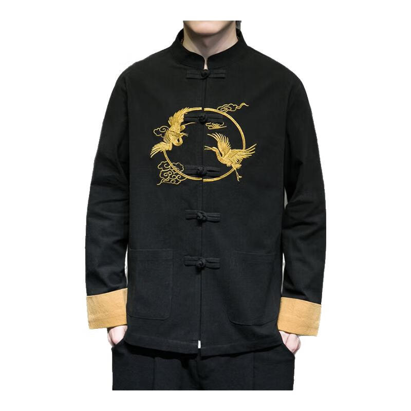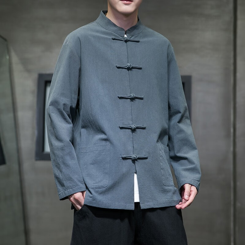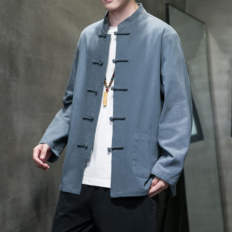 Huatianmu large size Chinese style shirt men's stand collar long sleeve retro style tunic tunic cotton and linen plate button spring and autumn jacket burgundy 3XL, recommended 150-170Jin Jin equals 0.5 kg