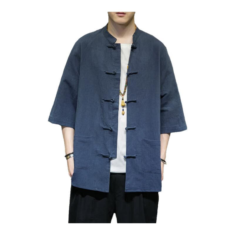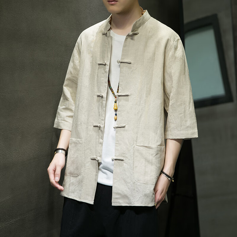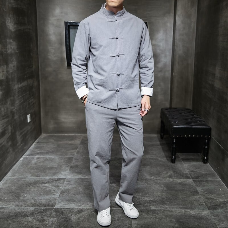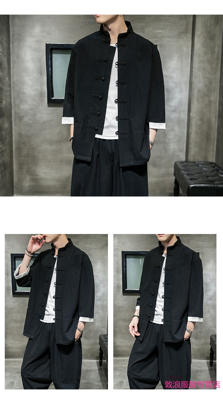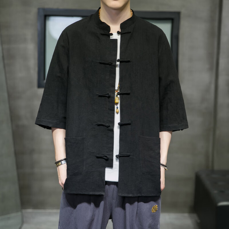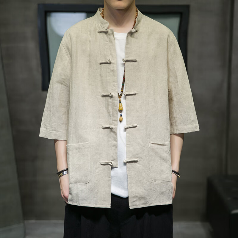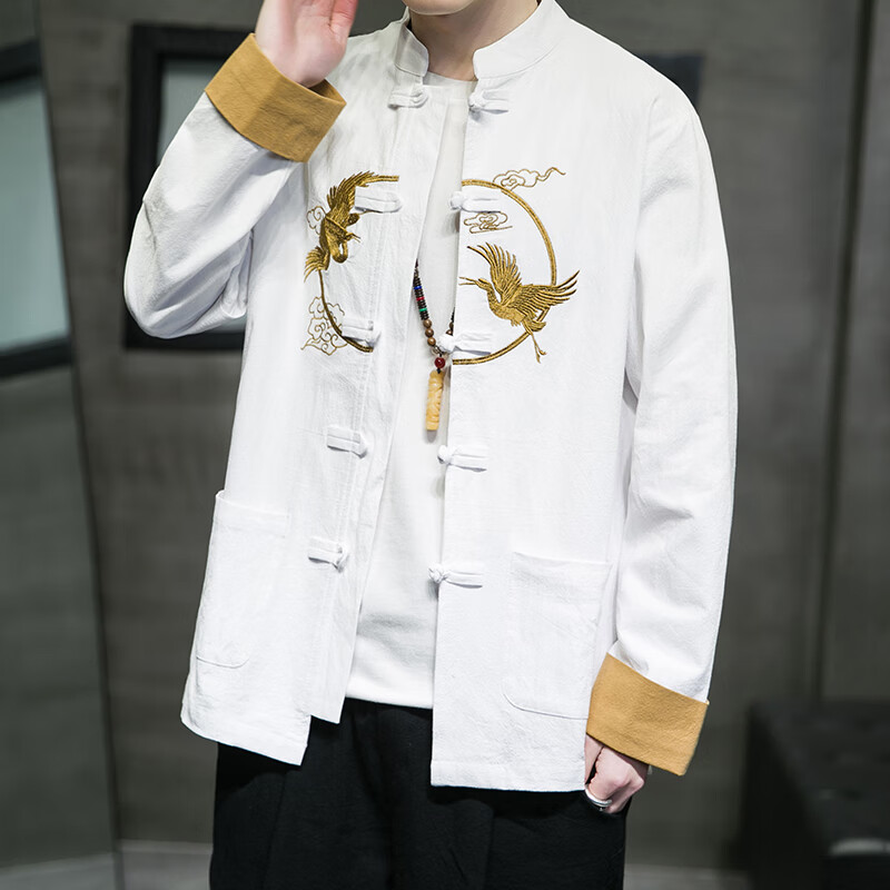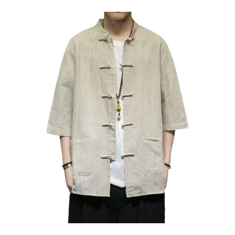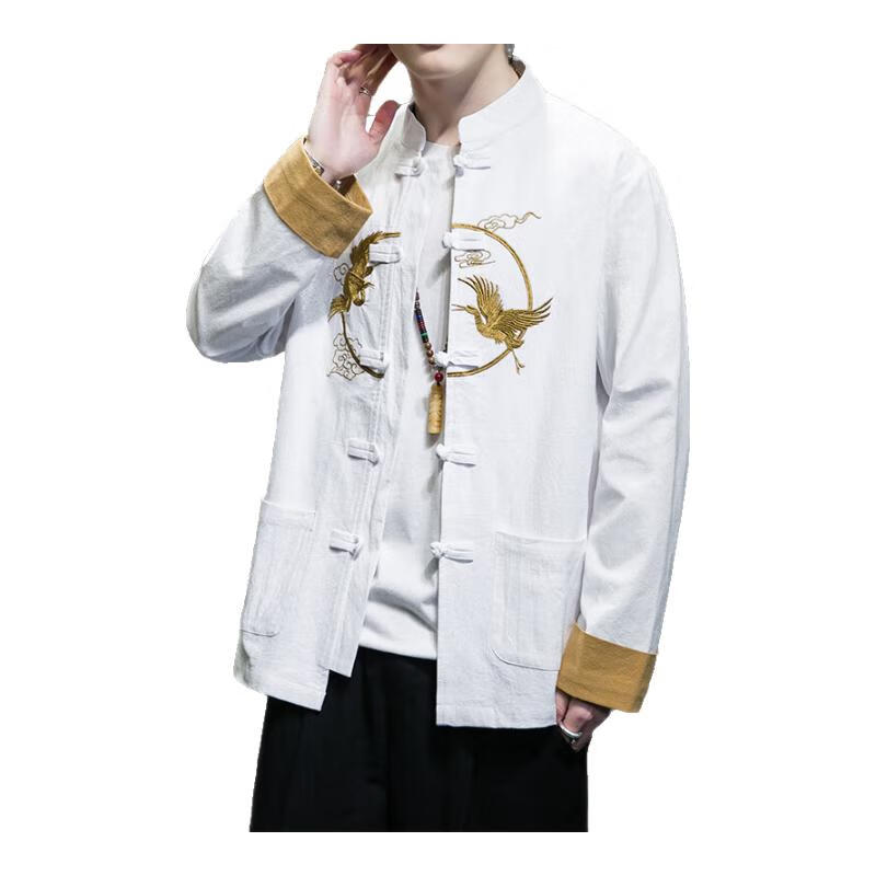 Huatianmu large size Chinese style shirt men's stand collar long sleeve retro style tunic tunic cotton and linen plate button spring and autumn jacket burgundy 3XL, recommended 150-170Jin Jin equals 0.5 kg