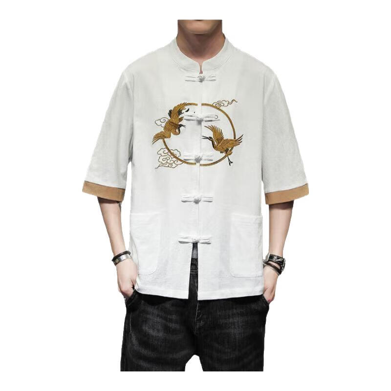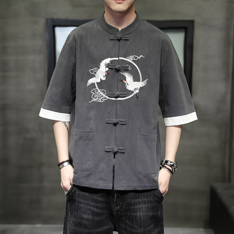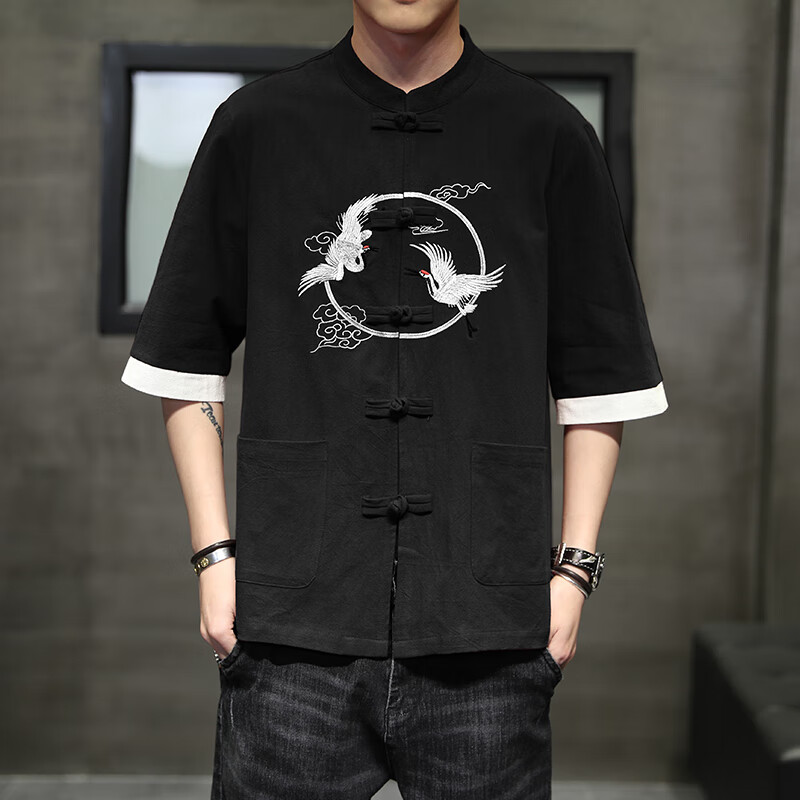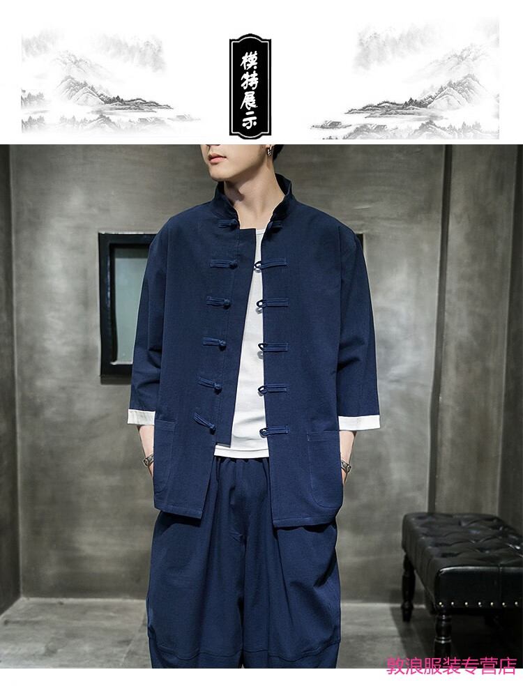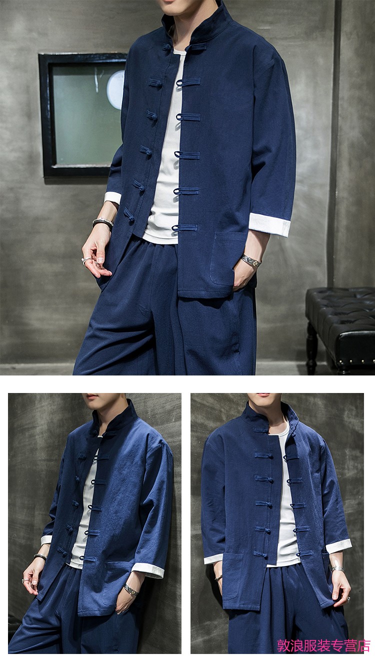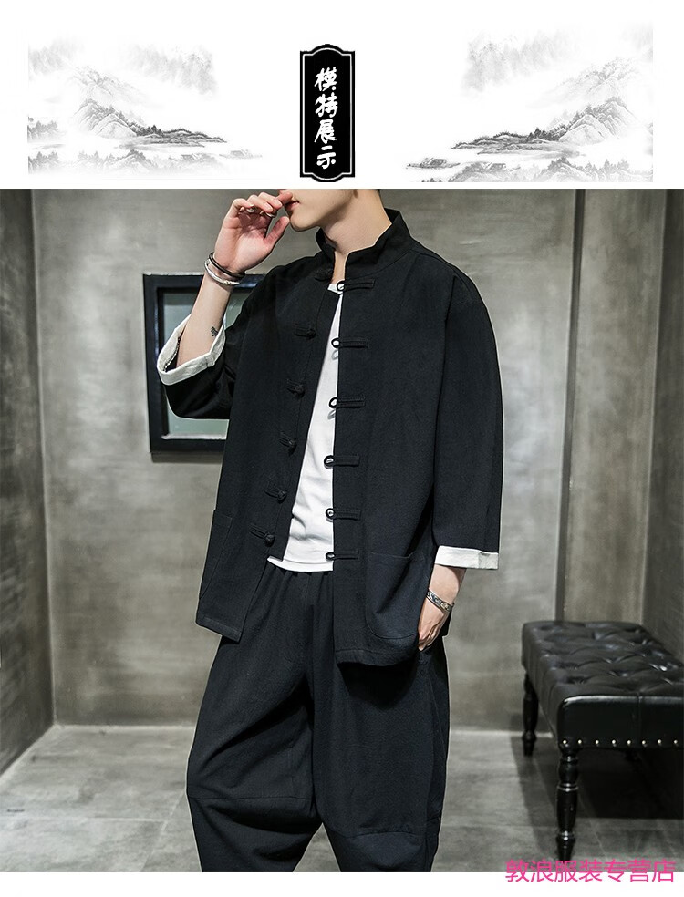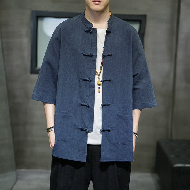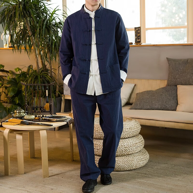 Huatianmu large size Chinese style shirt men's stand collar long sleeve retro style tunic tunic cotton and linen plate button spring and autumn jacket burgundy 3XL, recommended 150-170Jin Jin equals 0.5 kg