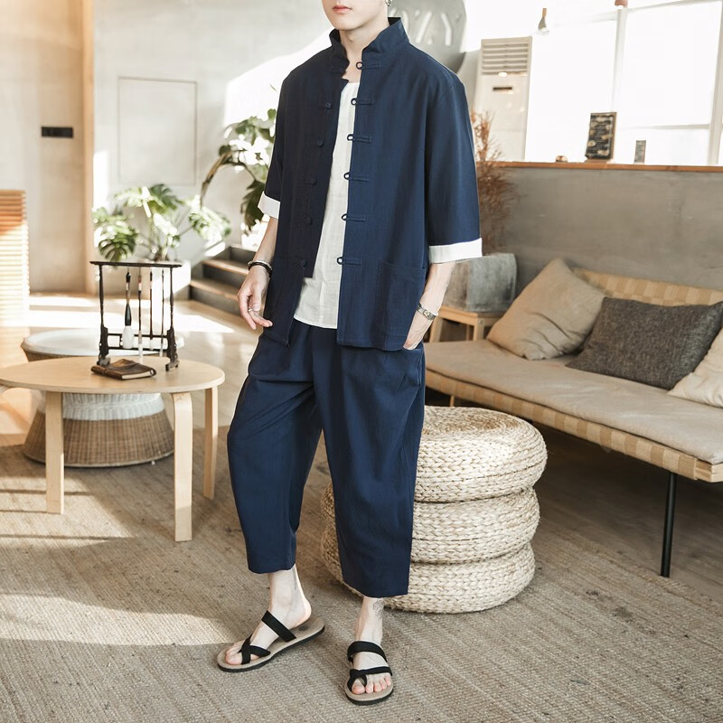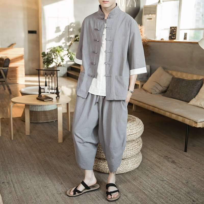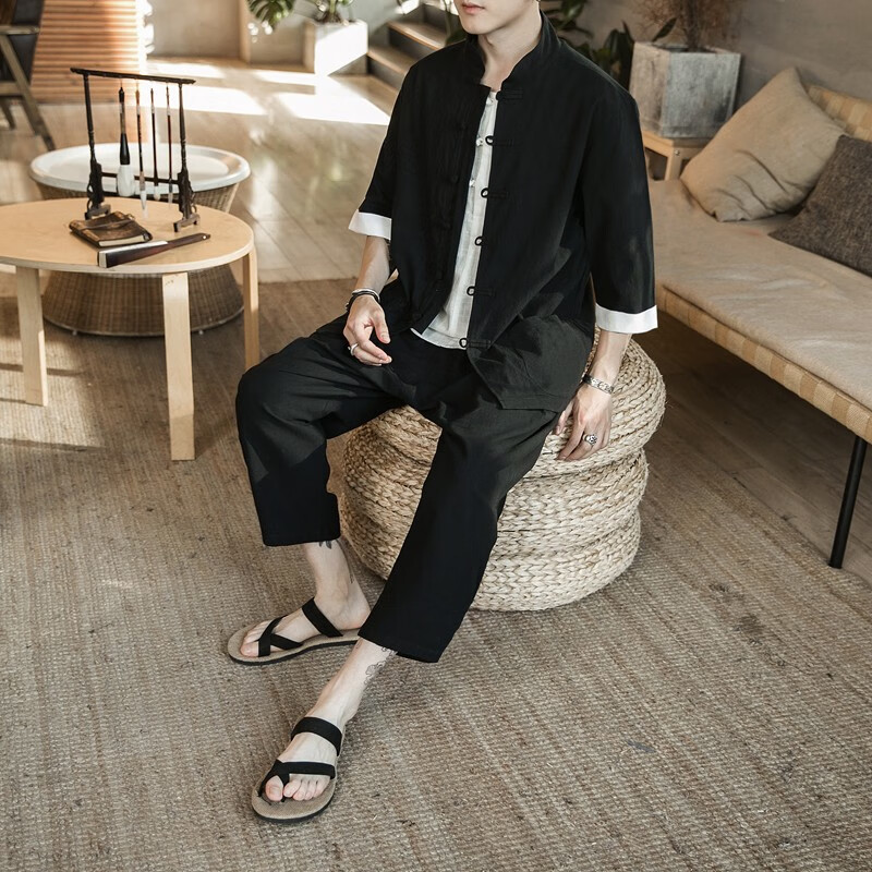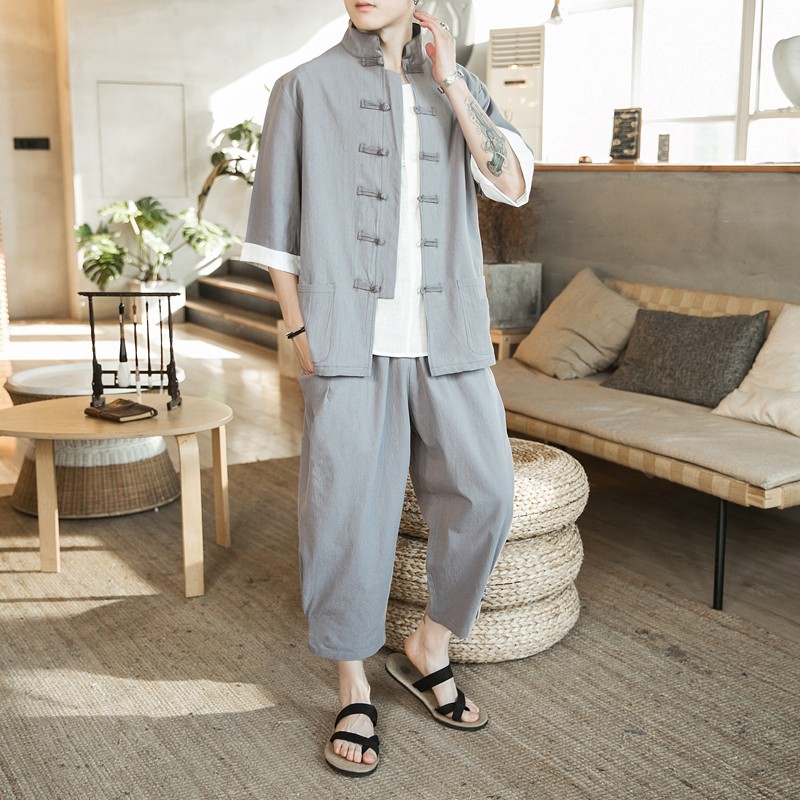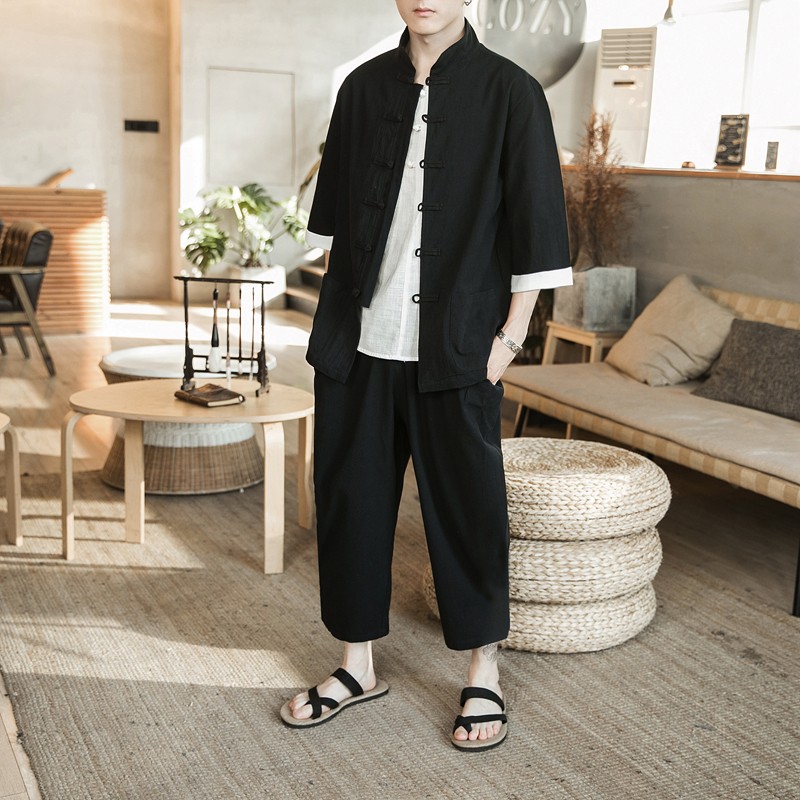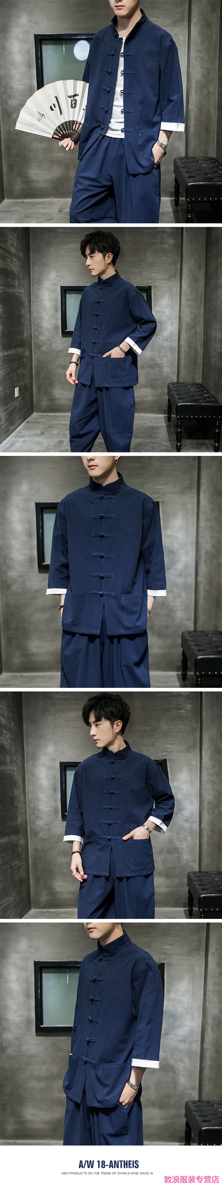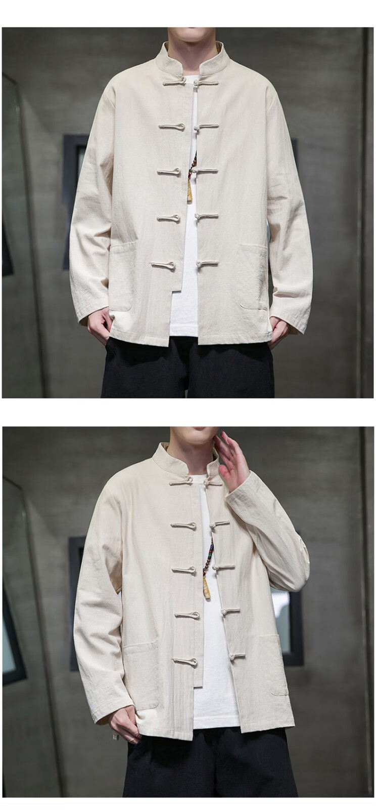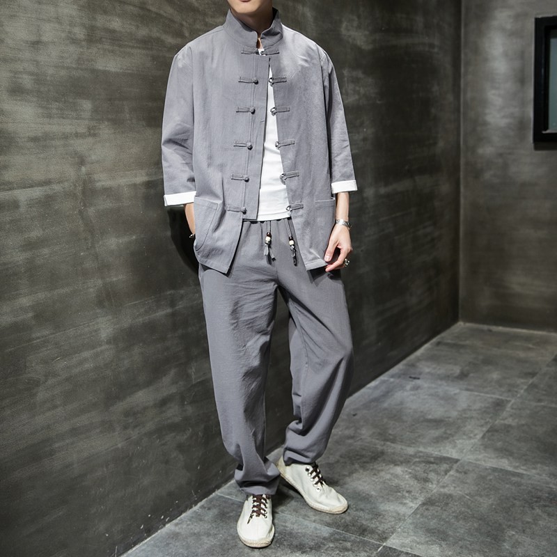 Huatianmu large size Chinese style shirt men's stand collar long sleeve retro style tunic tunic cotton and linen plate button spring and autumn jacket burgundy 3XL, recommended 150-170Jin Jin equals 0.5 kg