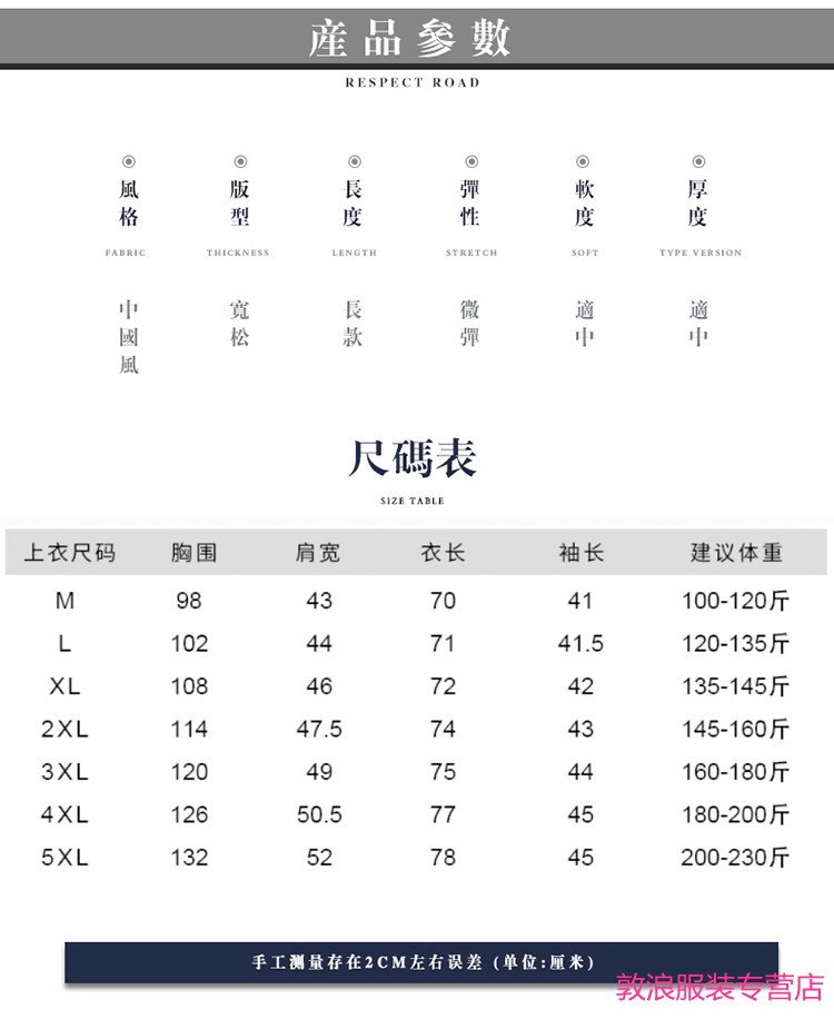 China (cm) 165 / 88-90 170 / 96-98 175 / 108-110 180 / 118-122 185 / 126-130