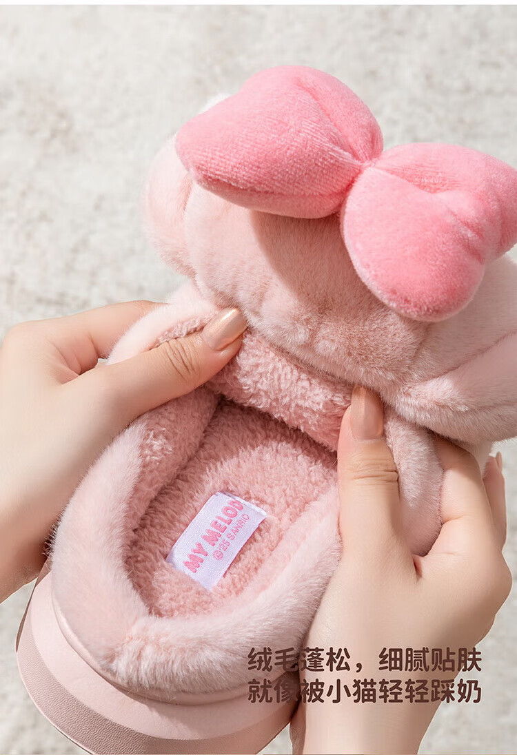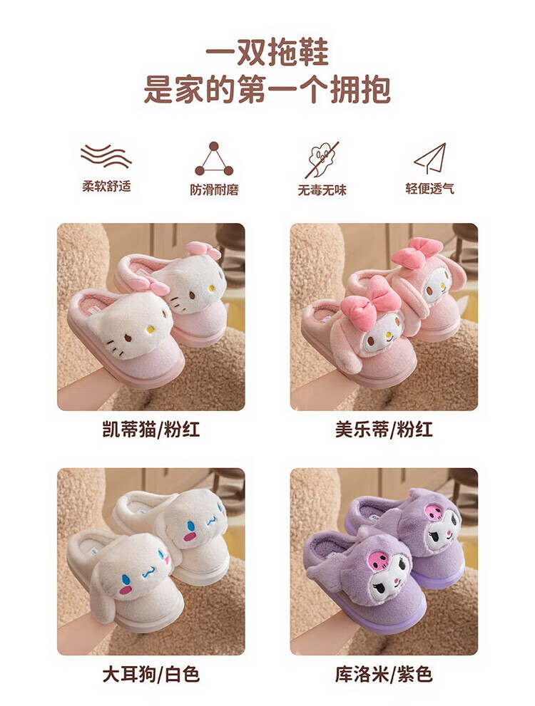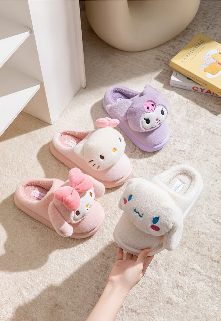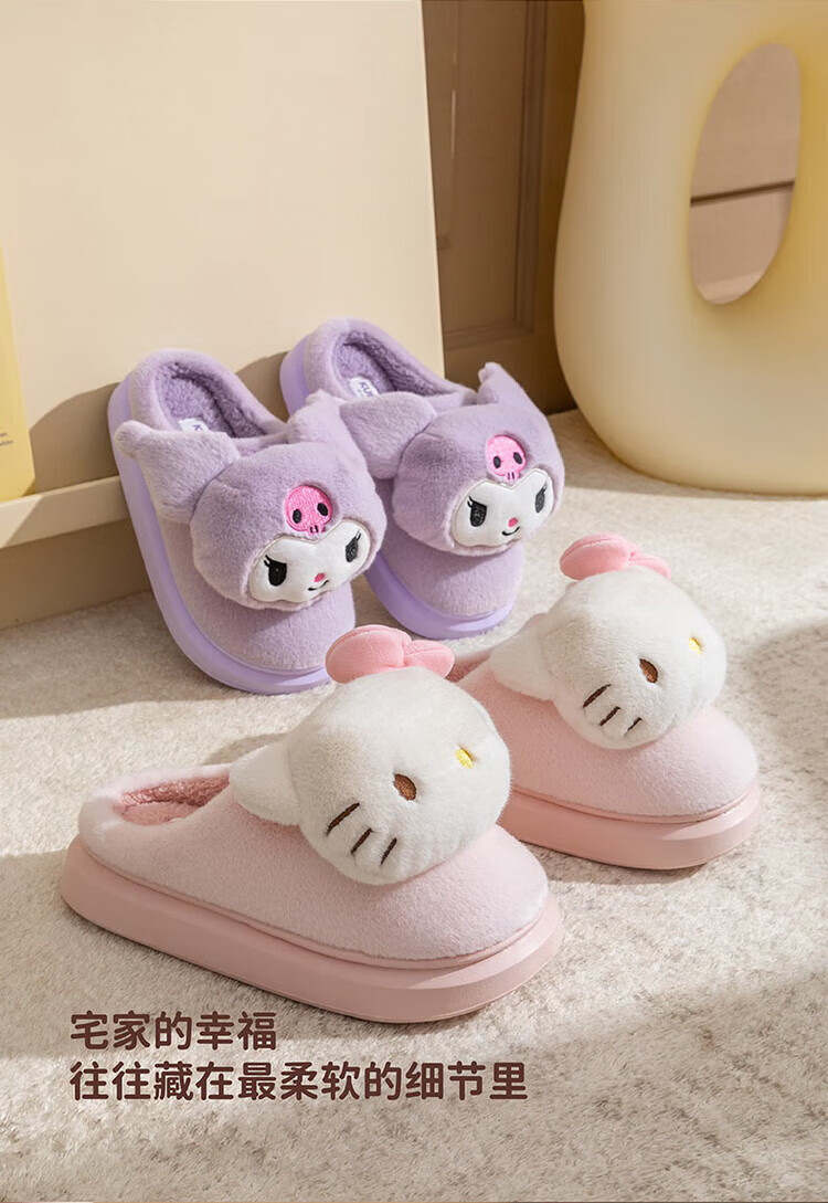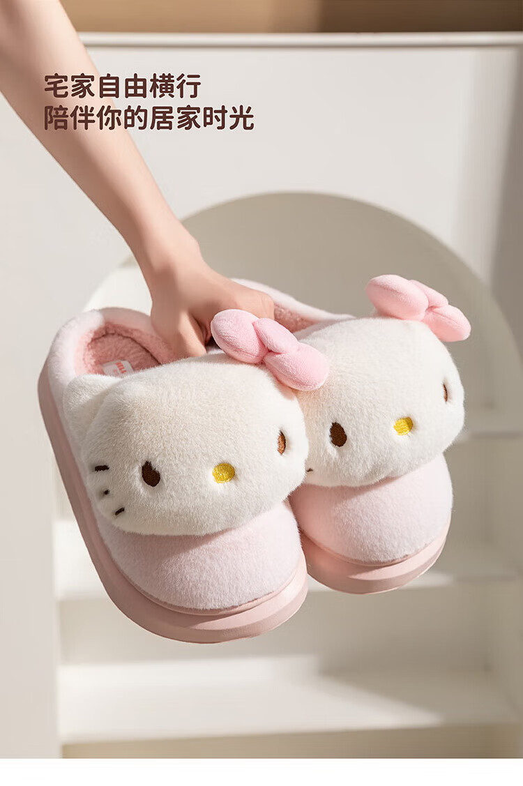 Hello Kitty Girls Cotton Slippers Winter Plush Warm Children's Indoor Non-Slip Slippers Parent-Child Home Shoes 25020FH 36