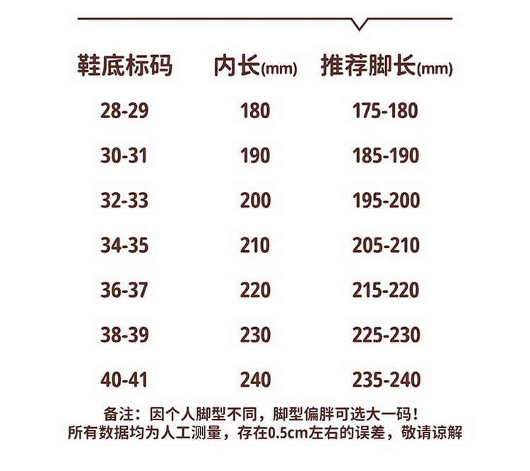 Length (cm) 22.8 23.1 23.5 24.1 24.5 25.1 25.7 26 26.7 27.3 27.9 28.6 29.2