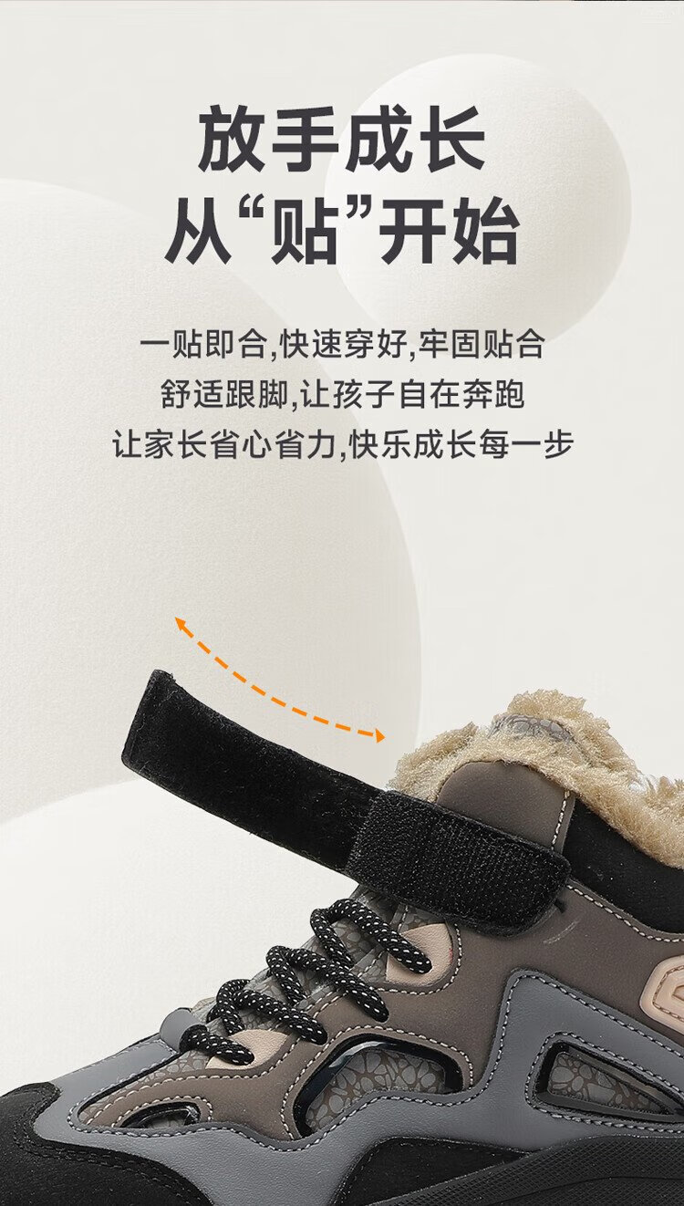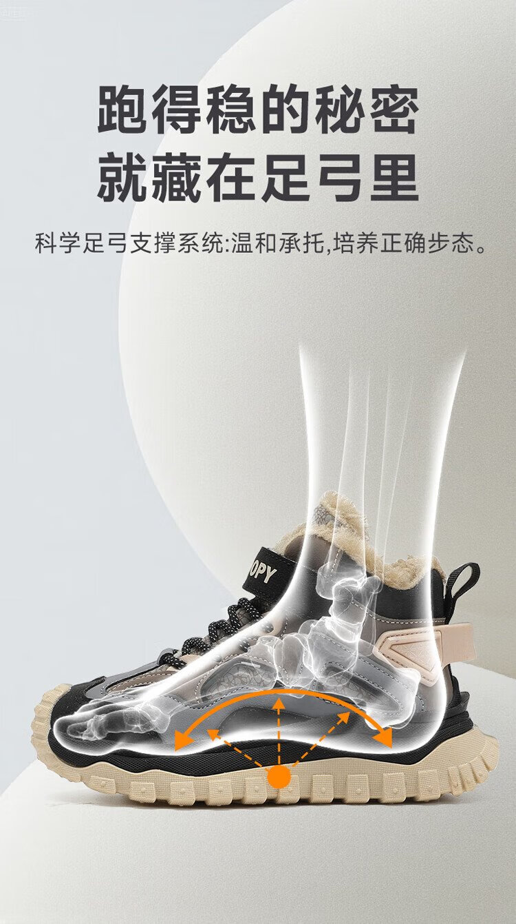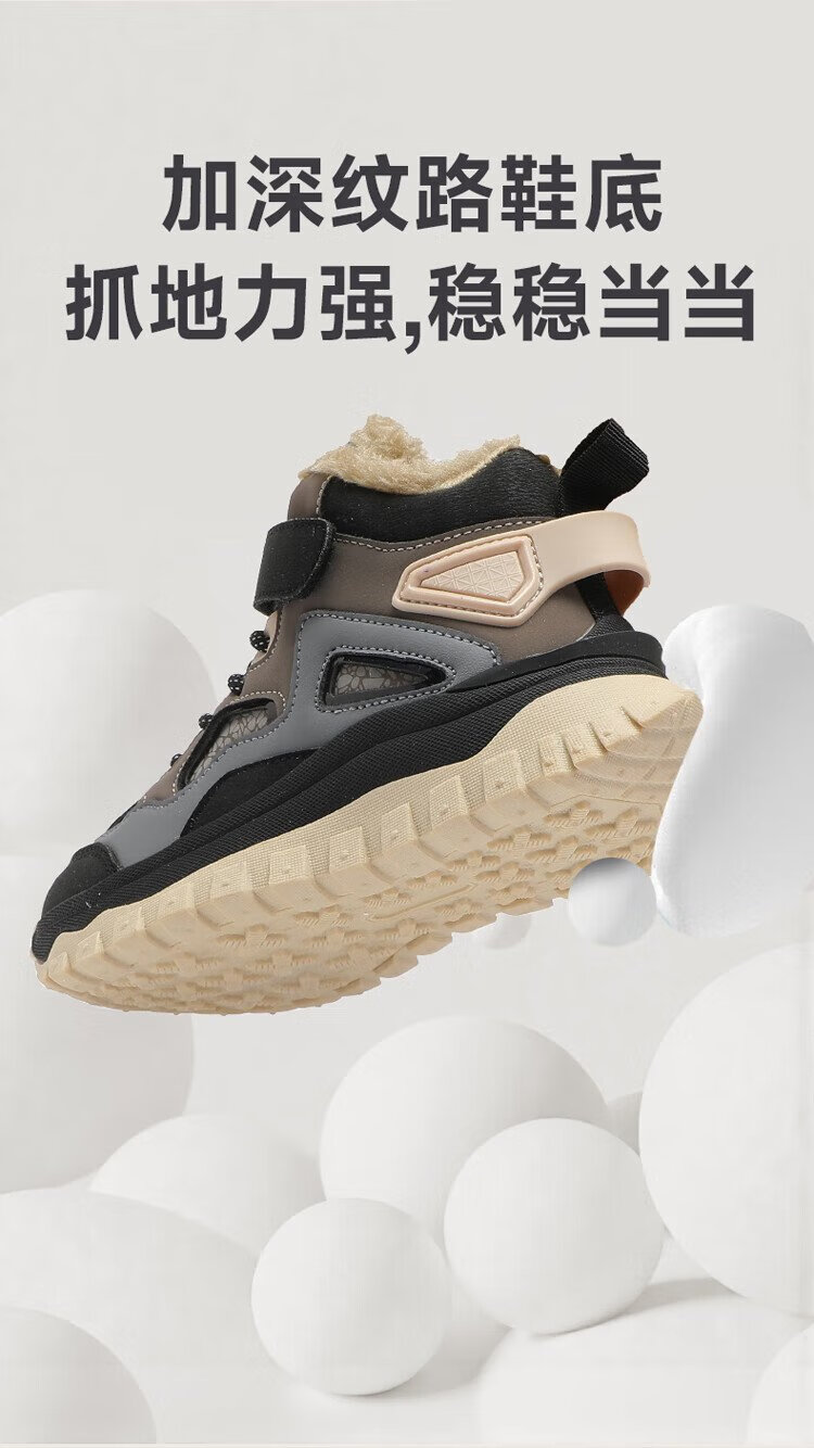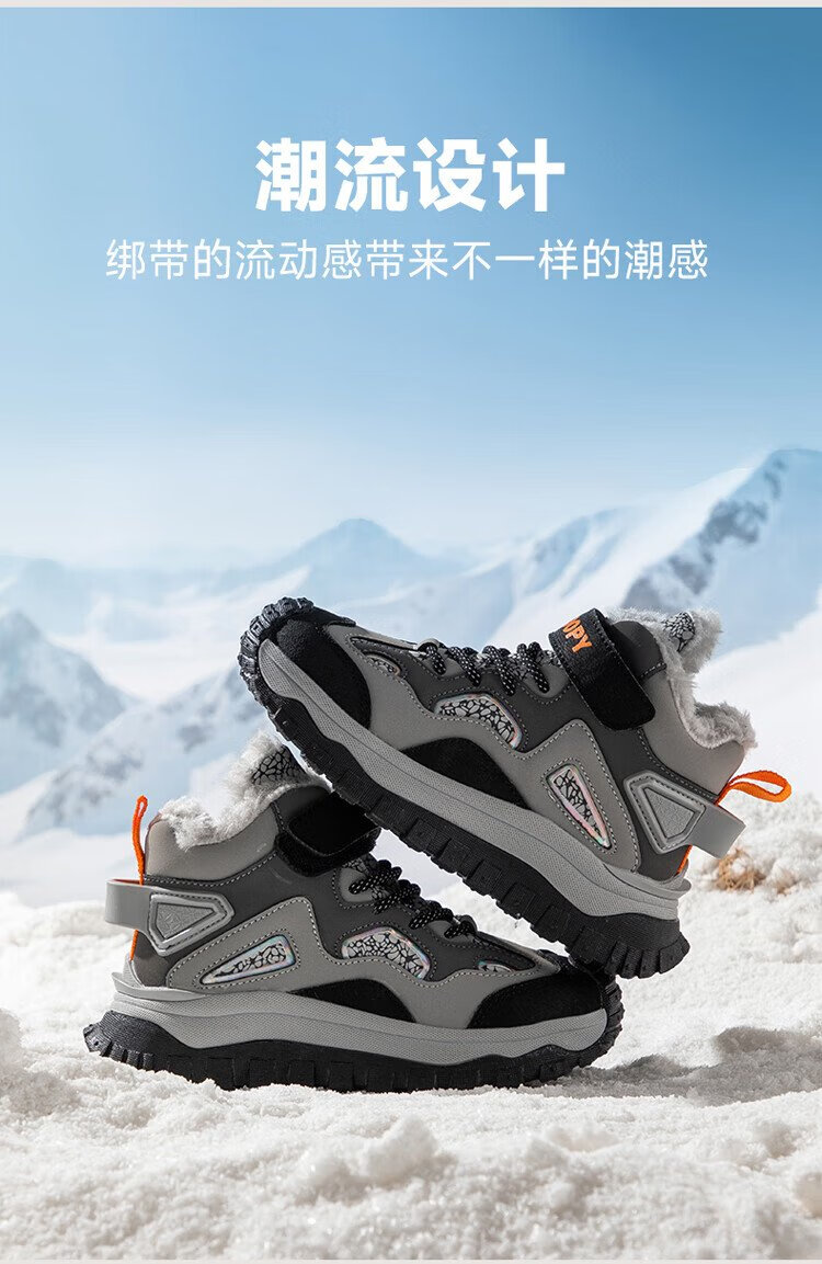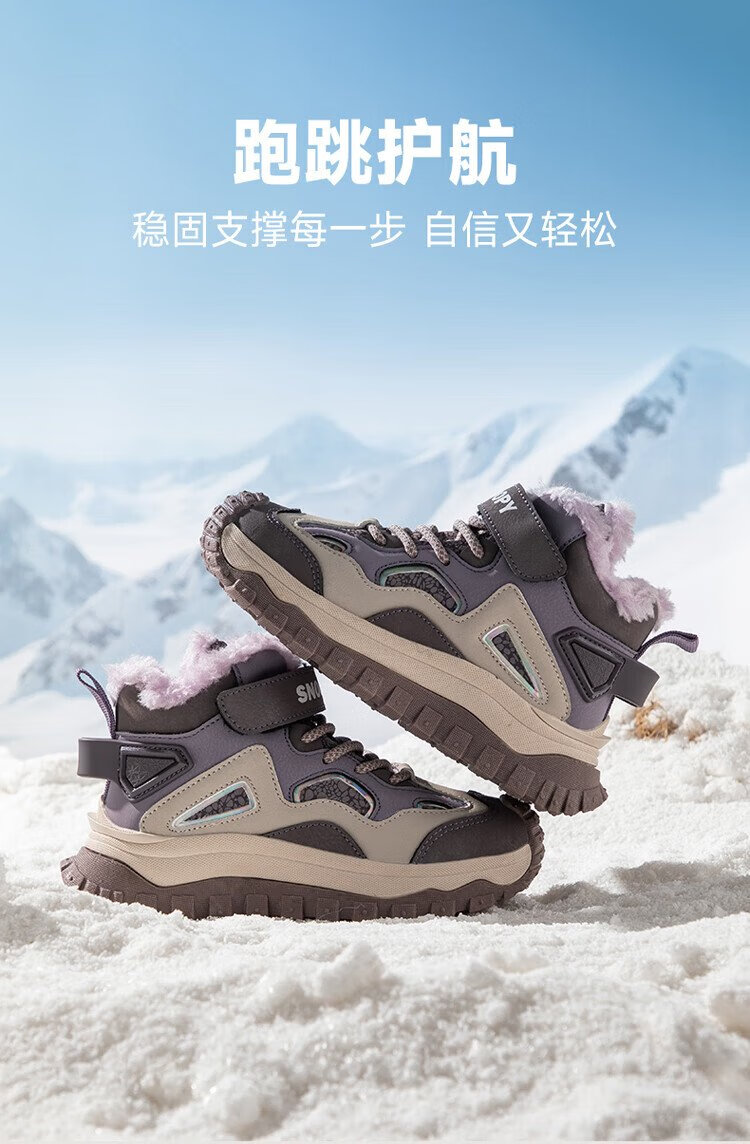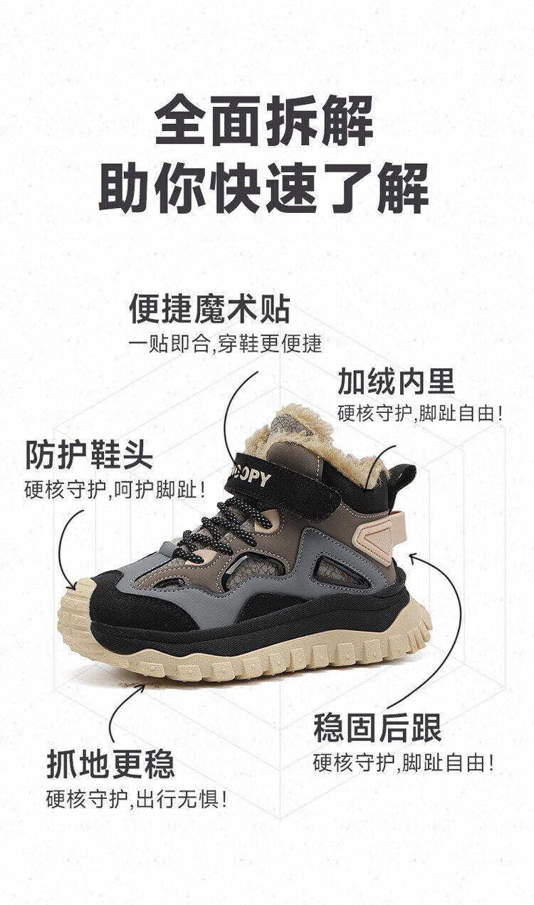 SNOOPY Snoopy children's shoes children's cotton shoes winter plus velvet warm sports shoes boys and girls outdoor shoes 3908 dark gray rice 35