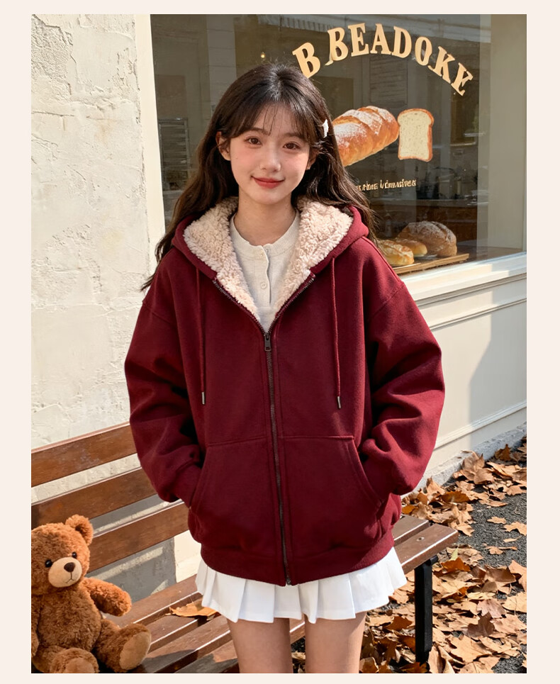 Baleno velvet jacket for women autumn and winter thickened sweatshirt for women 2025 new warm lamb wool cardigan thick section