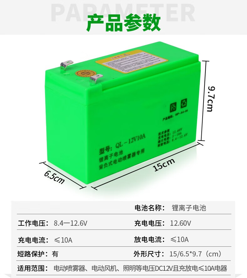 Electric sprayer battery lithium battery backpack sprayer accessories special agricultural large-capacity battery charging lithium battery 12V10A