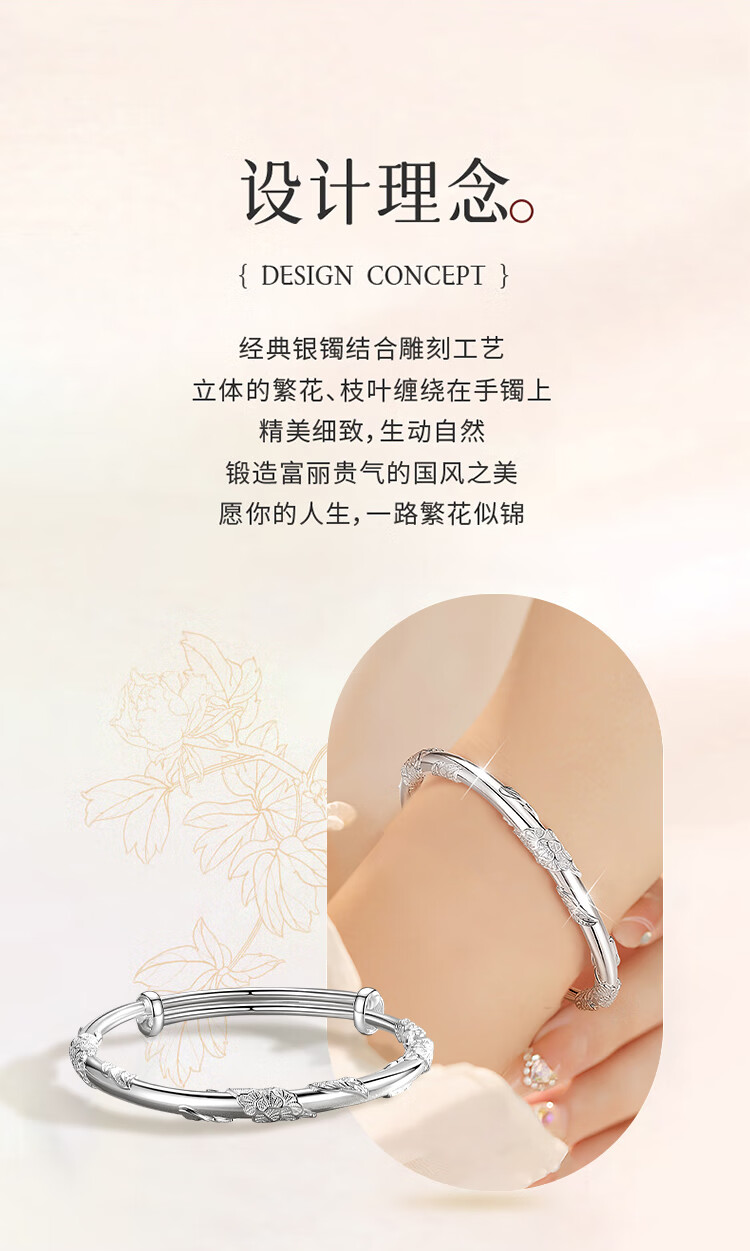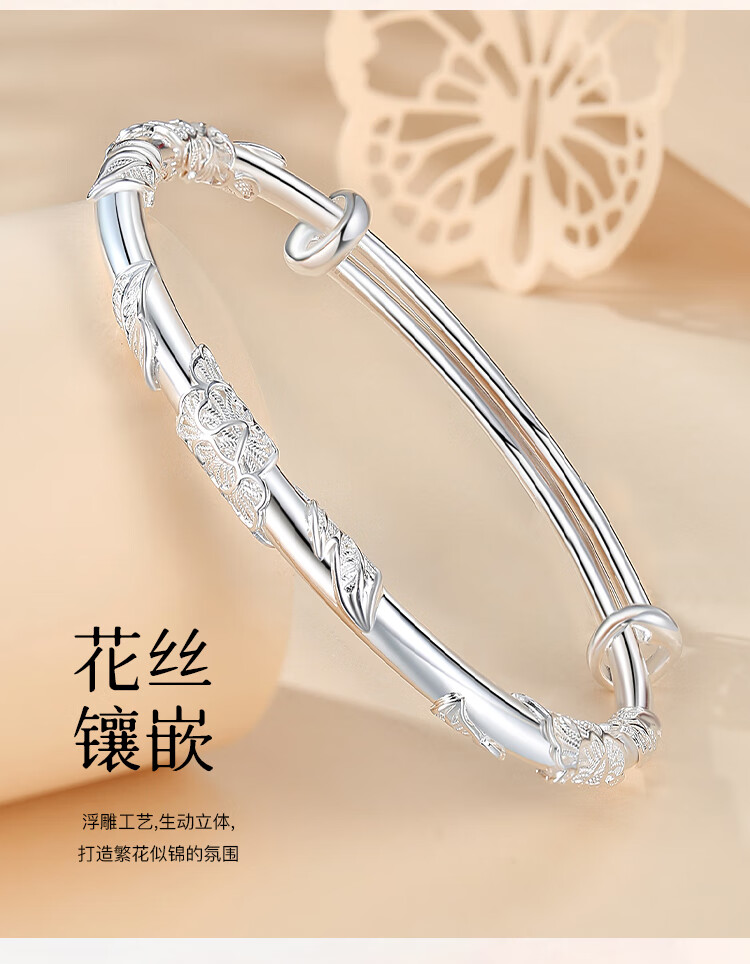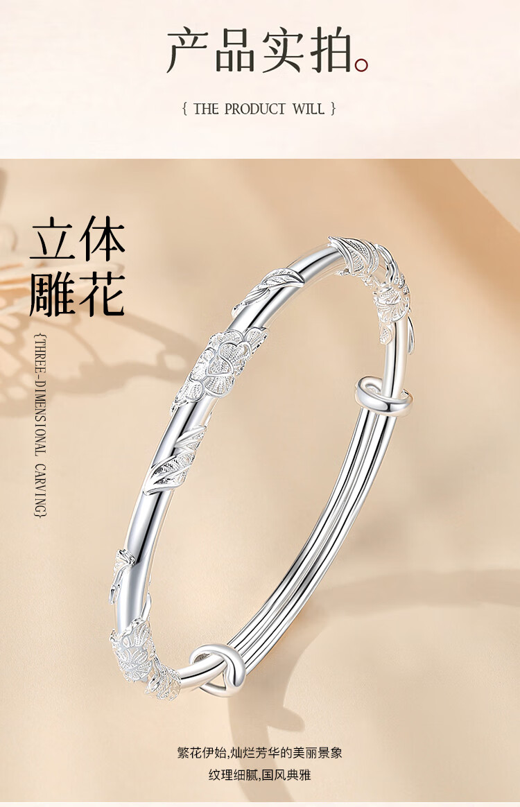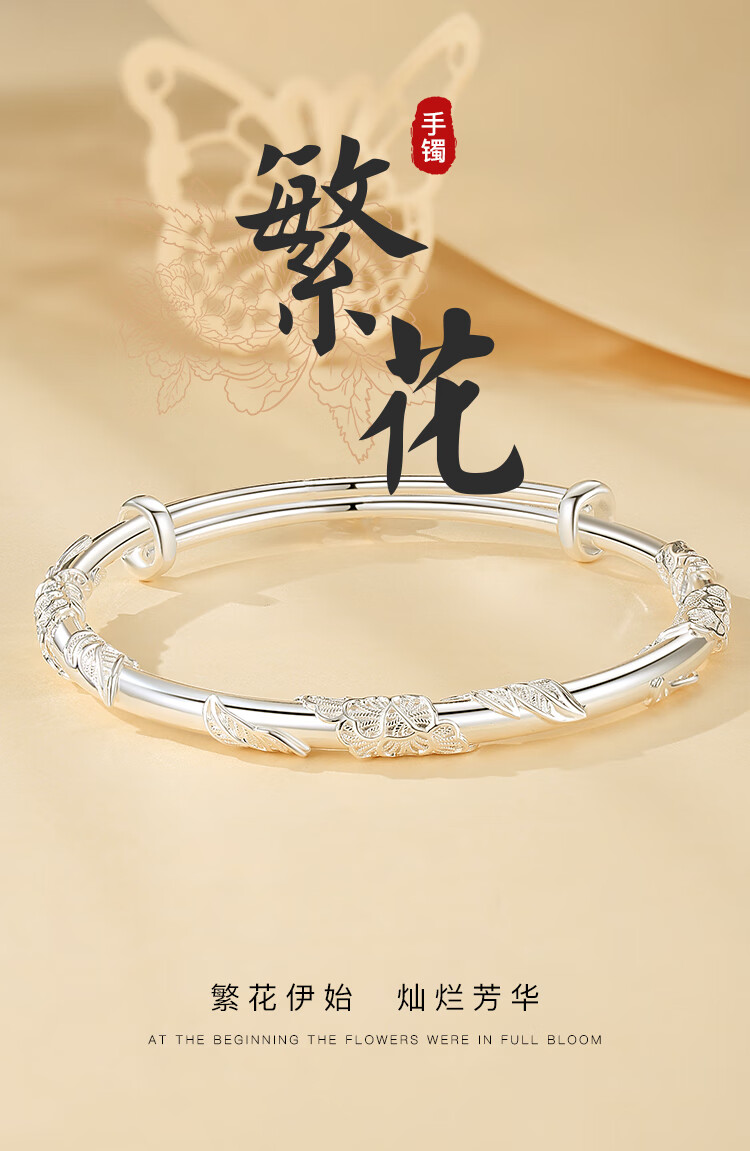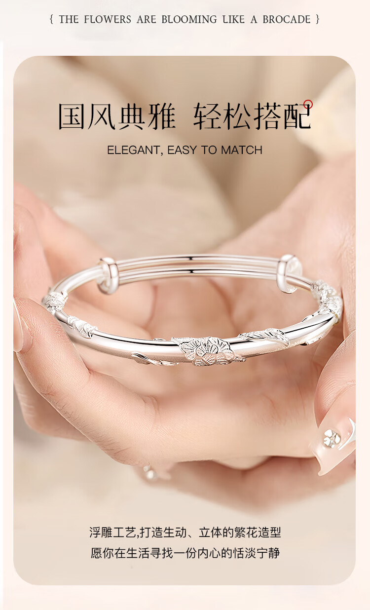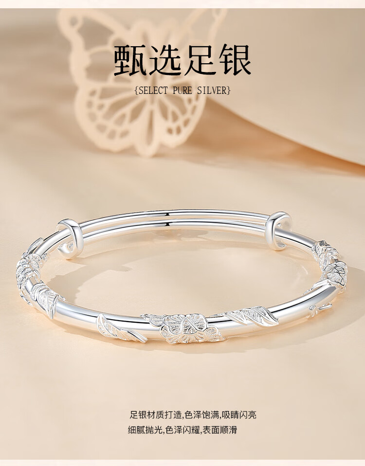 Chinese jewelry (Sino gem) silver bracelet for women, pure silver bracelet, solid silver jewelry, birthday and New Year gift for girlfriend, wife, mother