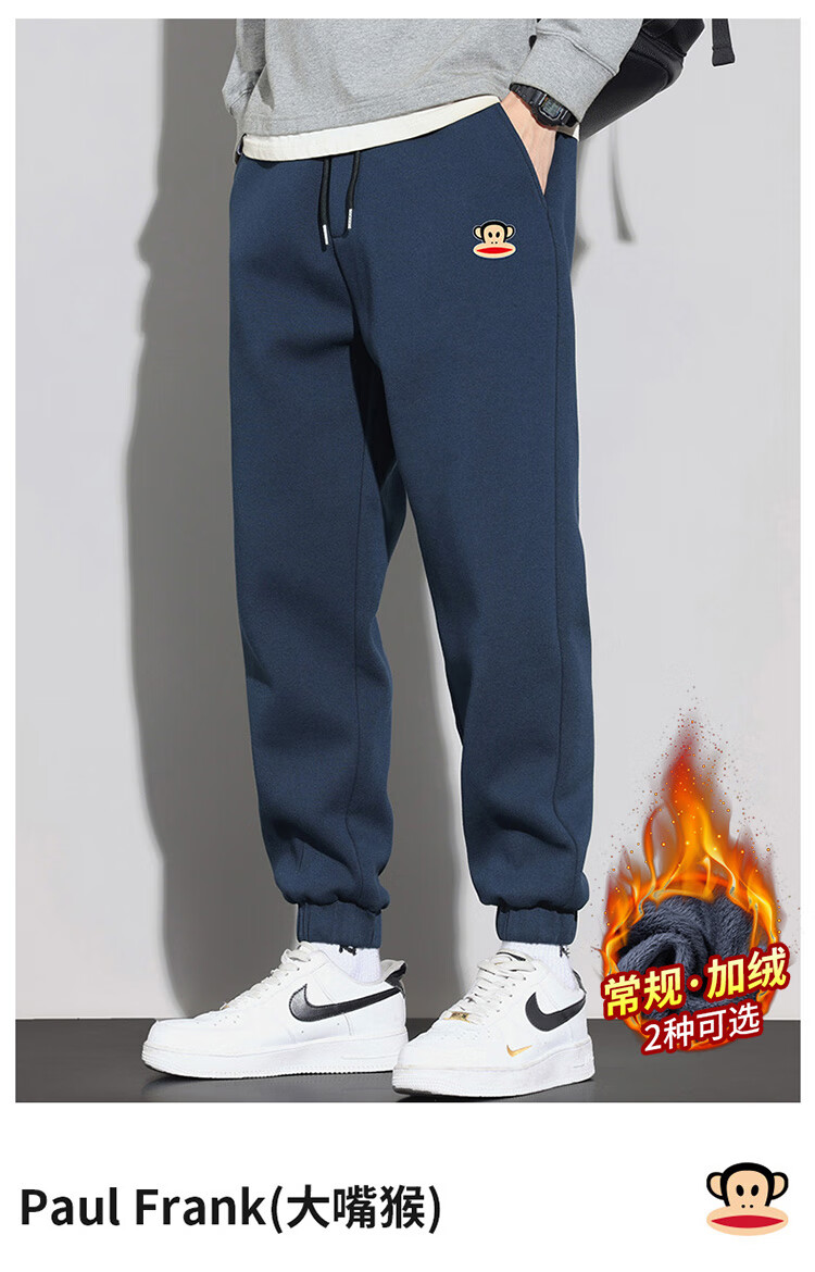 Big Mouth Monkey (paul frank) pants men's autumn and winter casual pants men's small-legged sweatpants men's pants trendy brand sweatpants men's navy plus velvet XL