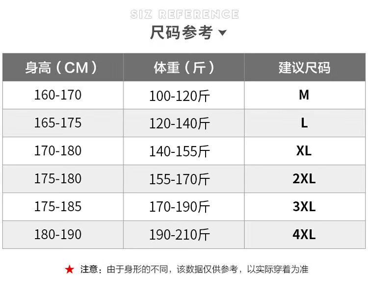 China (cm) 165 / 88-90 170 / 96-98 175 / 108-110 180 / 118-122 185 / 126-130
