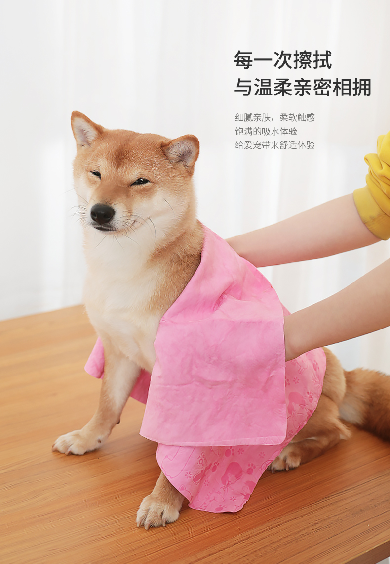 KimPets dog bath thickened bath towel pet absorbent towel large quick-drying imitation suede quick-drying dog bath towel cat supplies large with tube (color random)