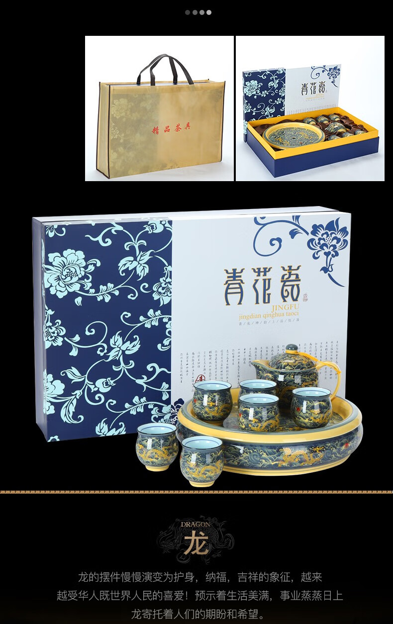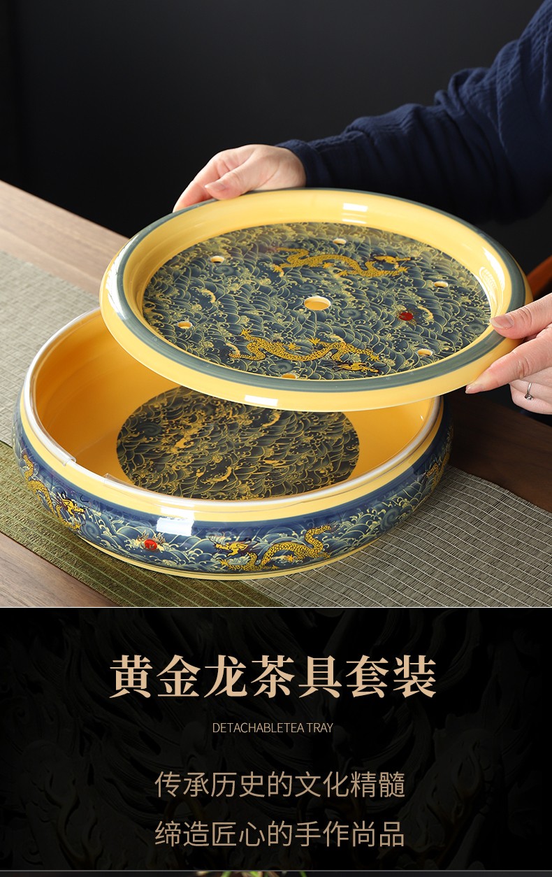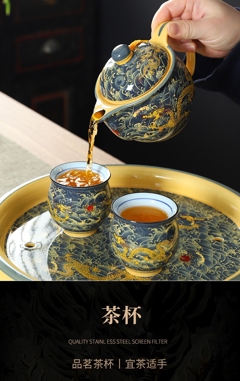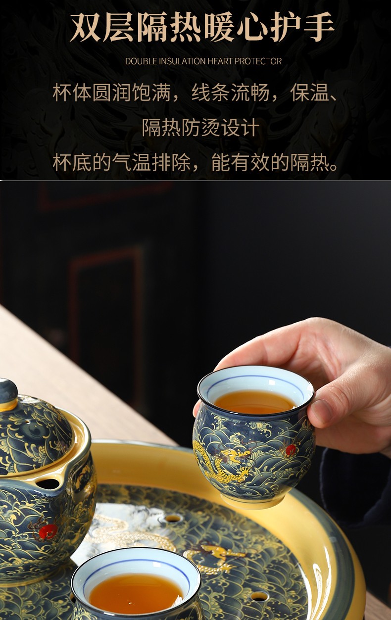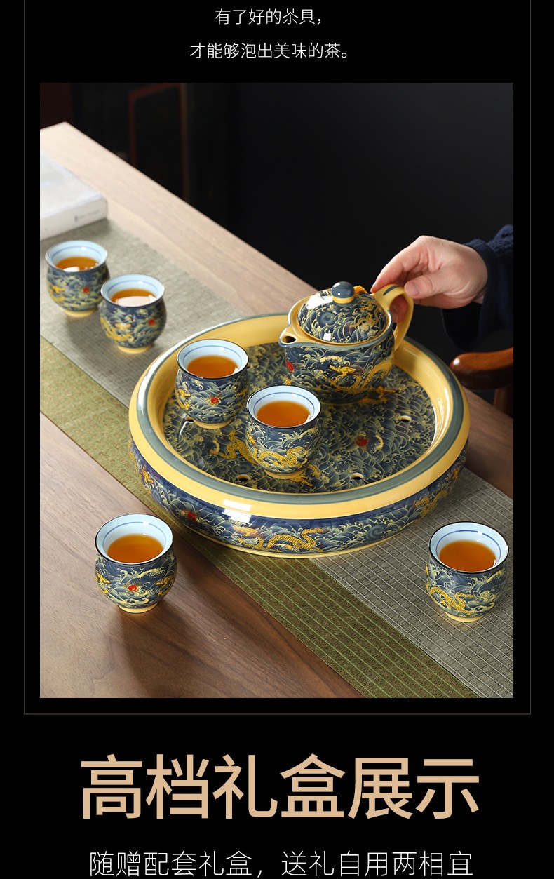 Kanglepin Jingdezhen Ceramic Kung Fu Tea Set Simple Home Anti-scald Teapot Teacup Tea Tray Complete Gift Box Blue Gold Dragon Tea Set