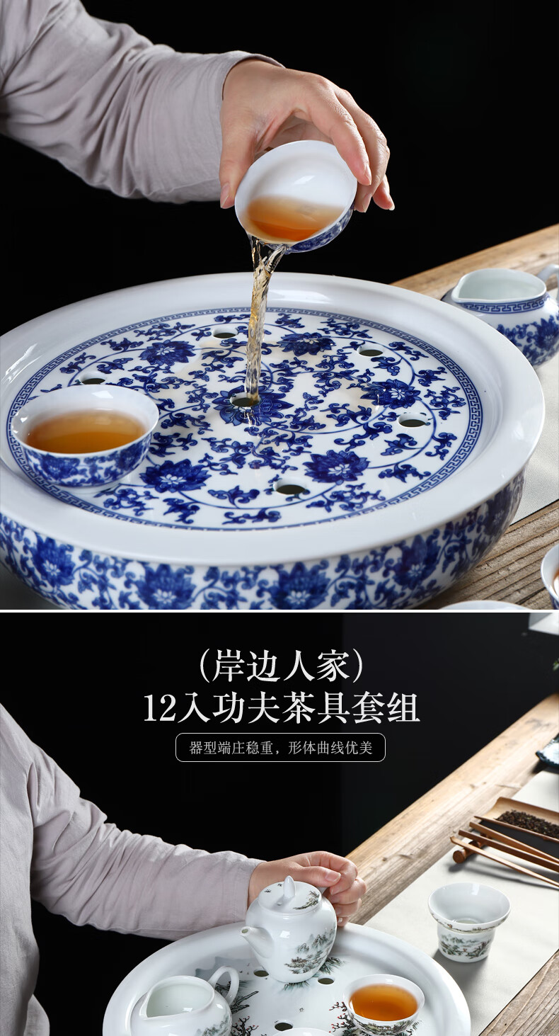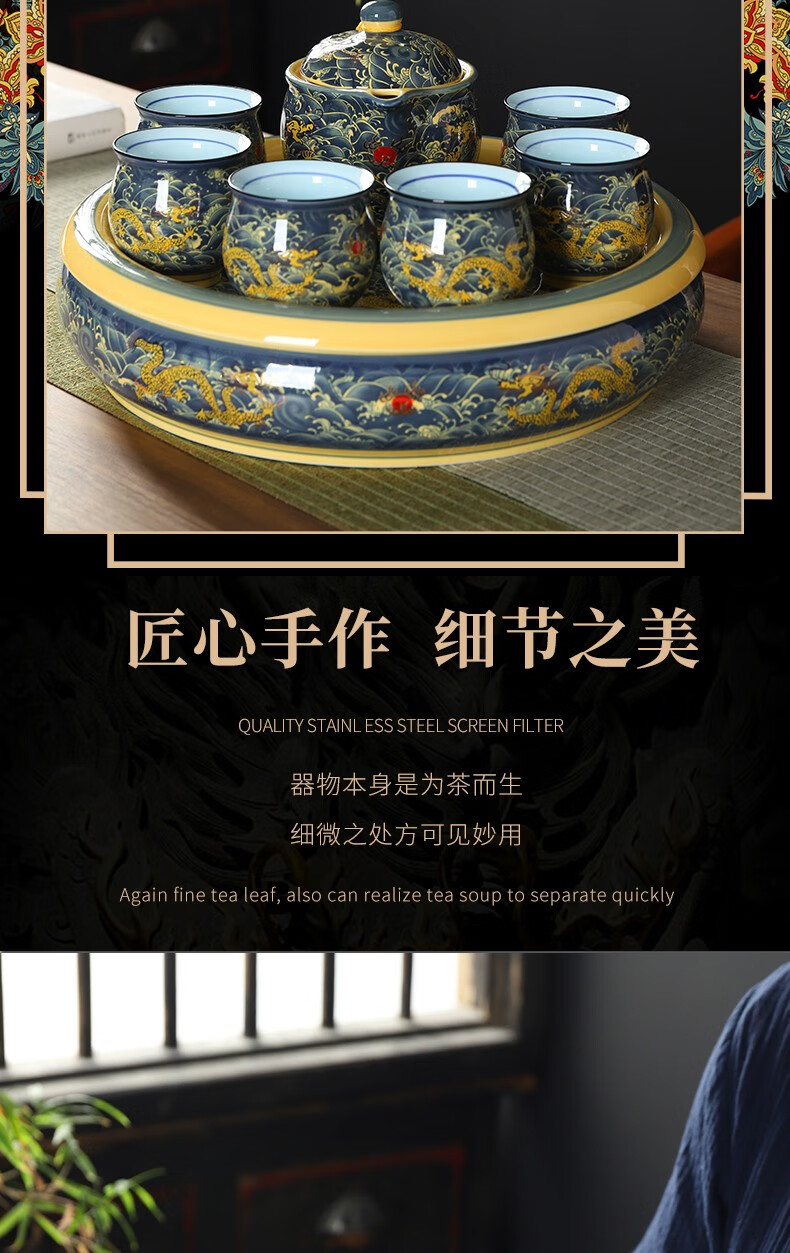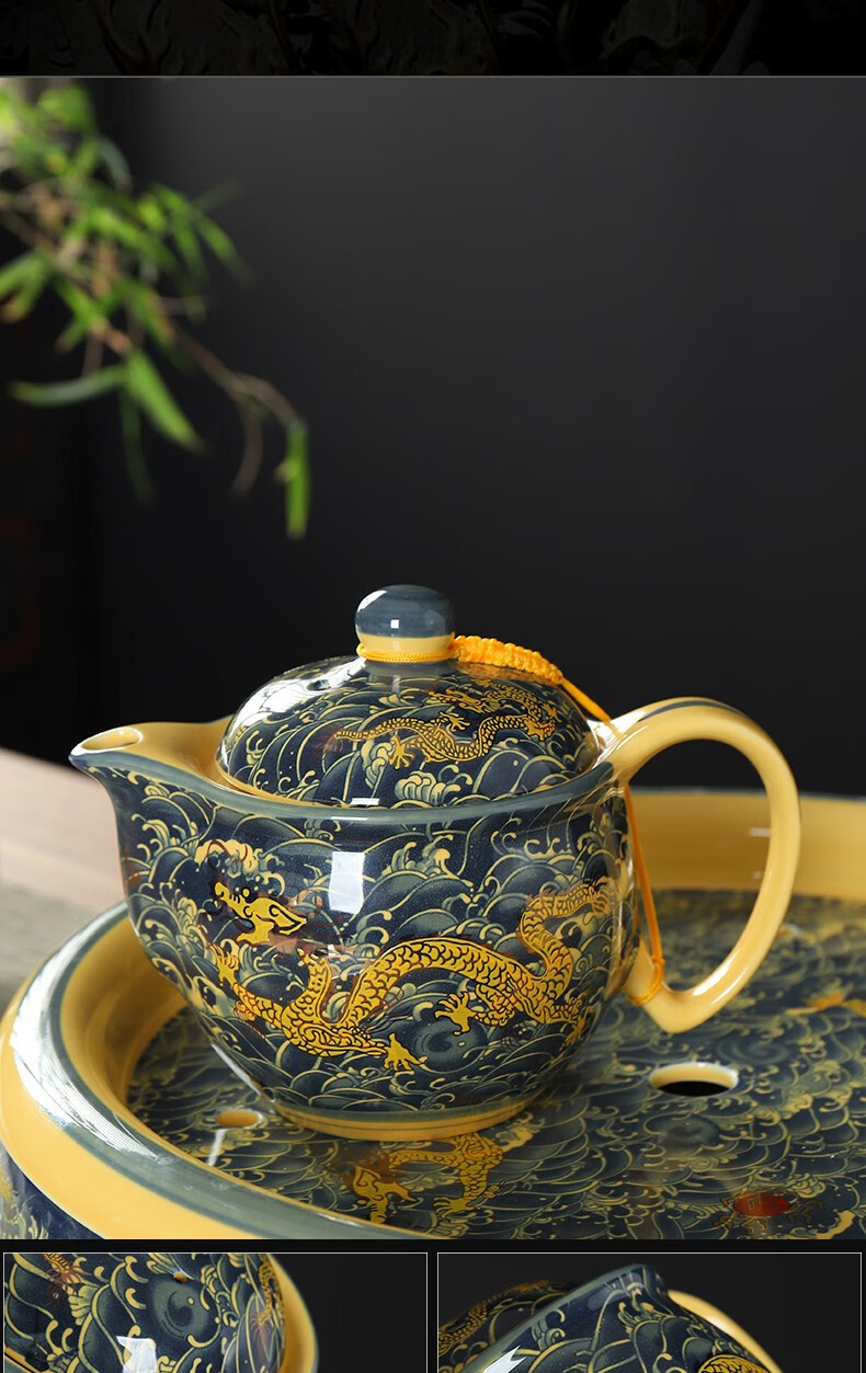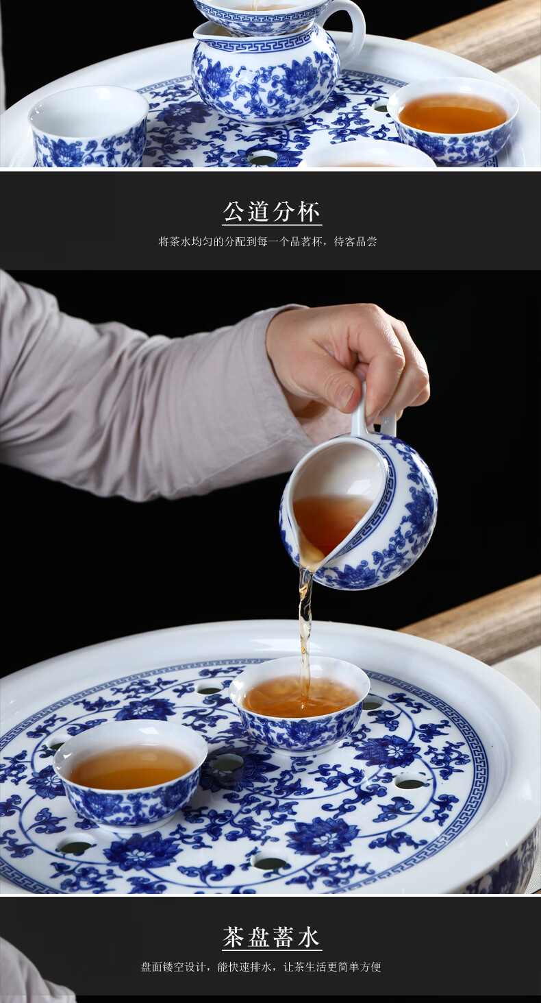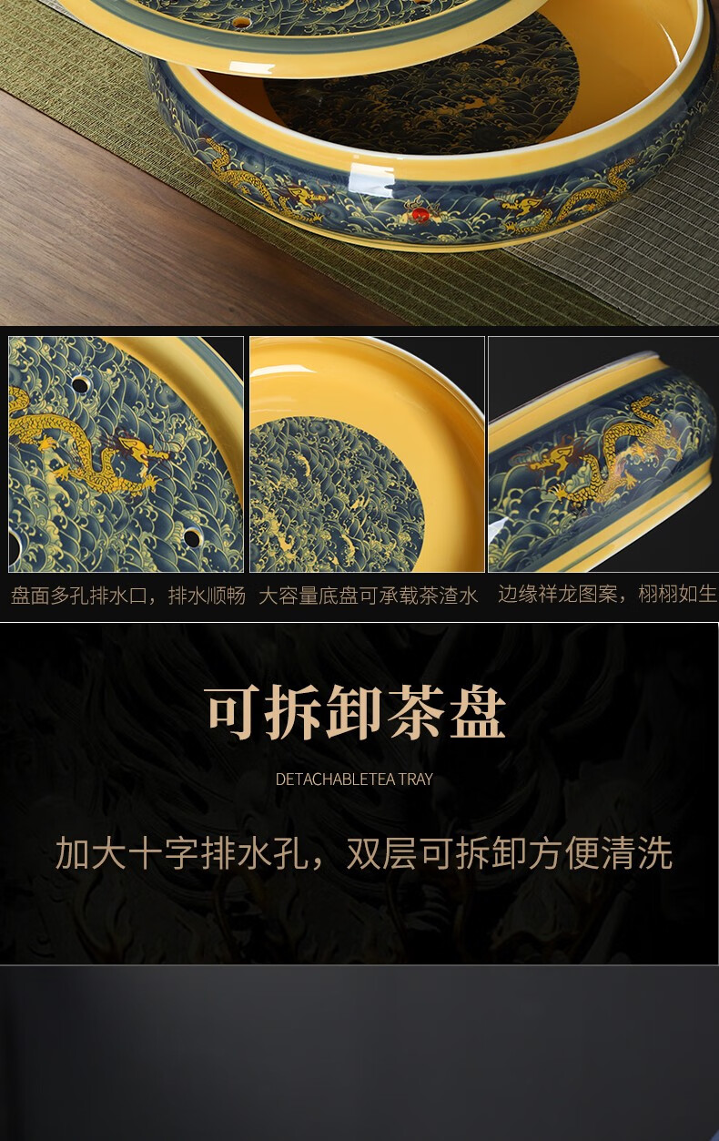 Kanglepin Jingdezhen Ceramic Kung Fu Tea Set Simple Home Anti-scald Teapot Teacup Tea Tray Complete Gift Box Blue Gold Dragon Tea Set